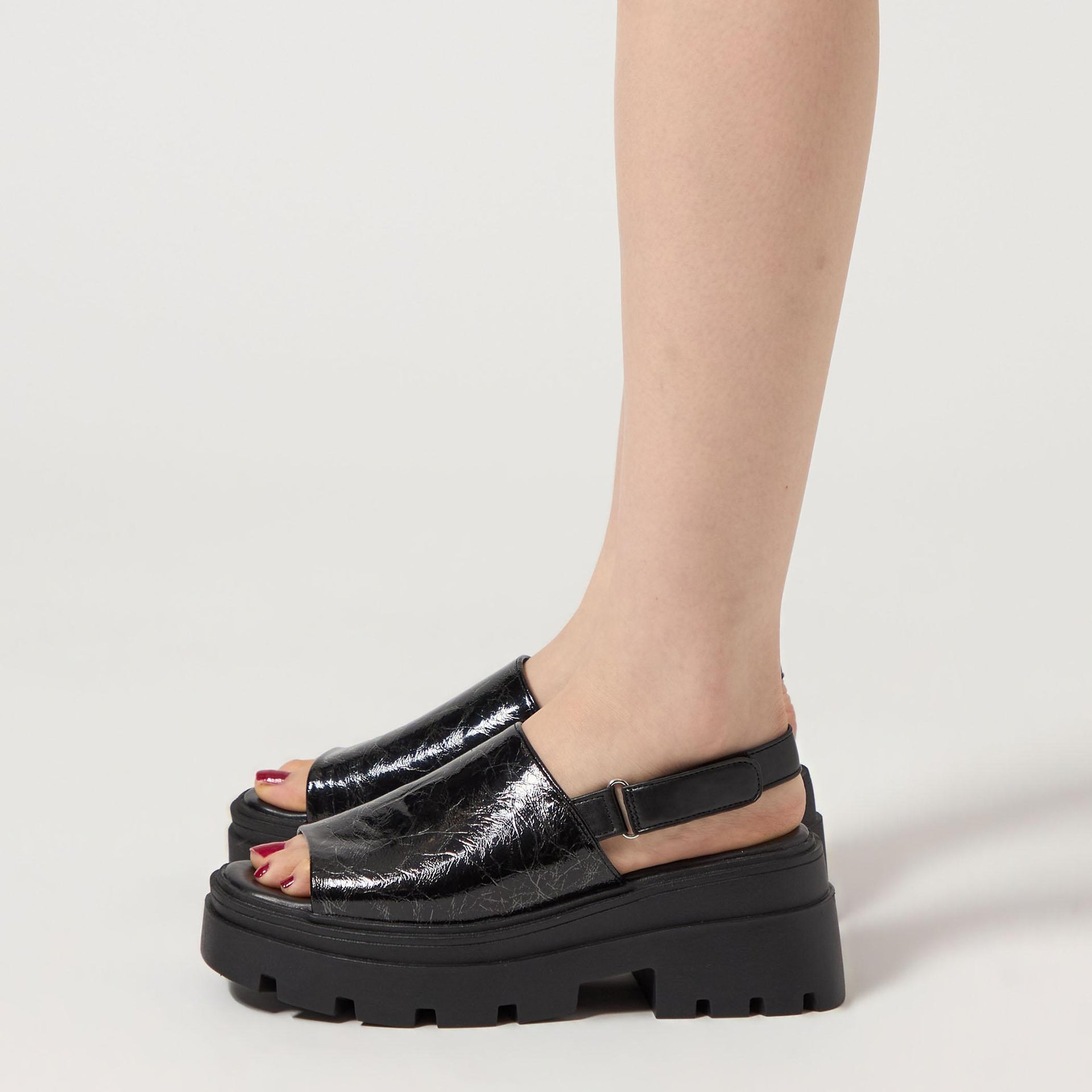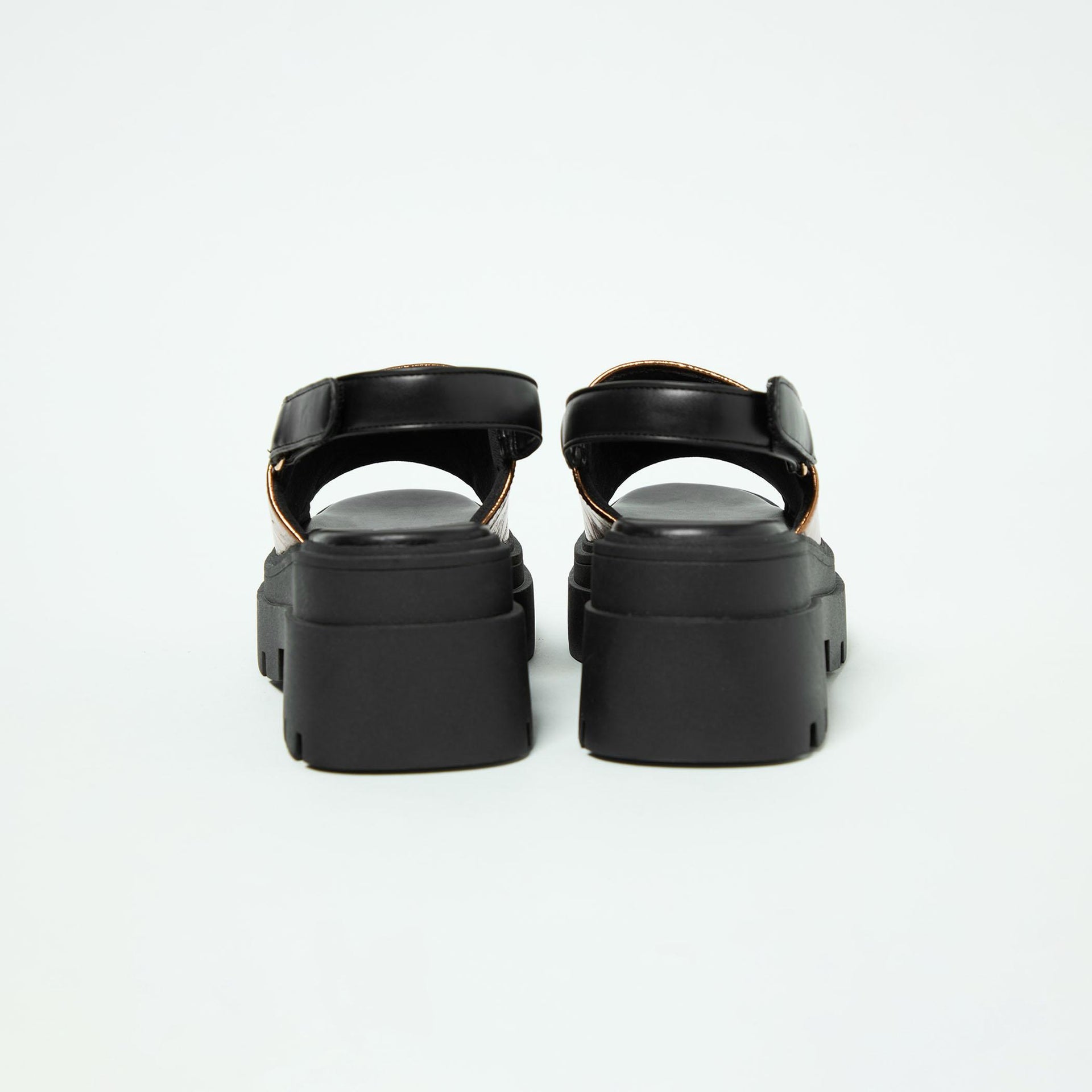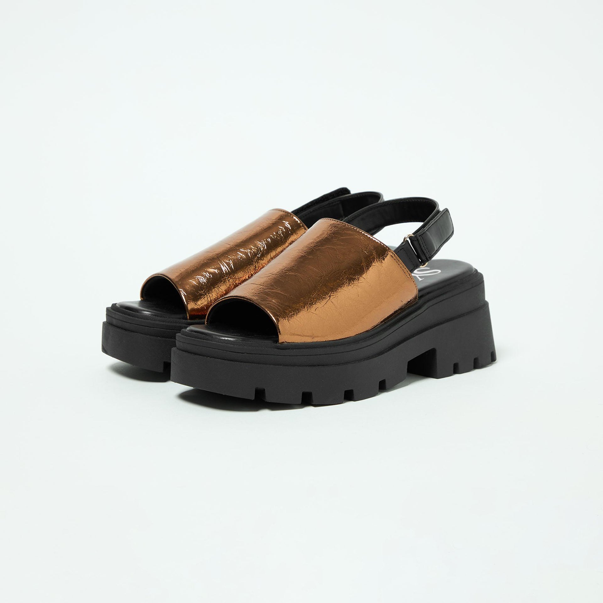 存在感を放つボリュームソールにシンプルなアッパーデザインを組み合わせたサンダル。