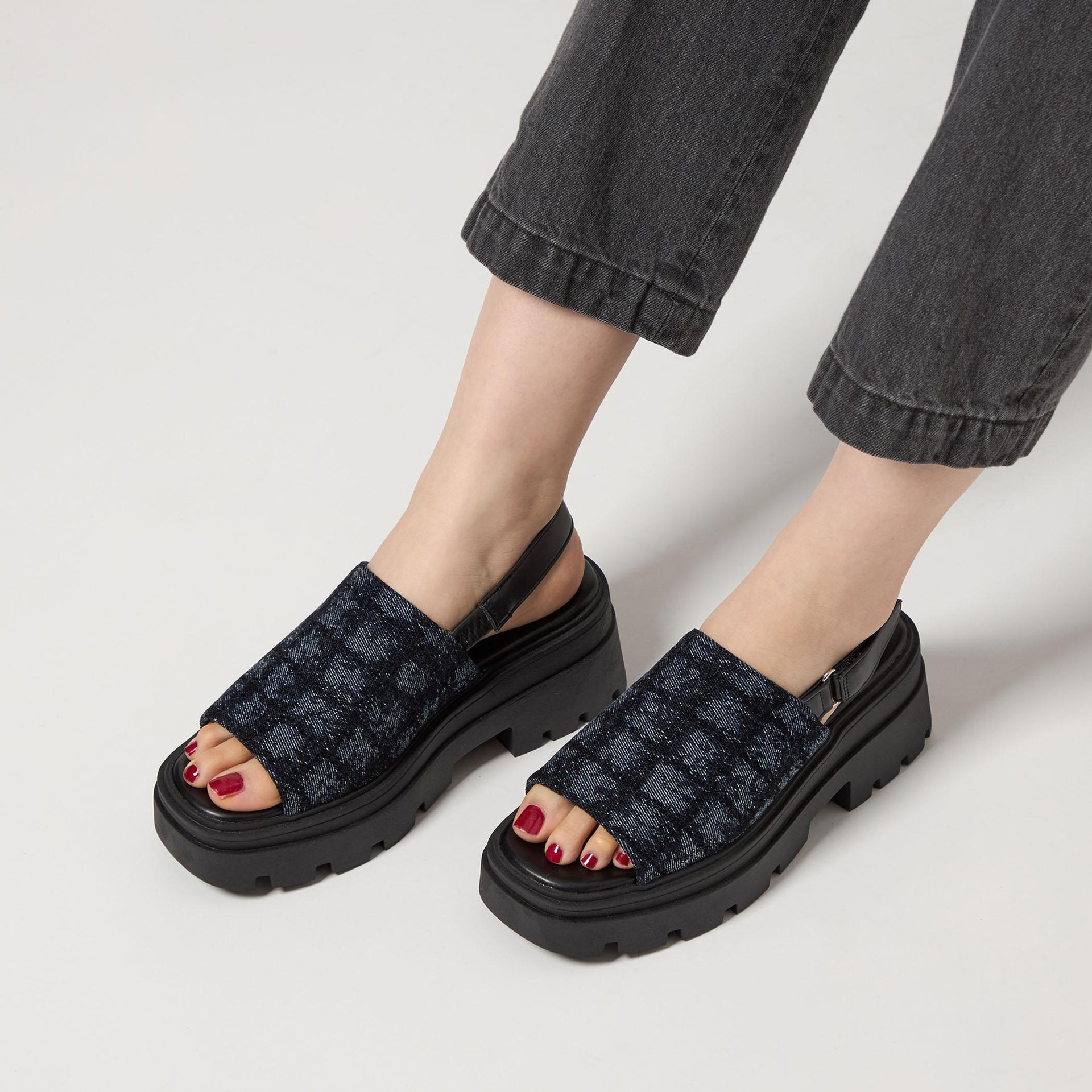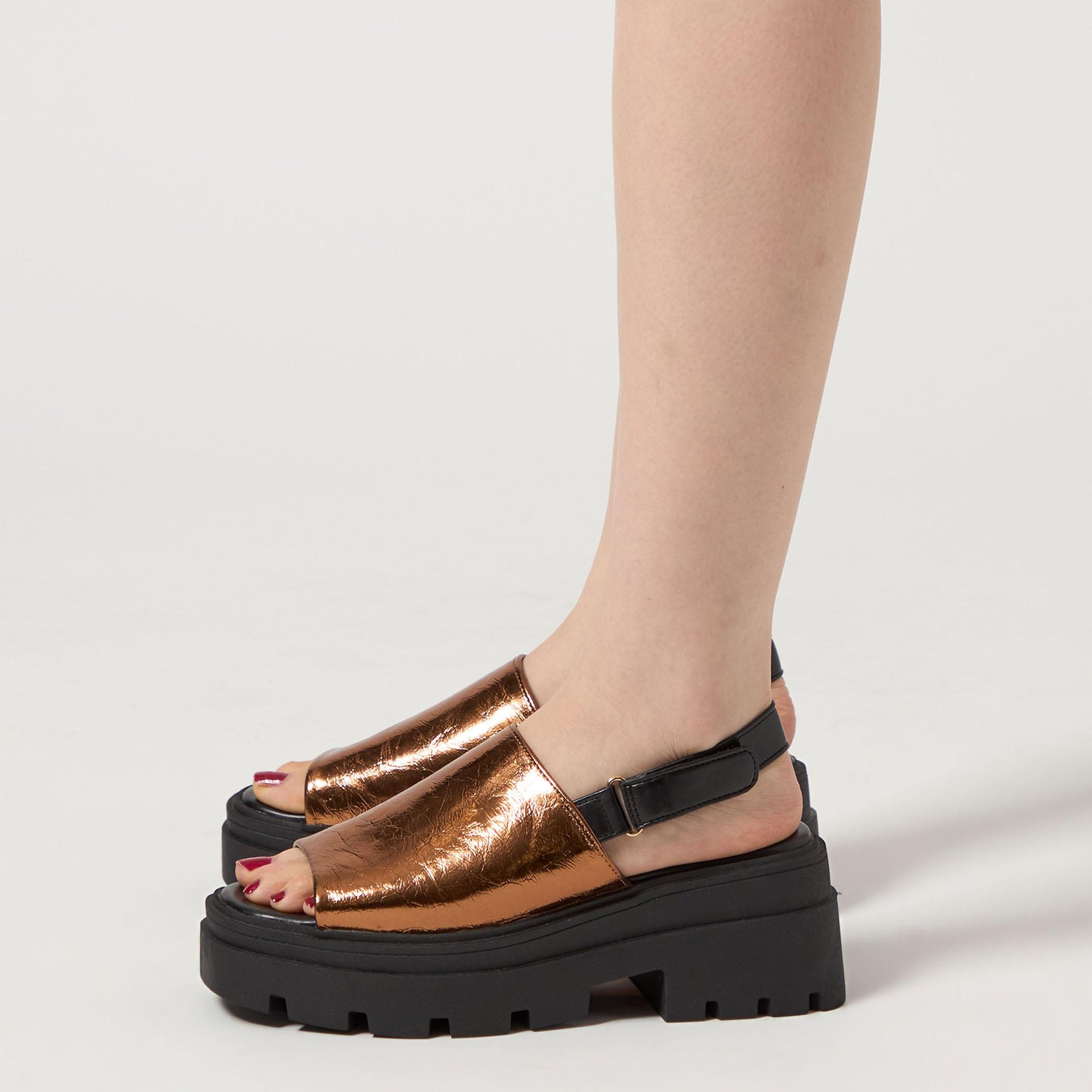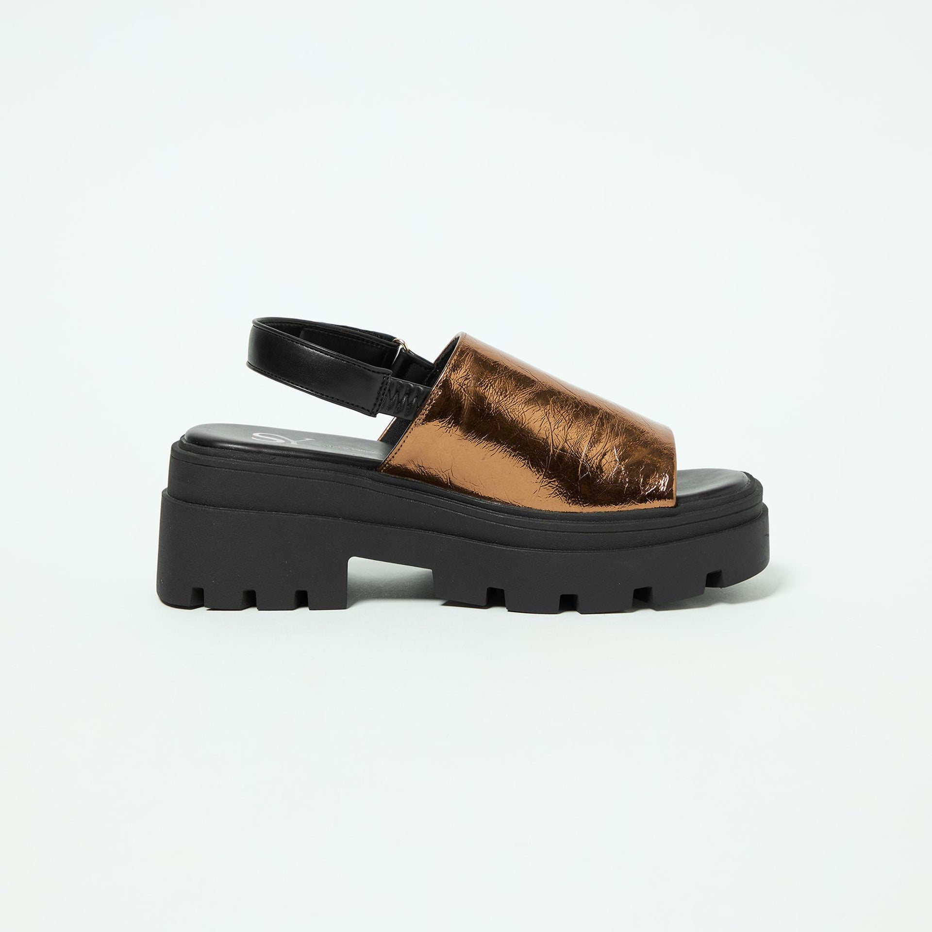 存在感を放つボリュームソールにシンプルなアッパーデザインを組み合わせたサンダル。