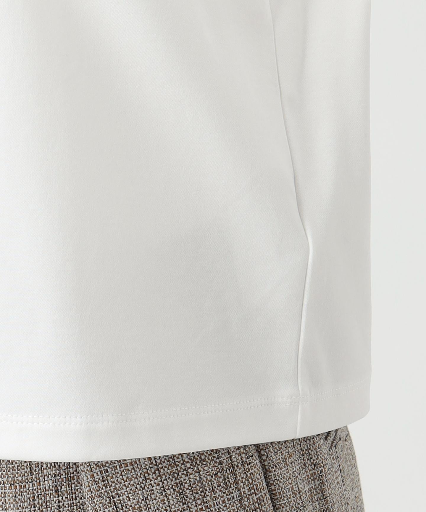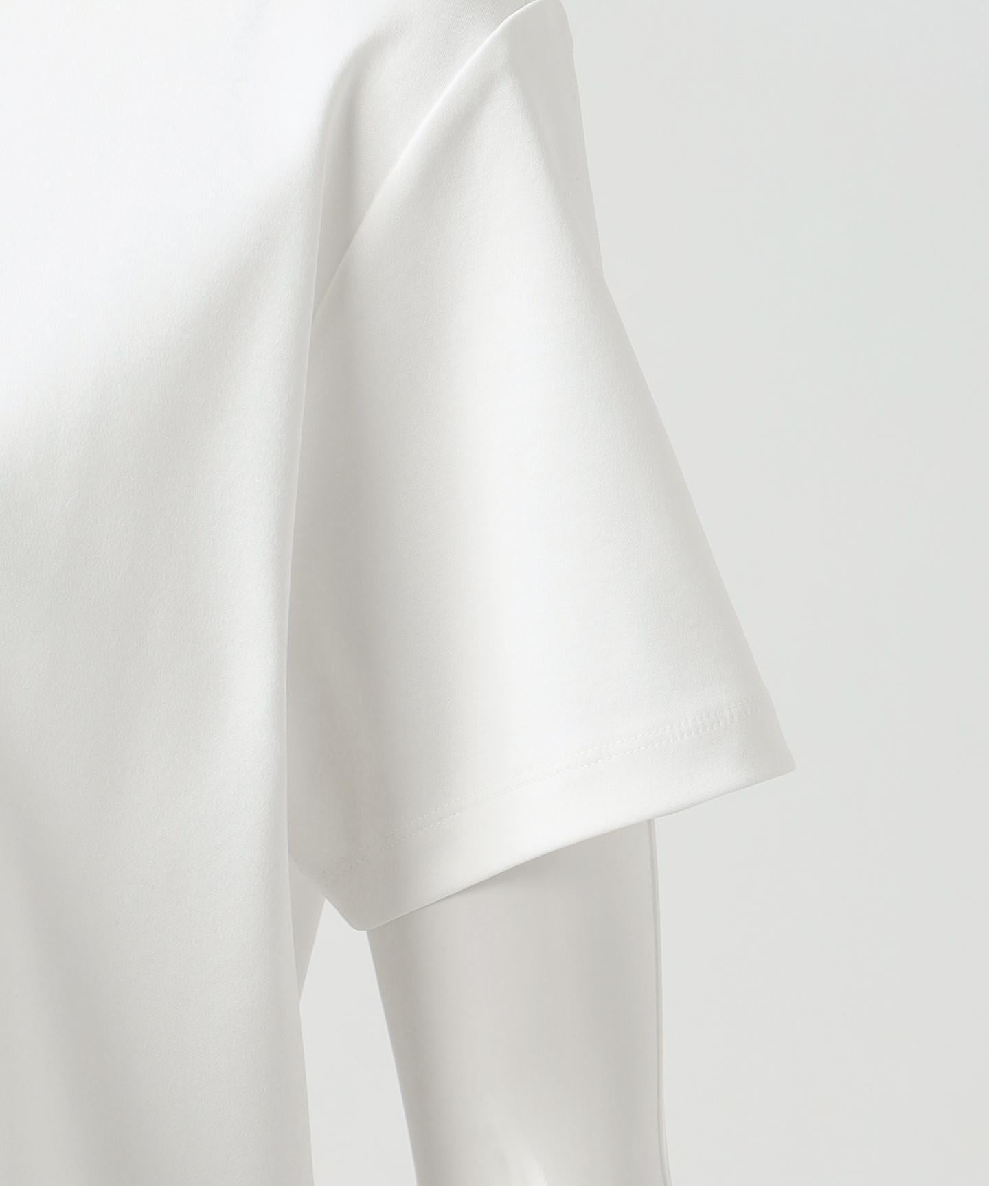 米綿のスーピマコットンのみを原料に、希少な糸の太さに紡績した糸を使用しています。表面が滑らかに見えるスムースな編み立てで、糸の段階で毛羽が立ちにくく艶が持続する加工を施し、ナチュラルなストレッチ感も加えています。着用してわかる肌離れの良さとナチュラルなストレッチ、程よいふくらみによる透けの少なさ、またシルエットも崩れにくく、シワになりにくい上質なTシャツ素材です。ご家庭でお洗濯ができるのも嬉しいポイントです。