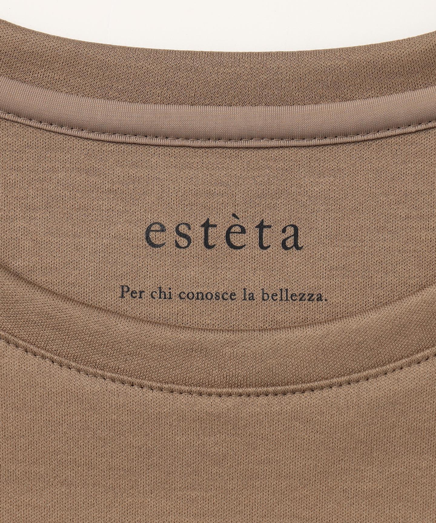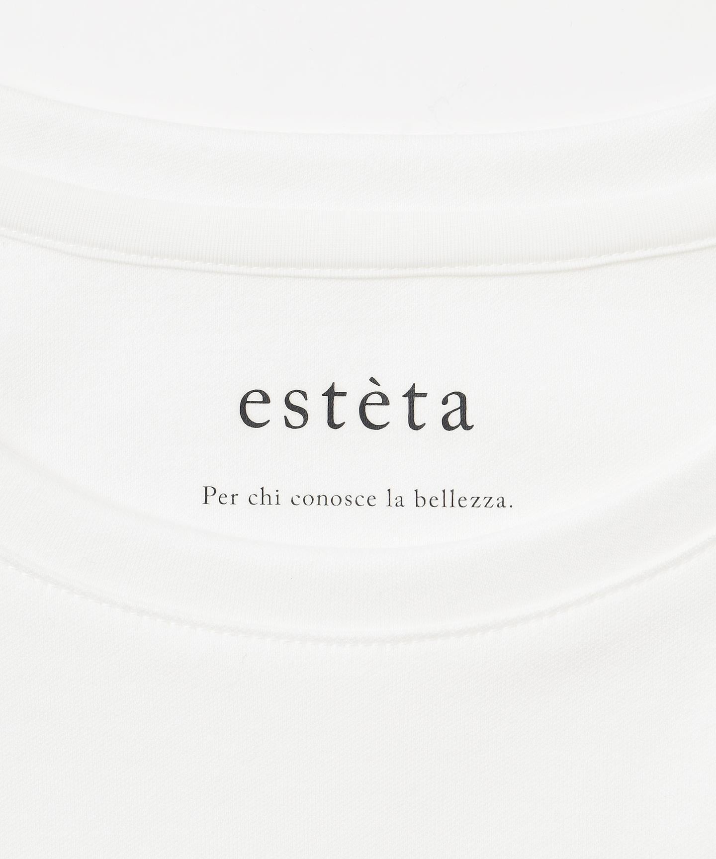 上質スーピマコットン素材のクロップド丈のクルーネックTEE。同素材半袖Tシャツとベースシルエットは同じですが、丈を短くしているので、ウエストがマークされたタックワイドパンツやドロストパンツ、スカートなどに、裾をウエストにインしないでもすっきりと見せてくれるデザインです。背裏にエステータのブランドロゴプリントが施されています。ベーシックに使いやすいブラック系(#005)とホワイト系(#001)に、旬な新色ブラウン(#030)が加わり全3色展開です。
