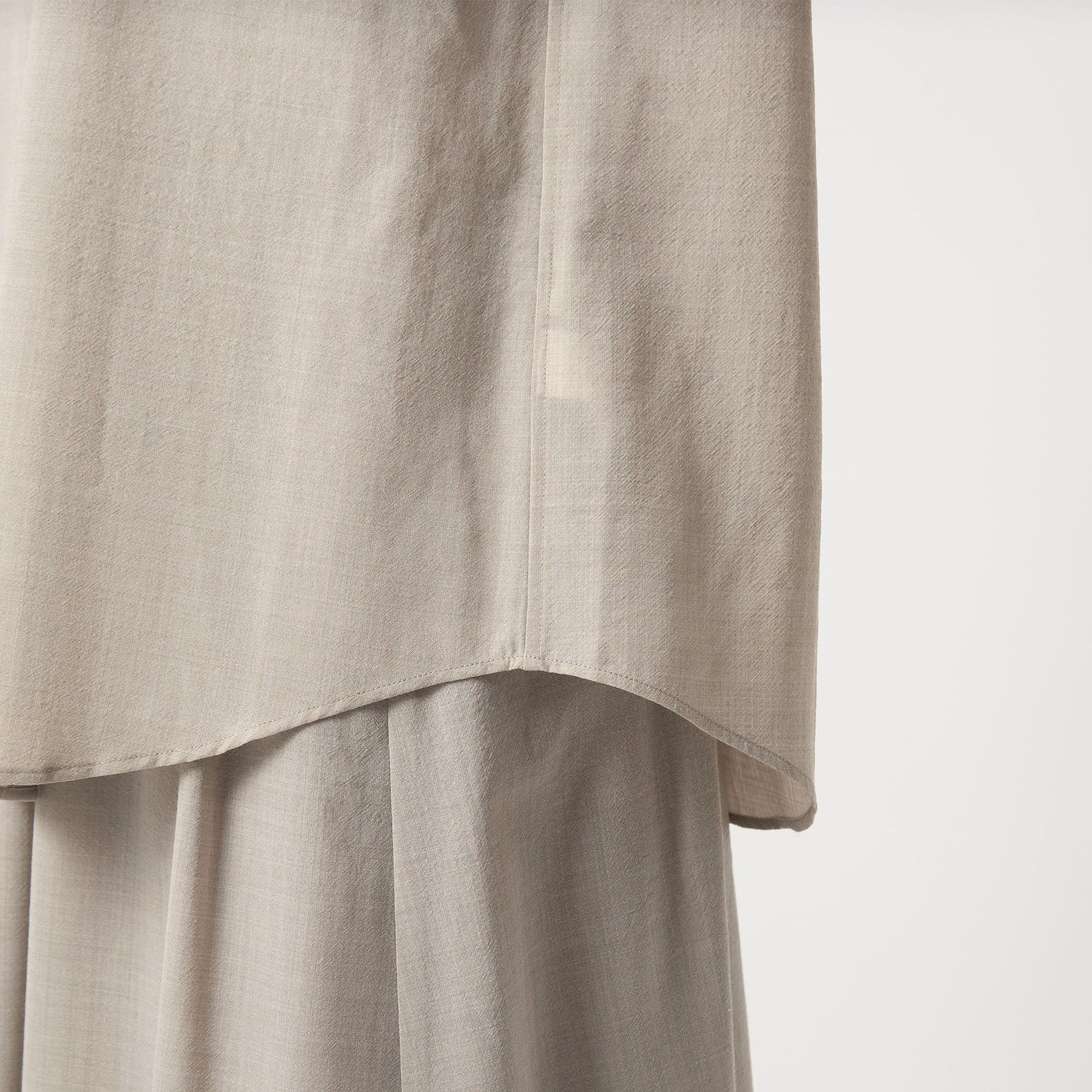 同シリーズのスカートを合わせたワンピース風の着こなしもおすすめです。