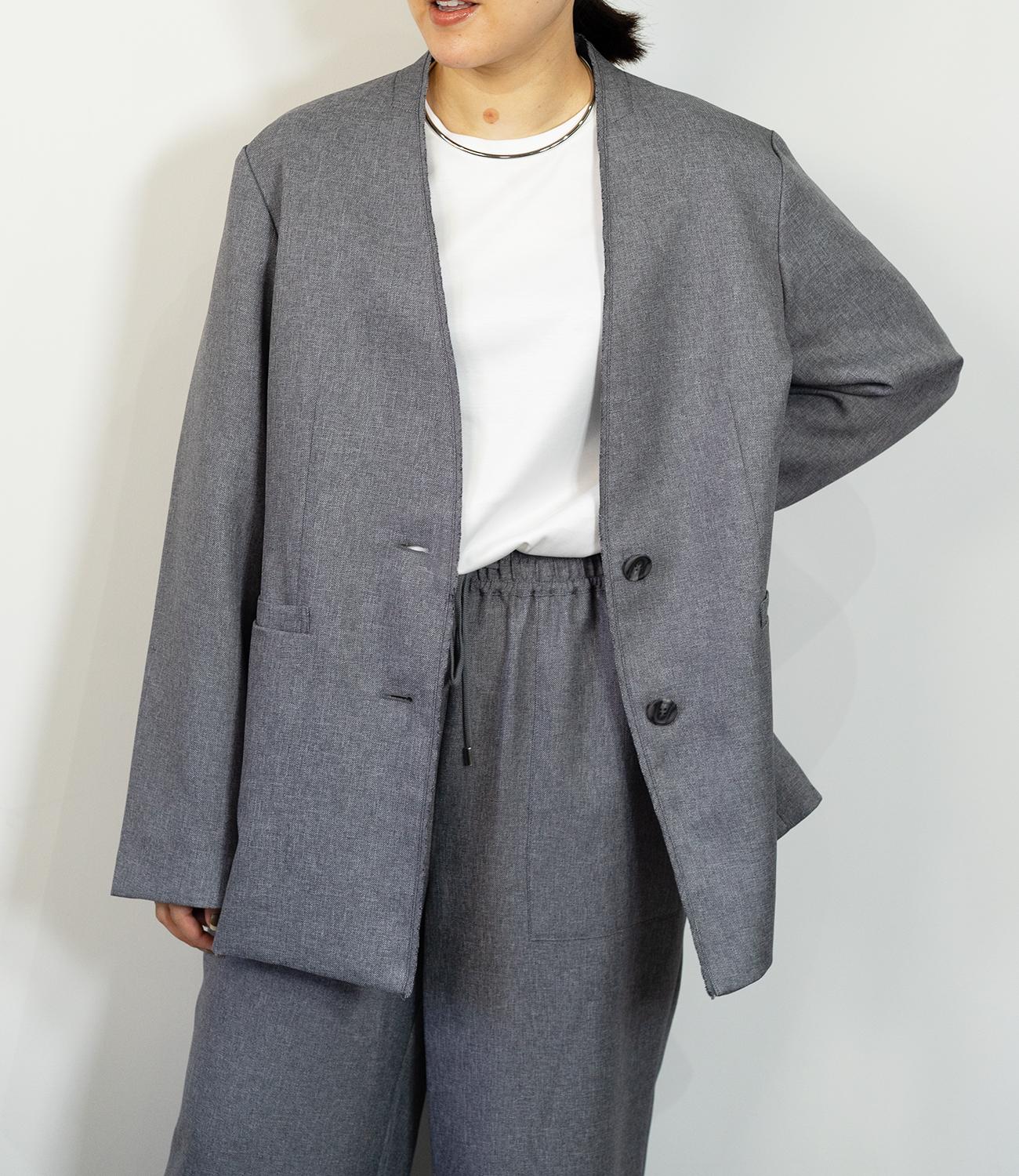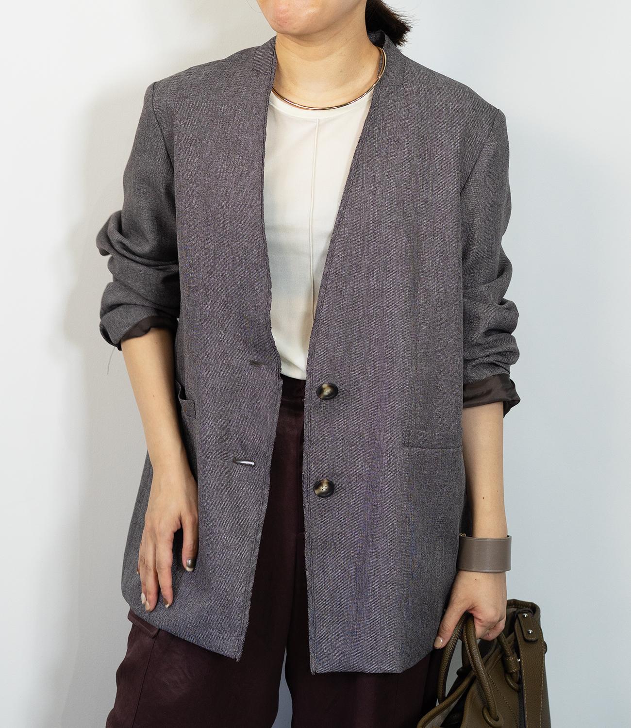 スタイリスト一押し!見た目以上の軽さとお手軽なお値段がおすすめののVネックジャケット。