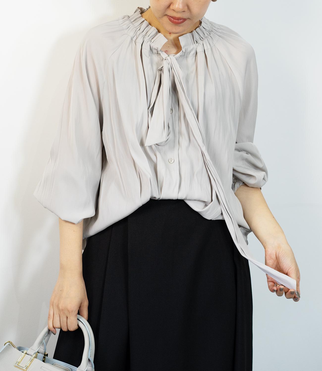 騙されたと思って1度袖を通して欲しいボウタイブラウス。