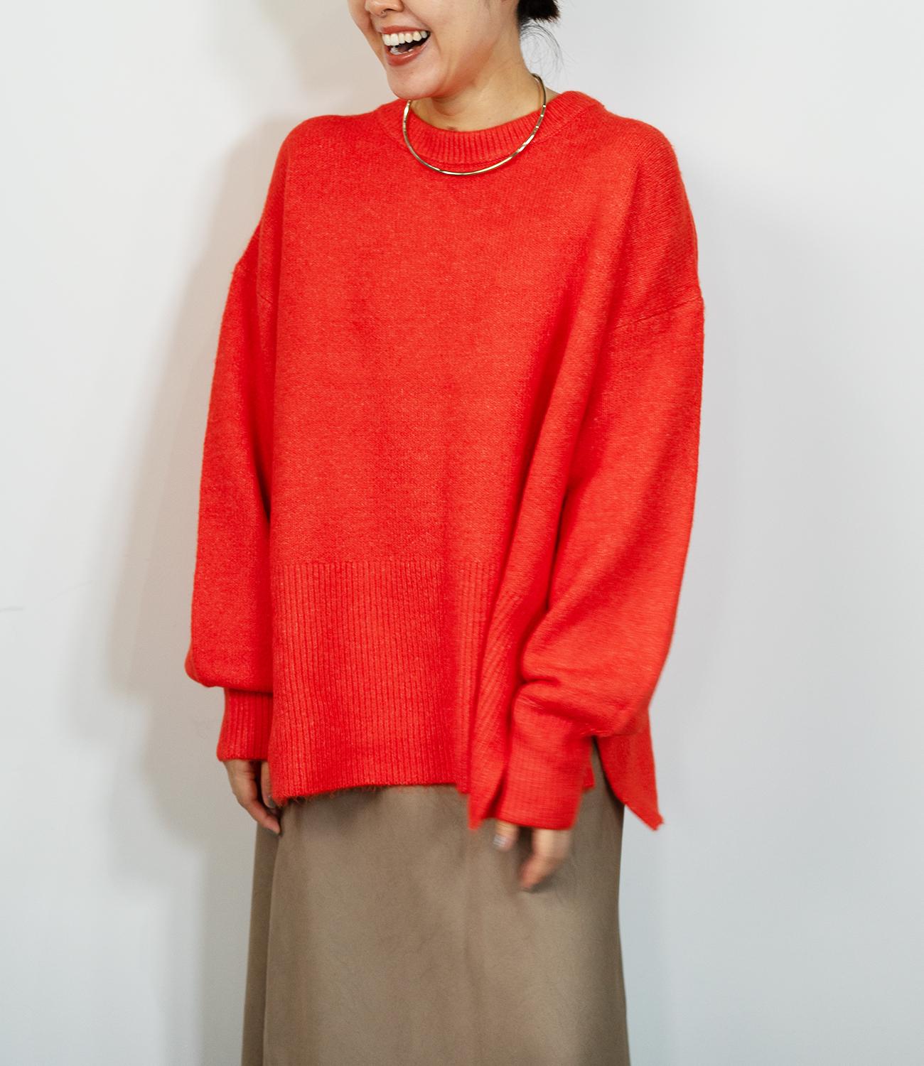 パッと目を惹く鮮やかなカラー展開が魅力的なボリュームニット。