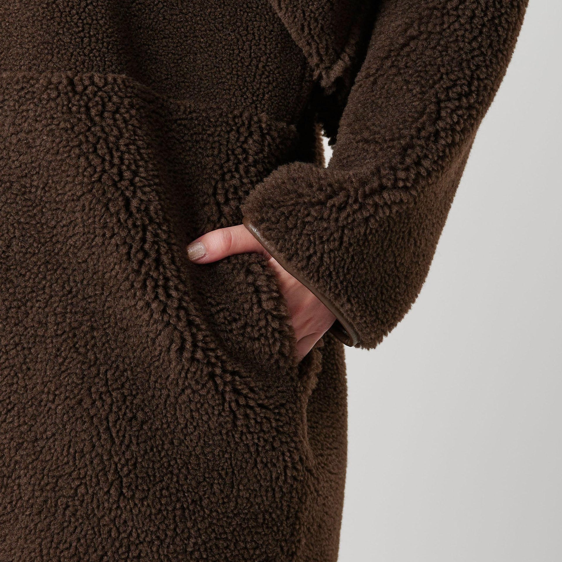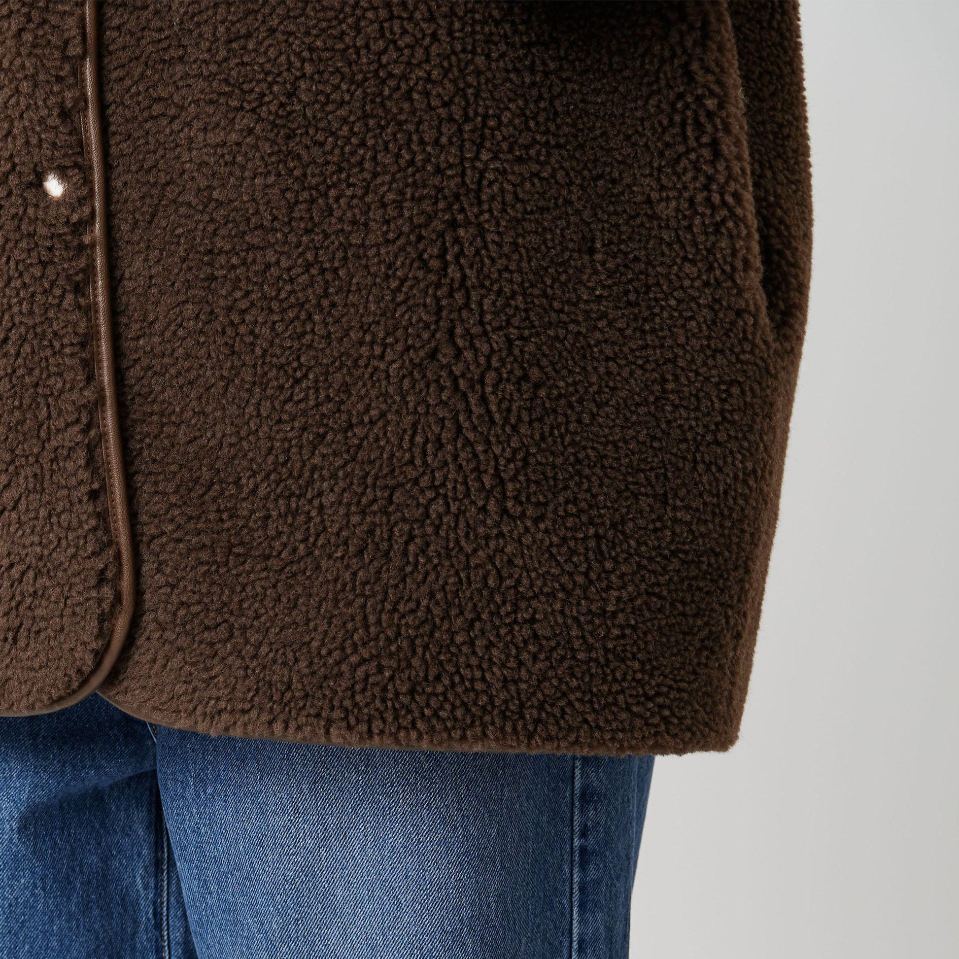 ウール混のふんわりとしたボアと、スエード調の滑らかな素材を組み合わせたリバーシブル仕様。