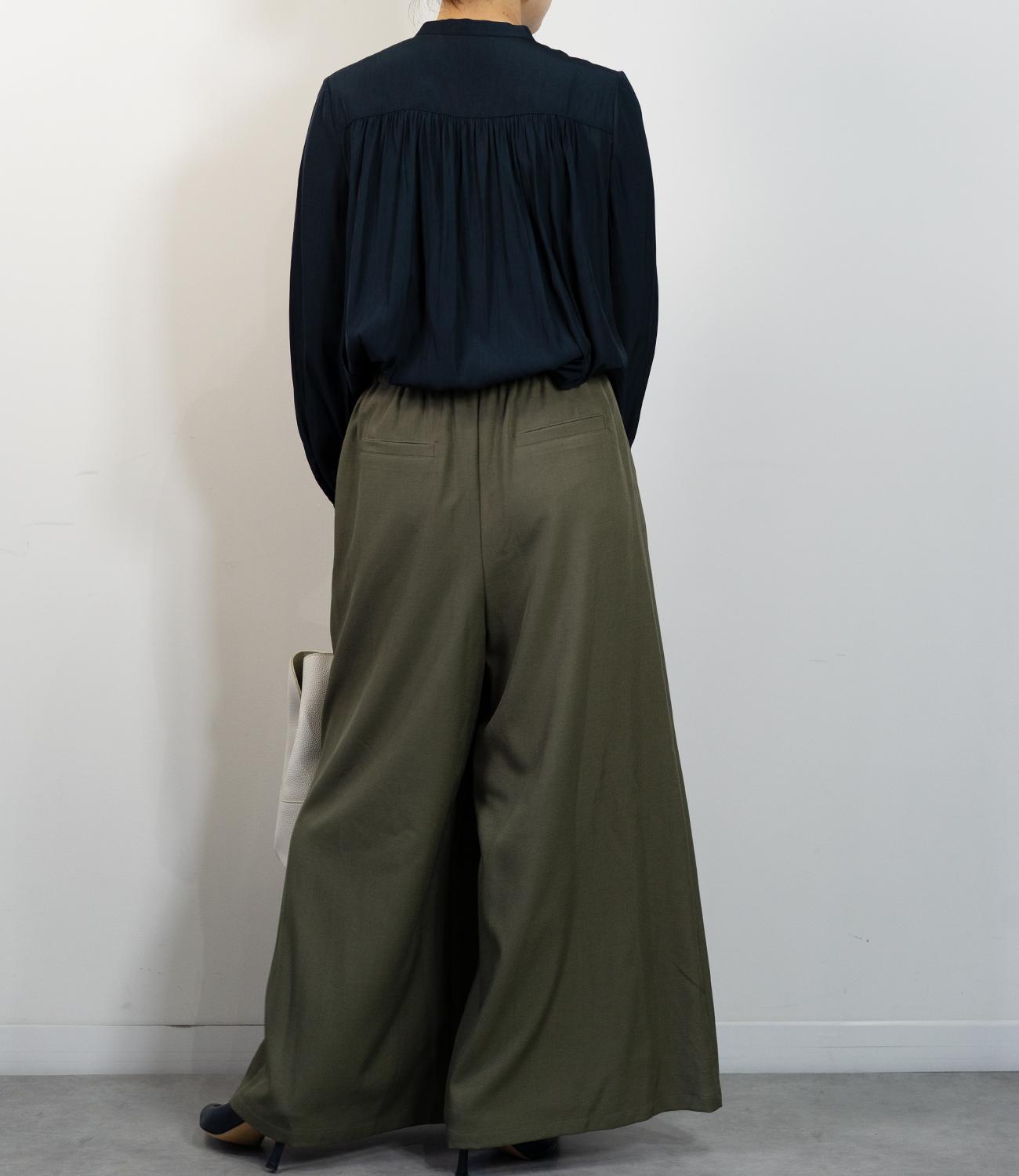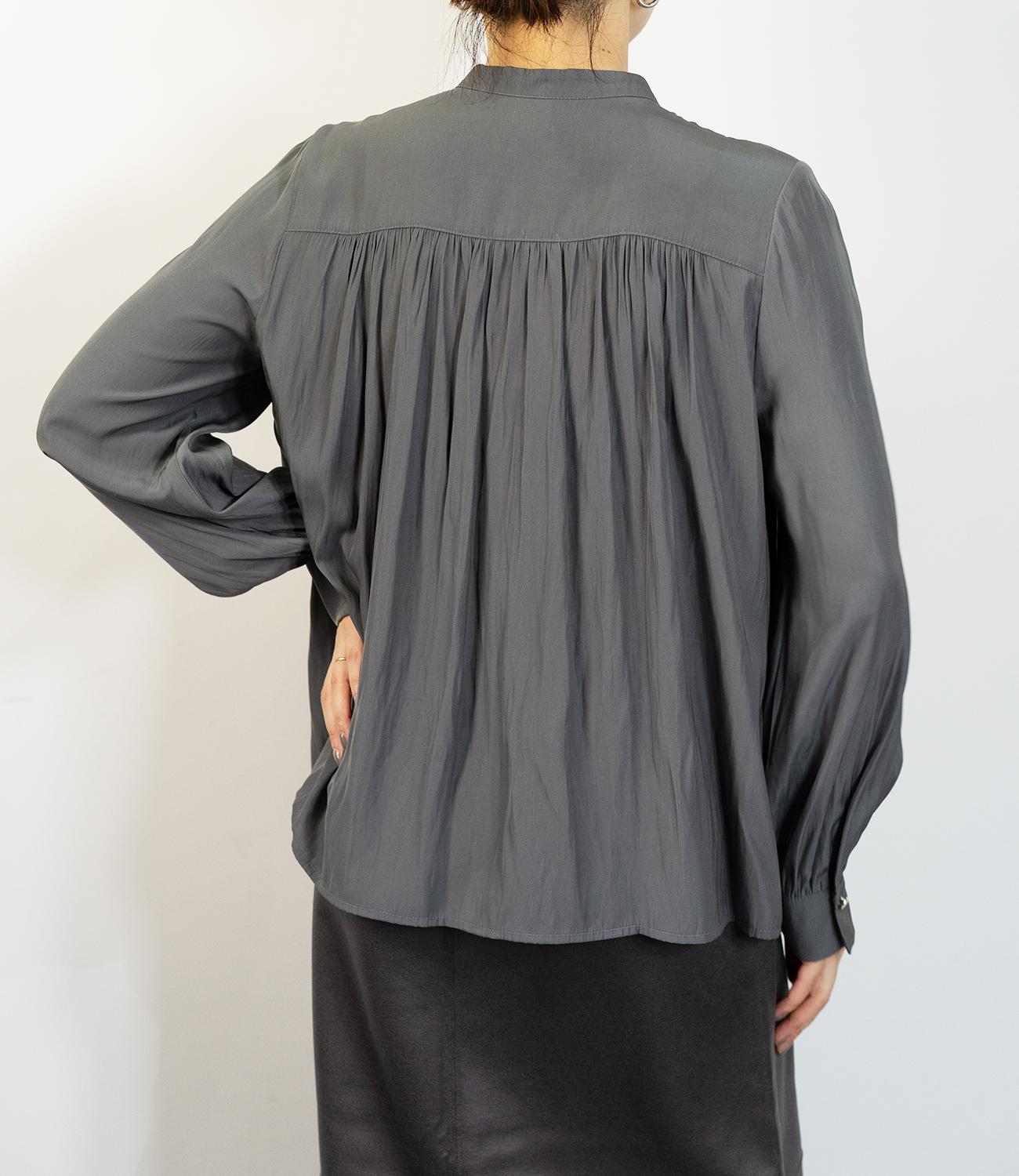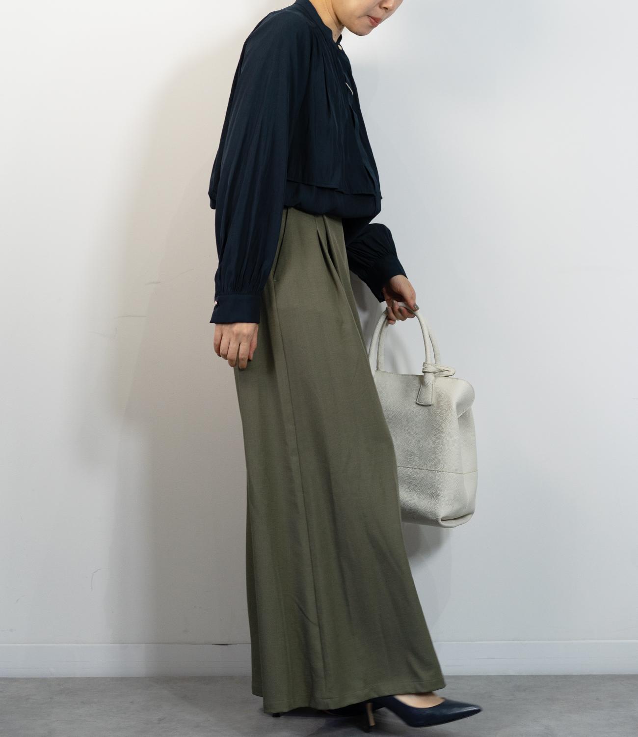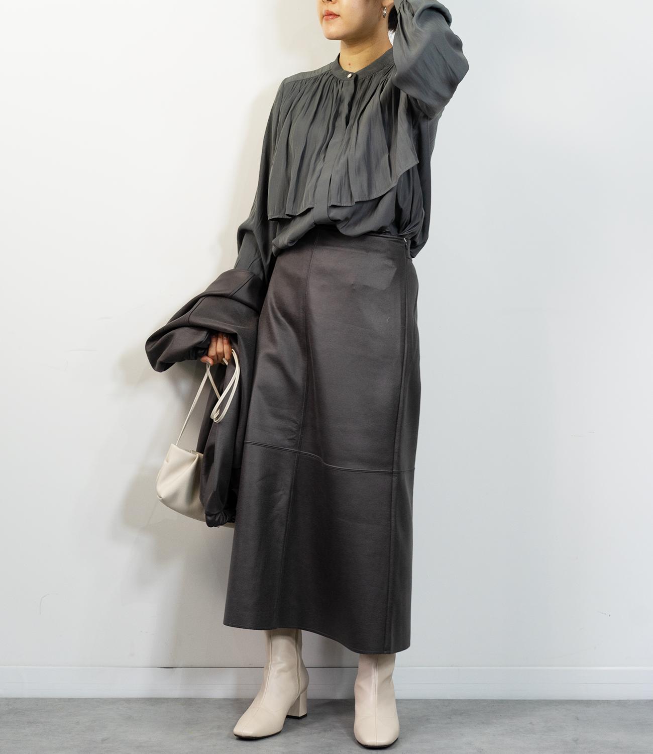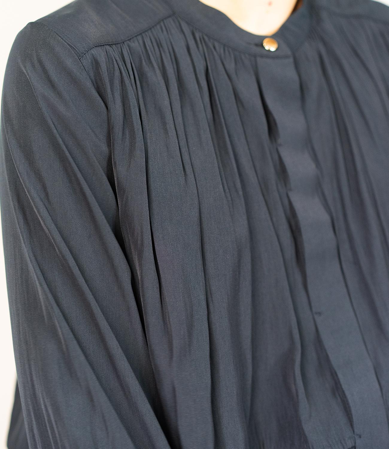 綺麗めスタイルに必須アイテム、バンドカラーブラウス。