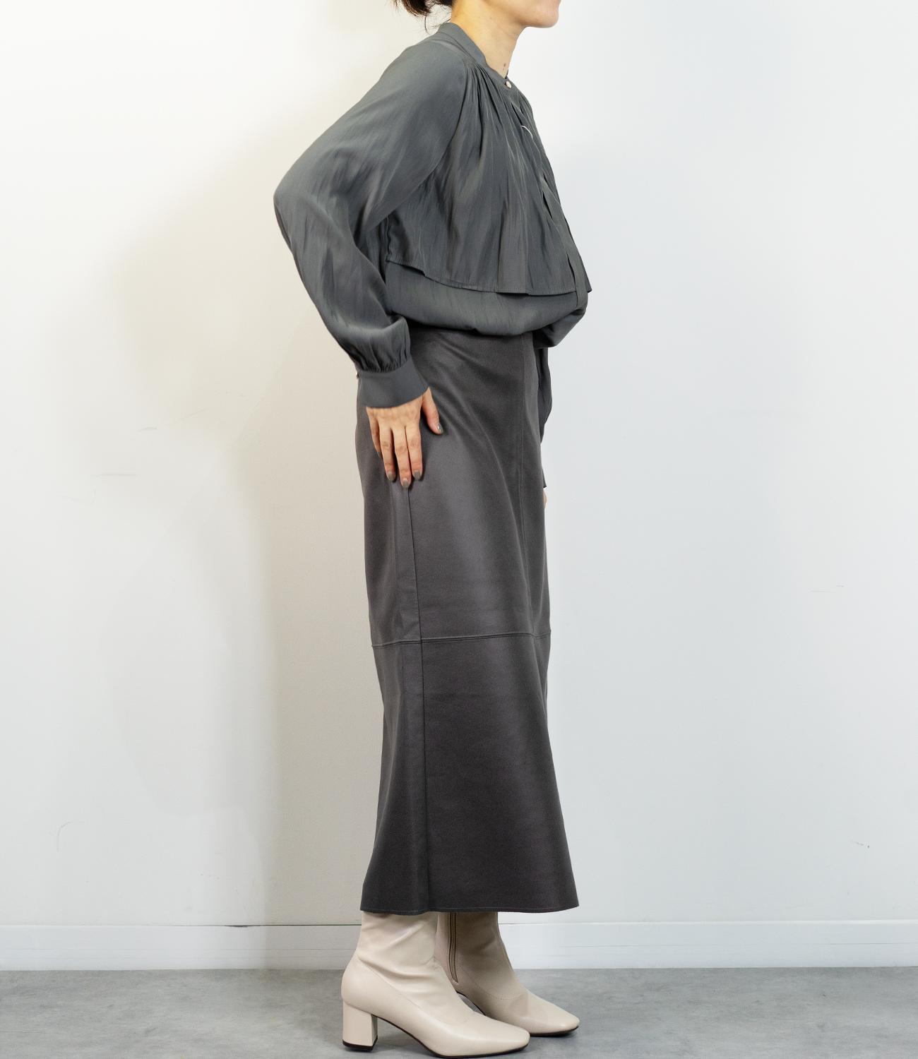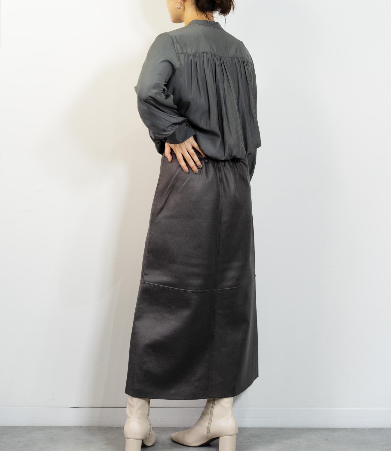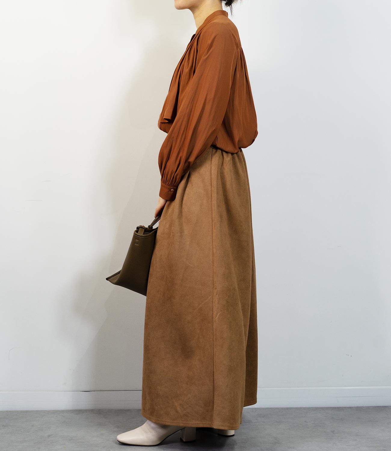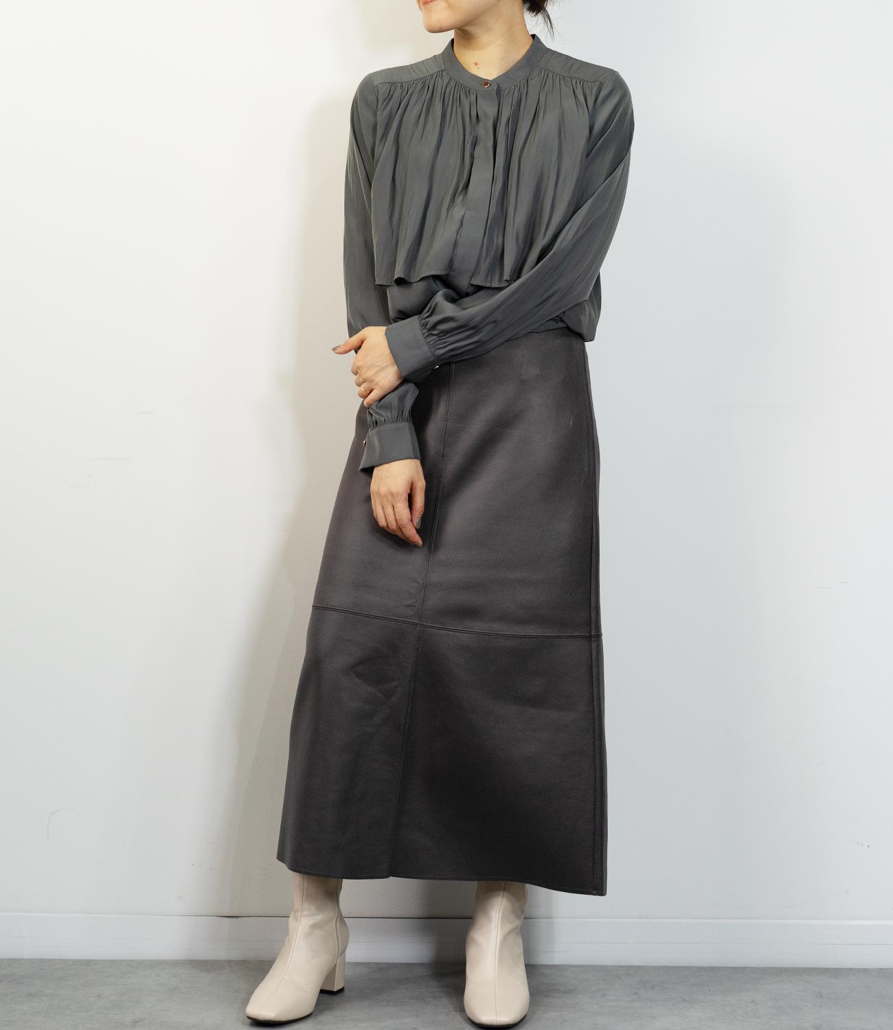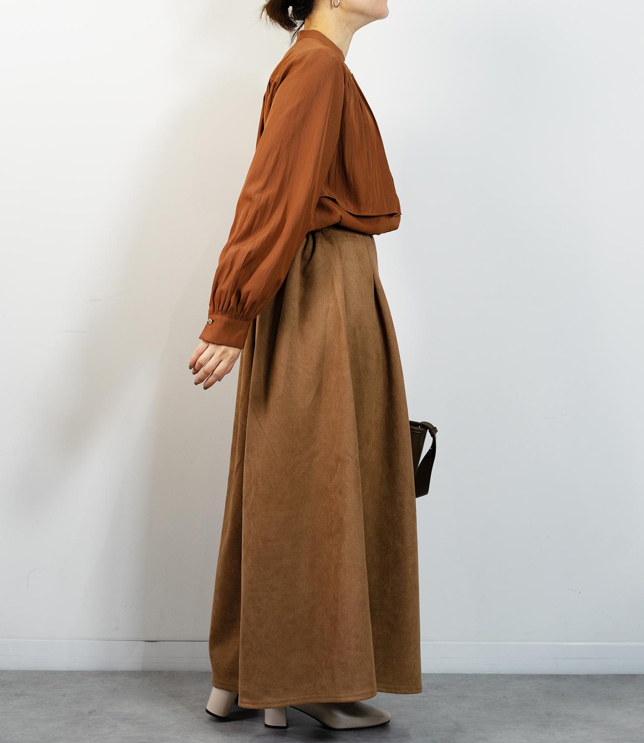 綺麗めスタイルに必須アイテム、バンドカラーブラウス。