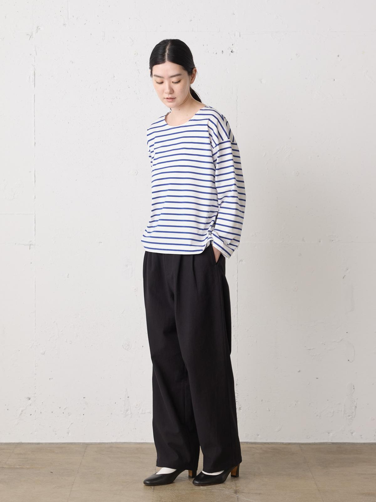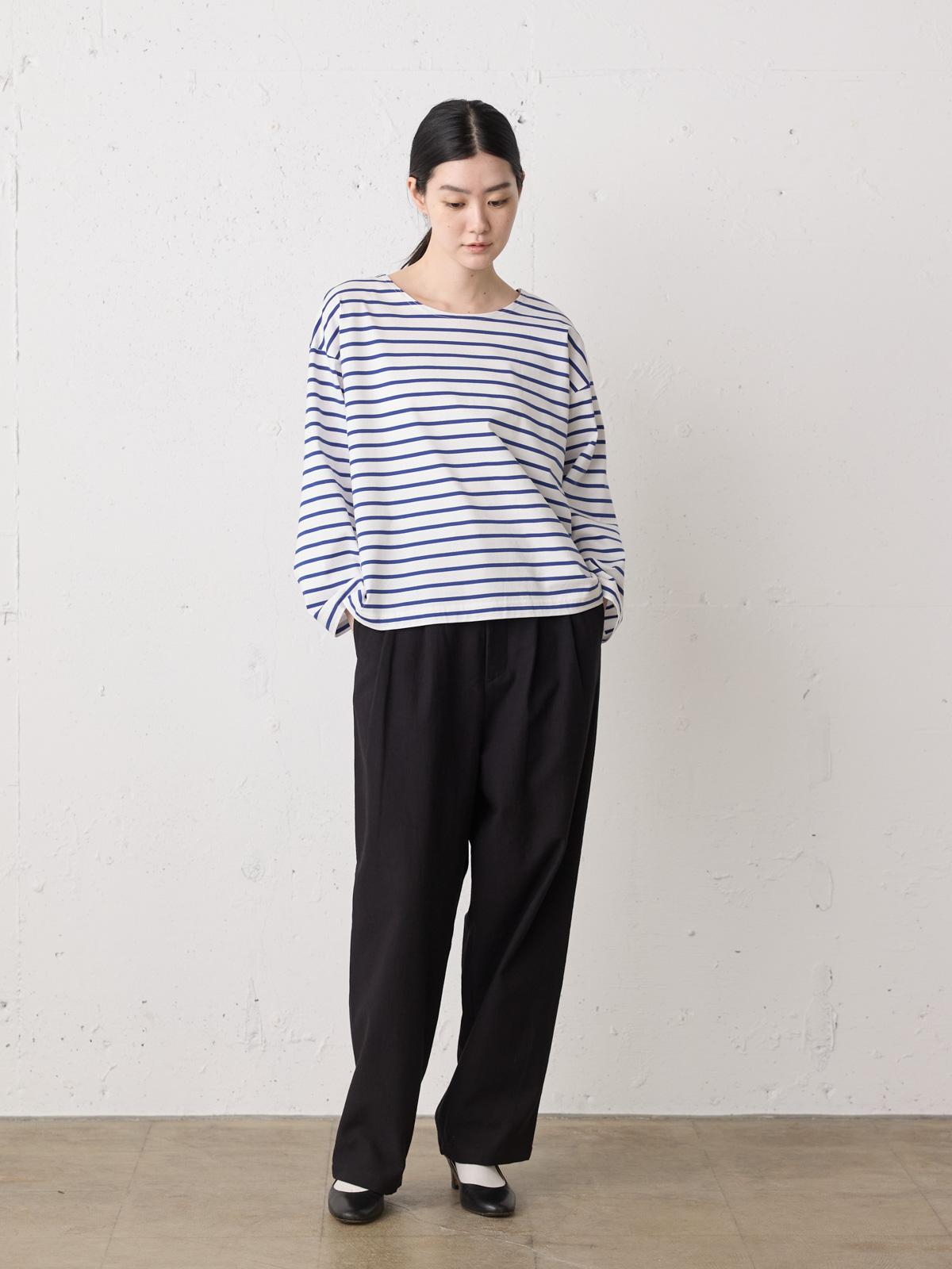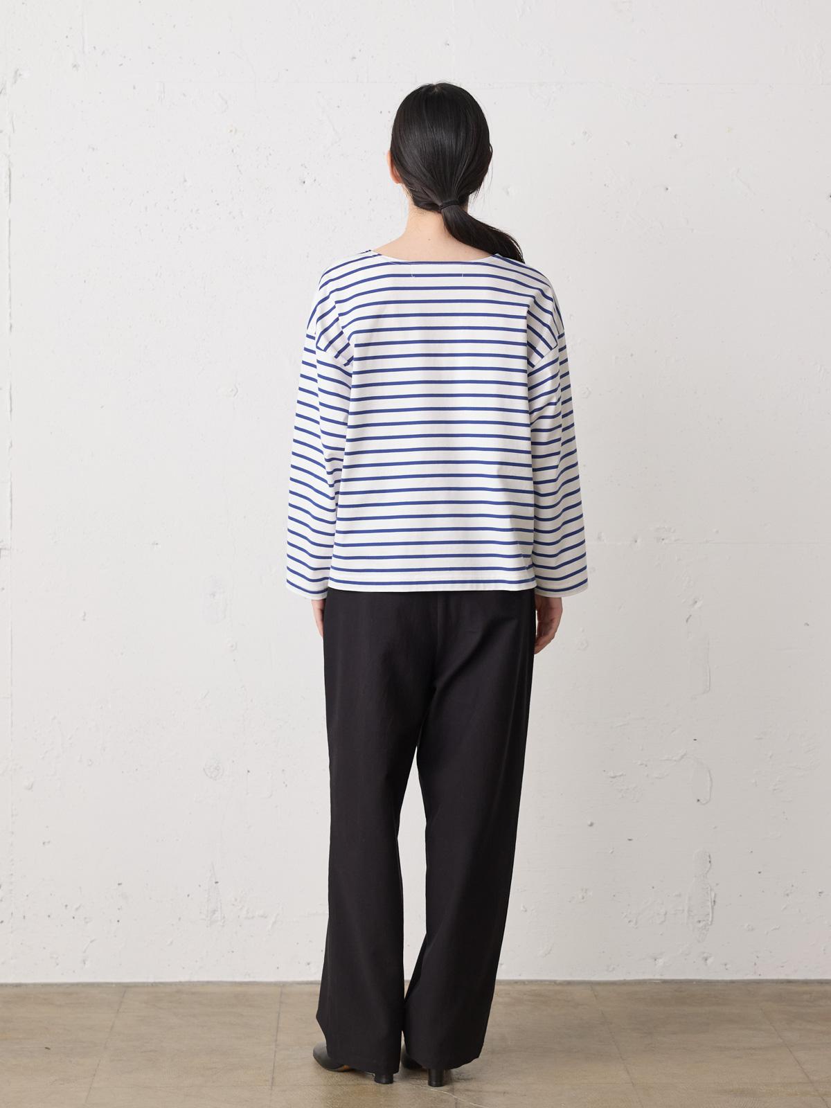 カルフォルニアのサンホーキン綿を使用したボーダーワイドプルオーバーです。貴重な原綿を通常より時間をかけた工程で紡績しているウルティマ天竺ボーダーで、ベーシックカジュアルな着こなしを演出します。レイヤードしやすいように少し天幅を広げました。定番アイテムとして長く愛用していただけます。爽やかなブルー系で統一しています。同シリーズ1-710090/ボーダーベーシックTも展開。