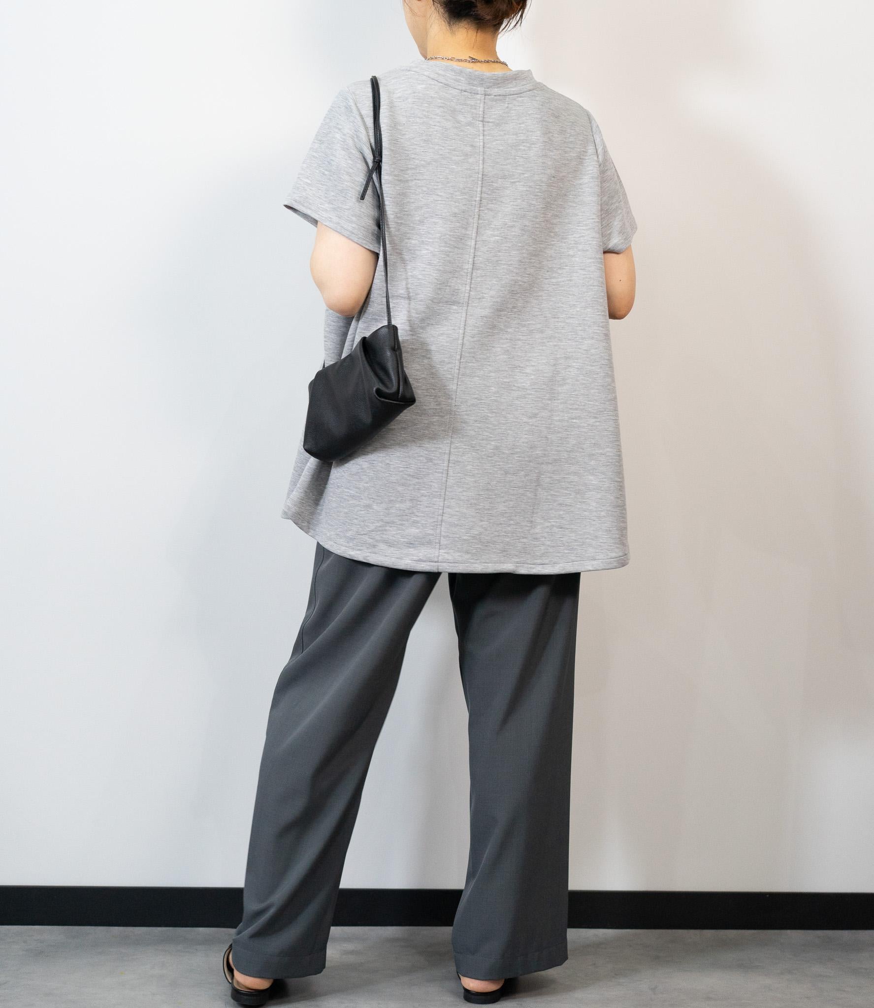 ワイドパンツを合わせたリラクシーな着こなしも、素材のハリ感によってラフになりすぎず、上品な大人カジュアルが完成します。
