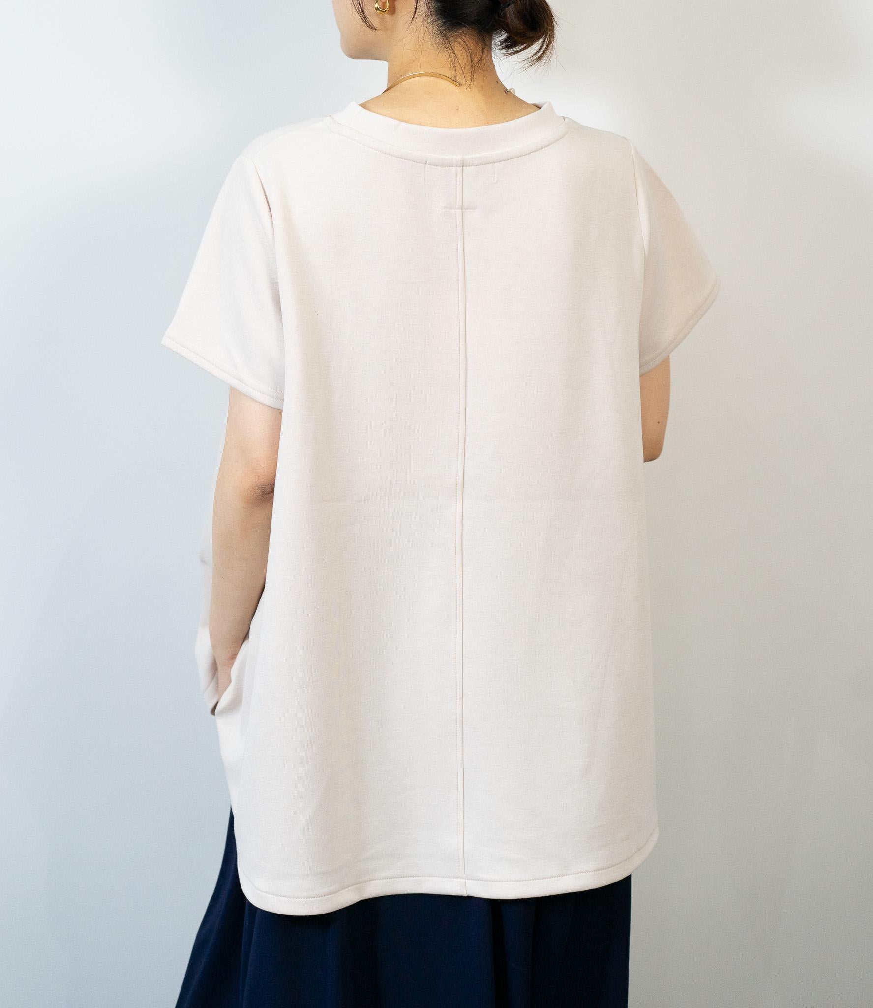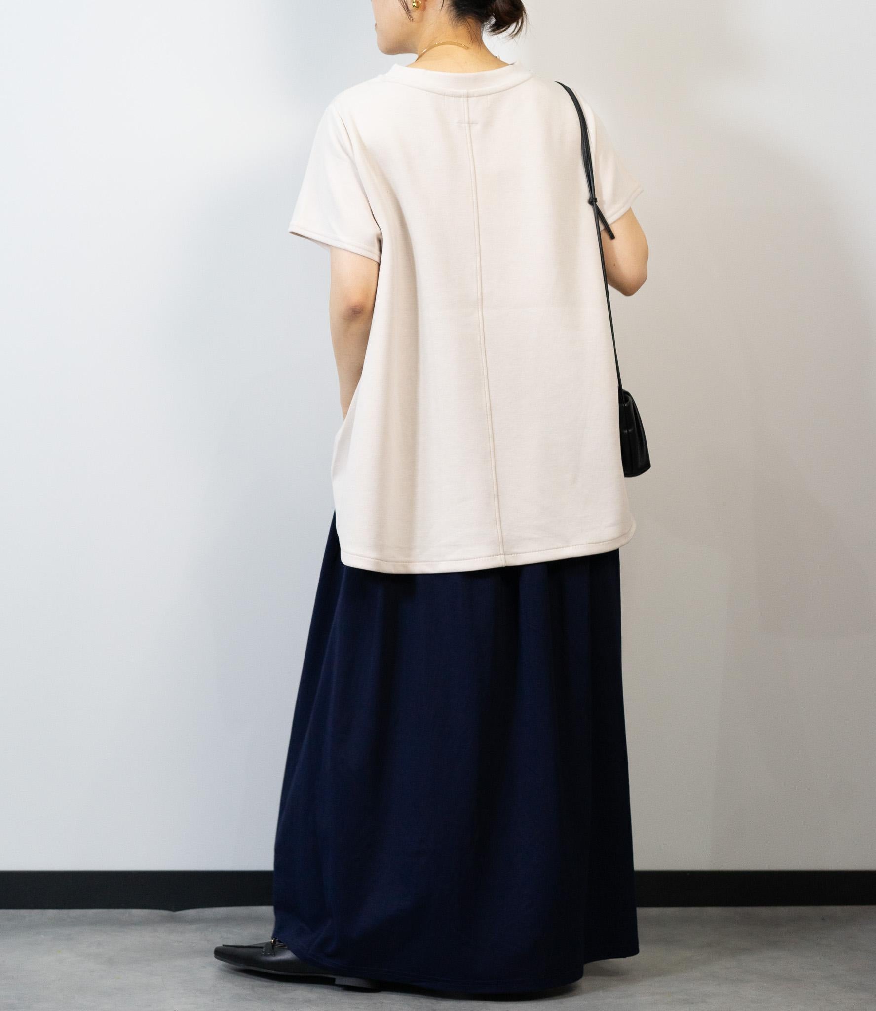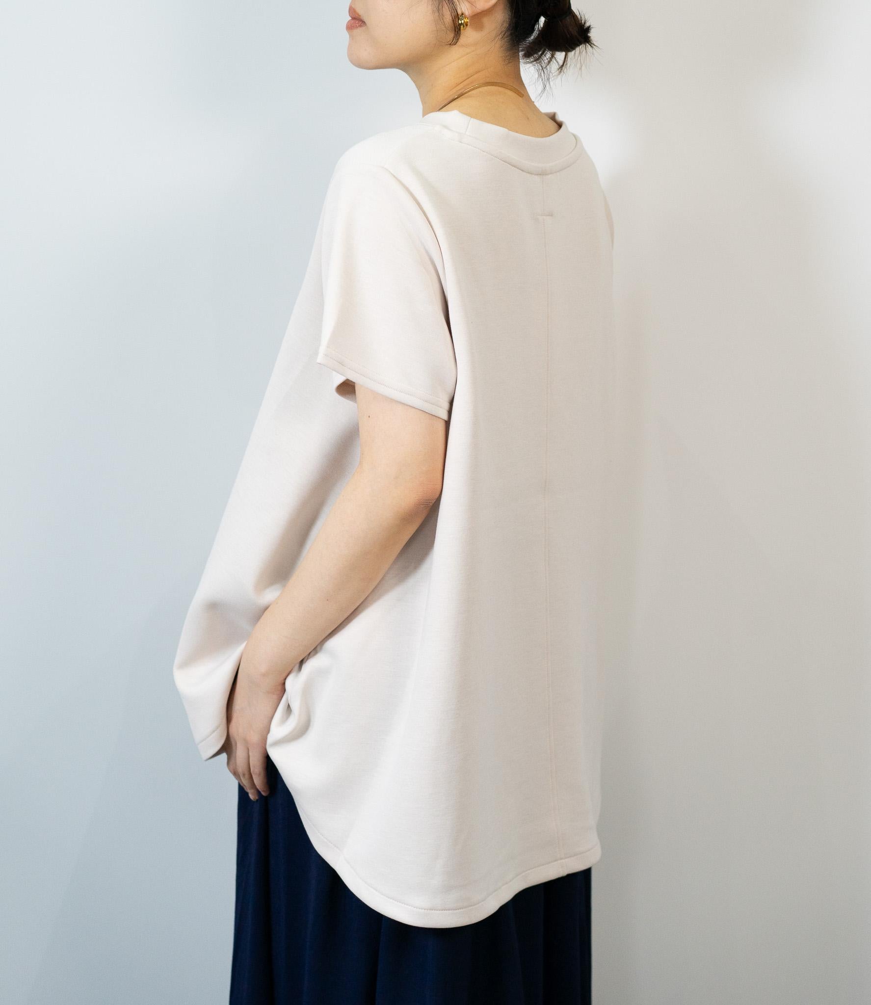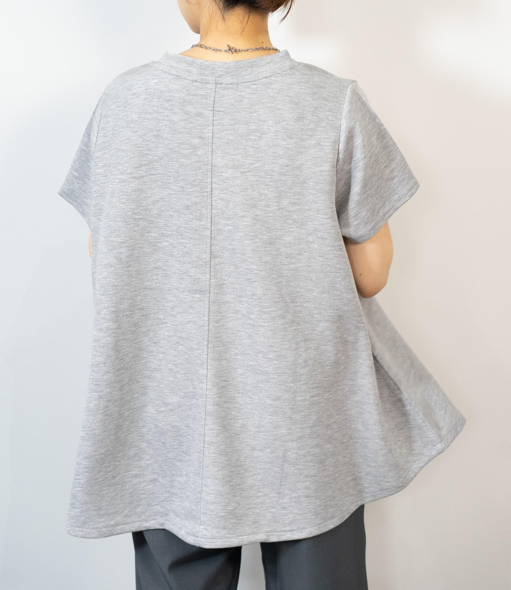 お顔周りをすっきりと見せるフレアシルエットにプレーンなネックライン。肩から二の腕をさりげなくカバーする絶妙な袖丈が、女性らしい華奢な佇まいを強調。