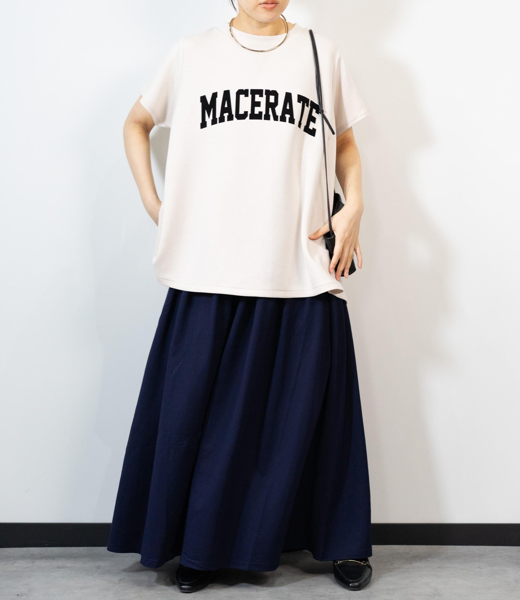 美しく広がるフレアなAラインシルエットが特徴的なフロッキーロゴトップス。