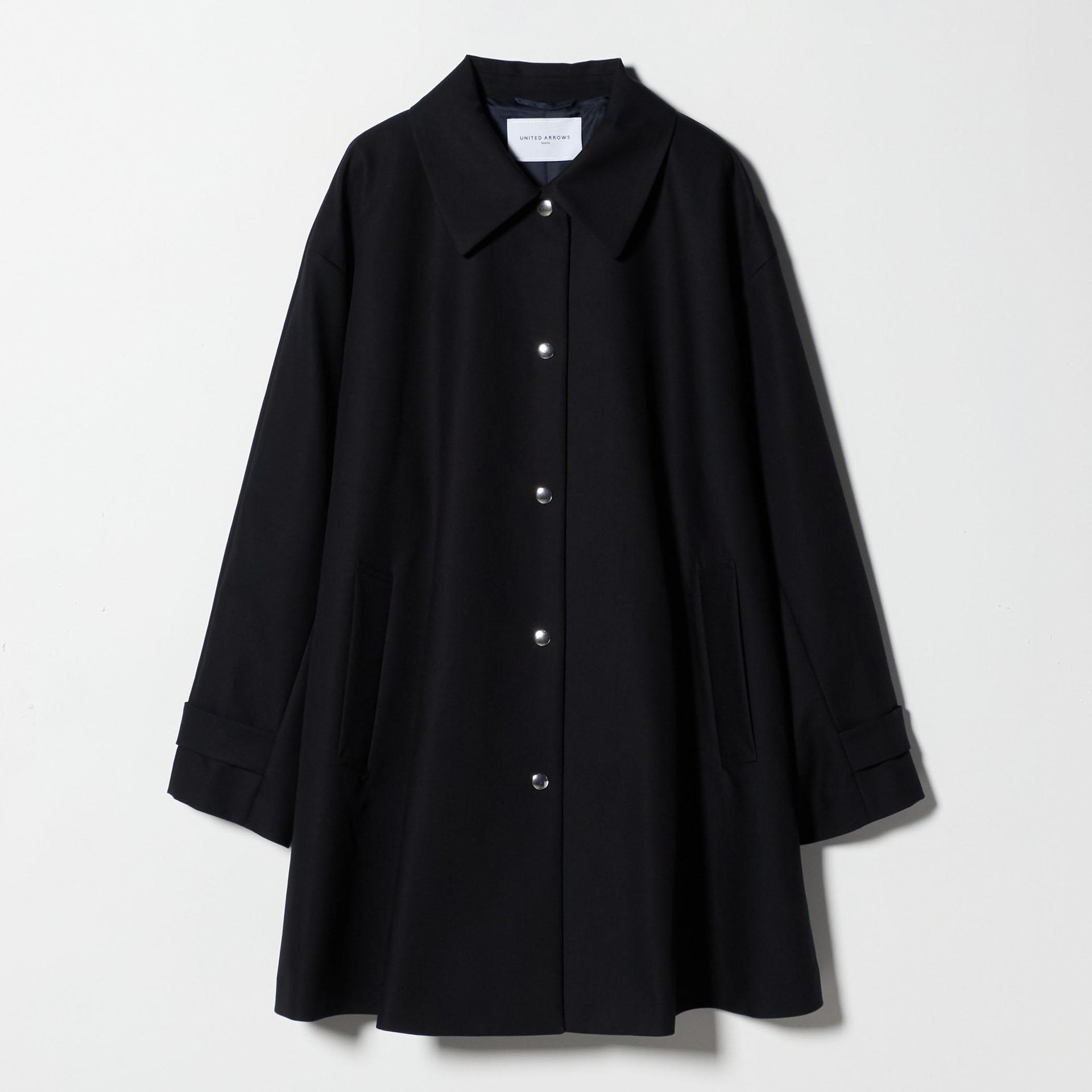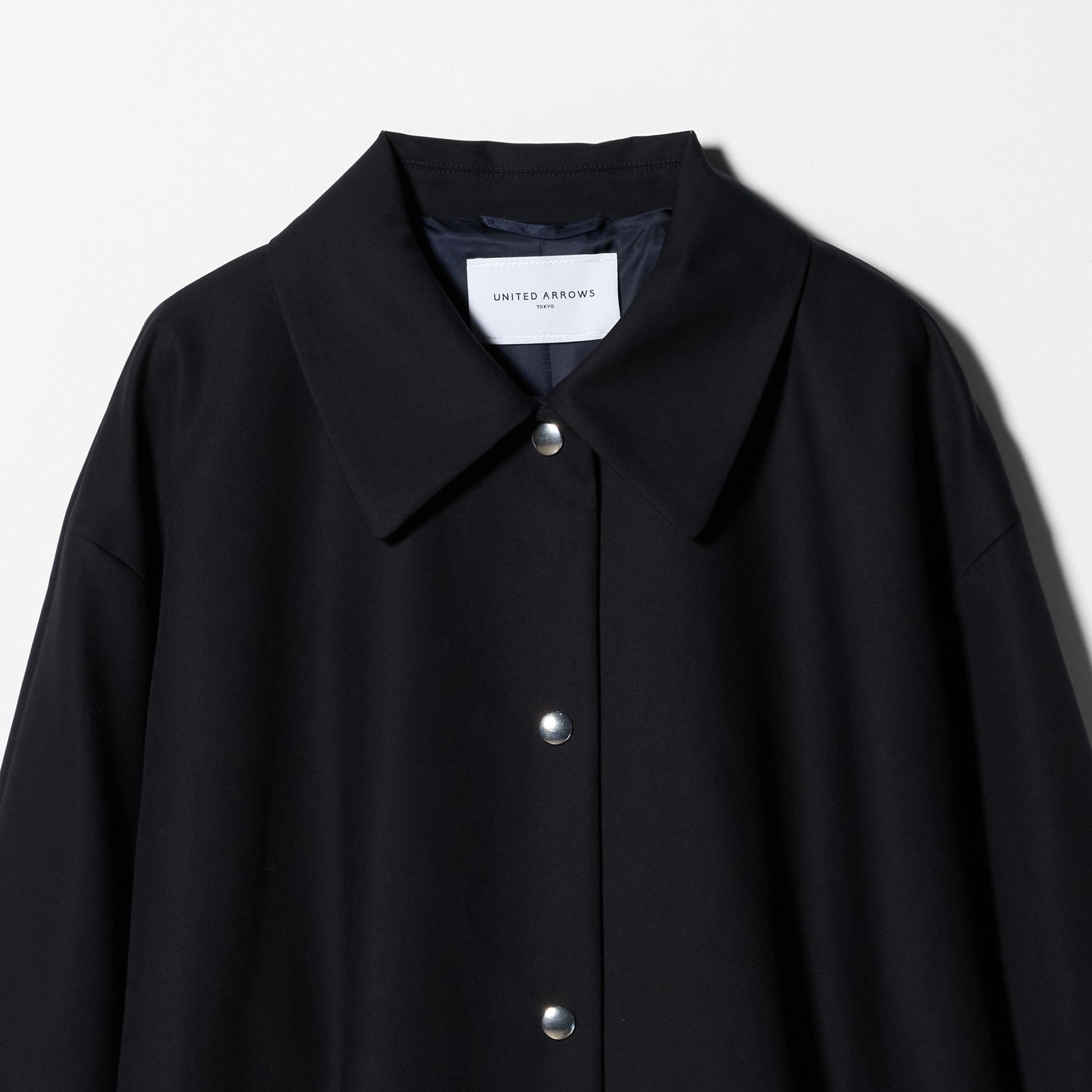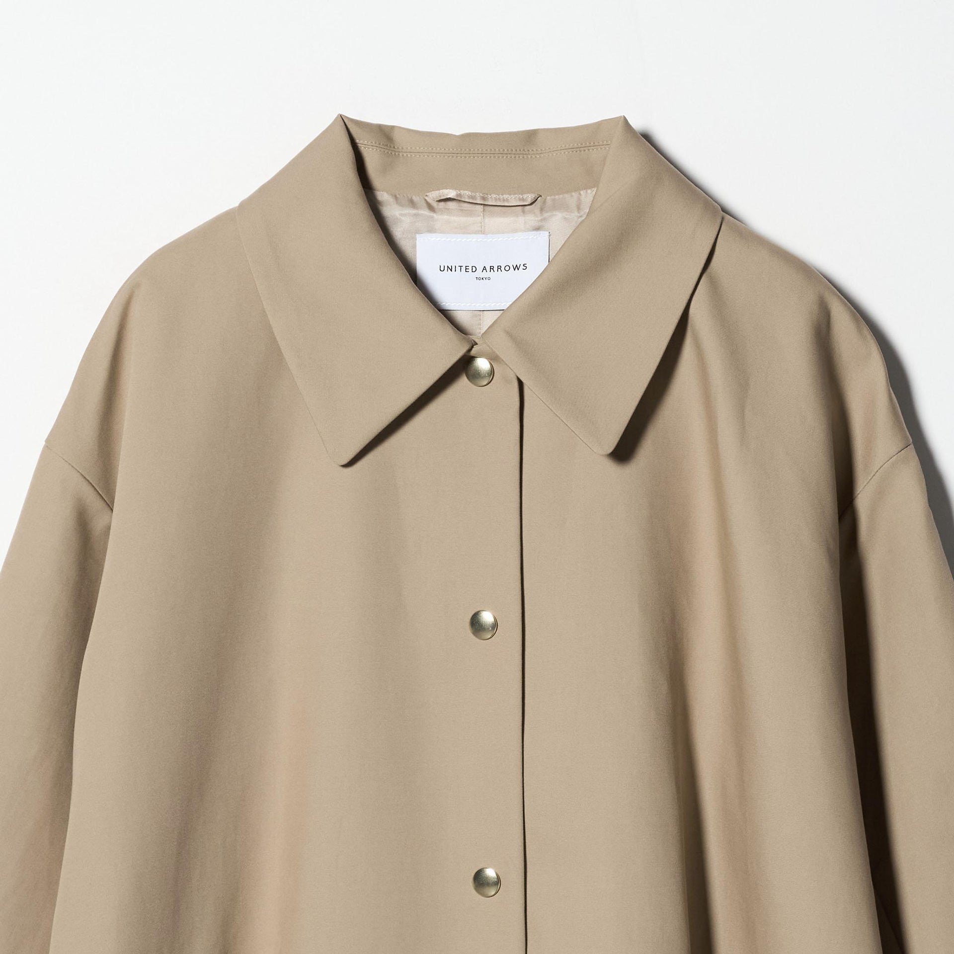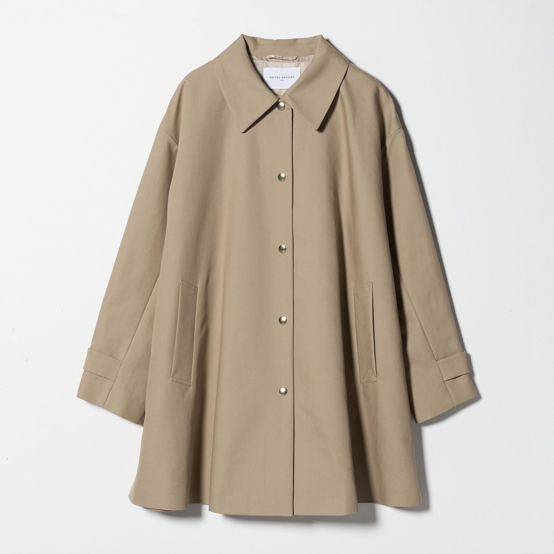 テントラインが印象的なステンカラーコート。