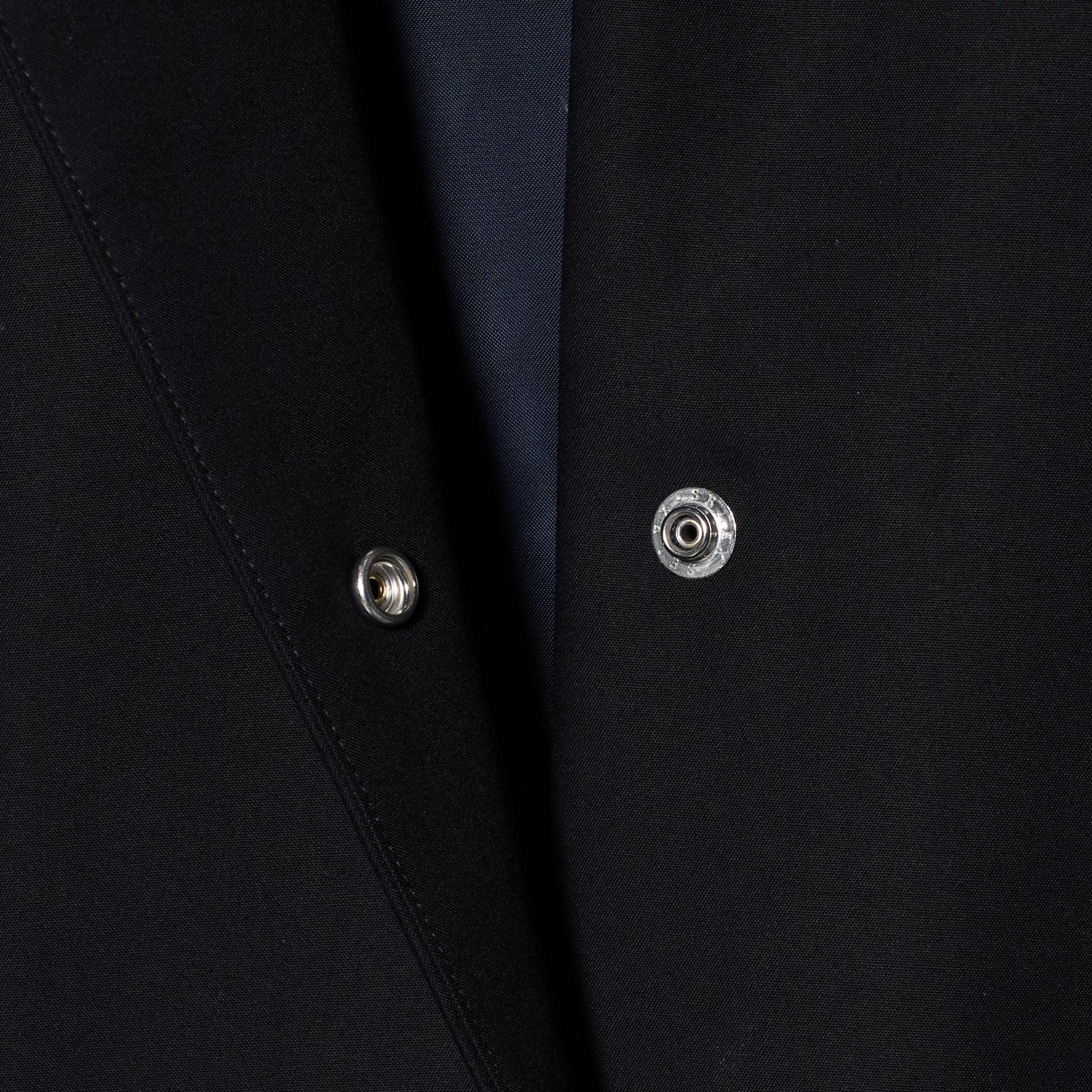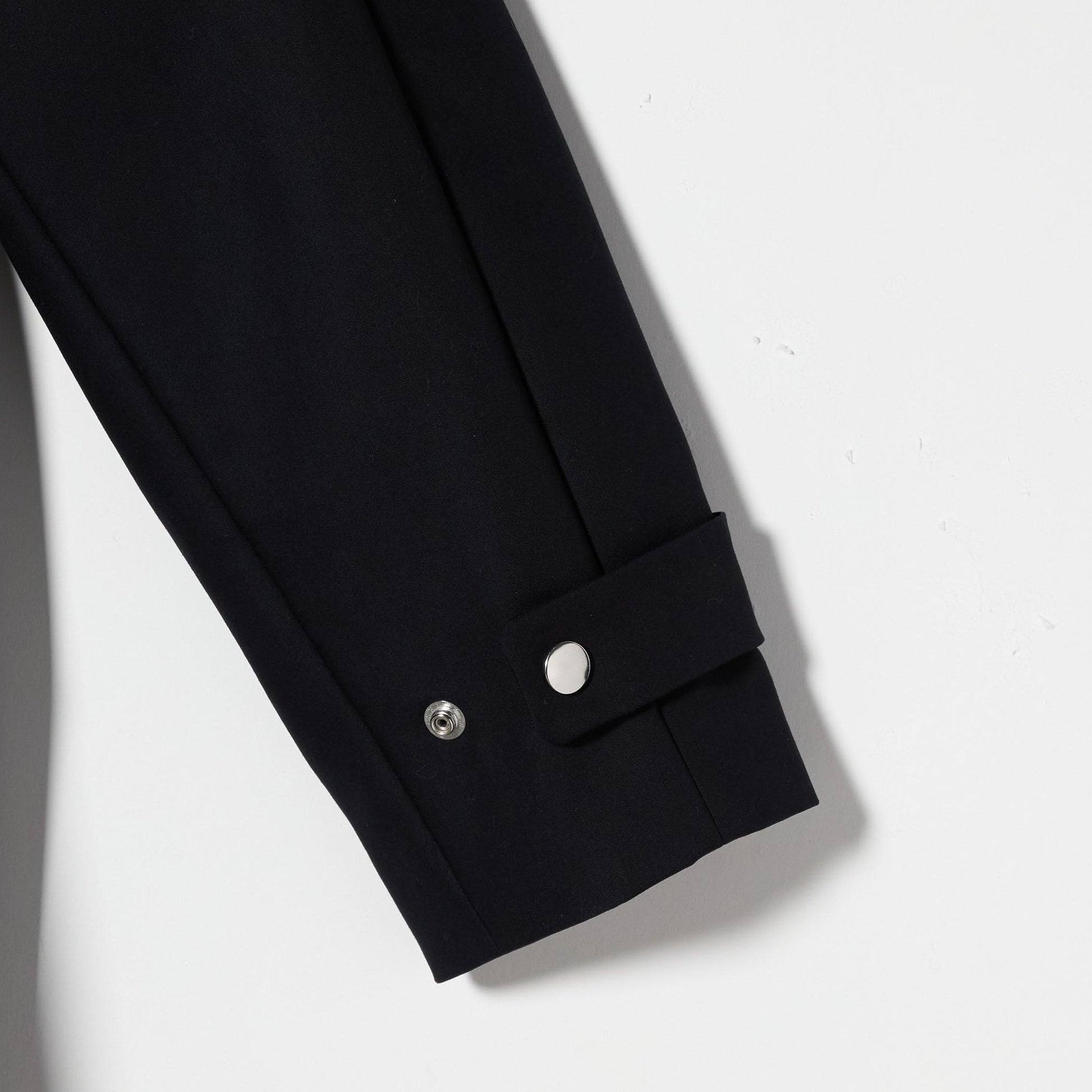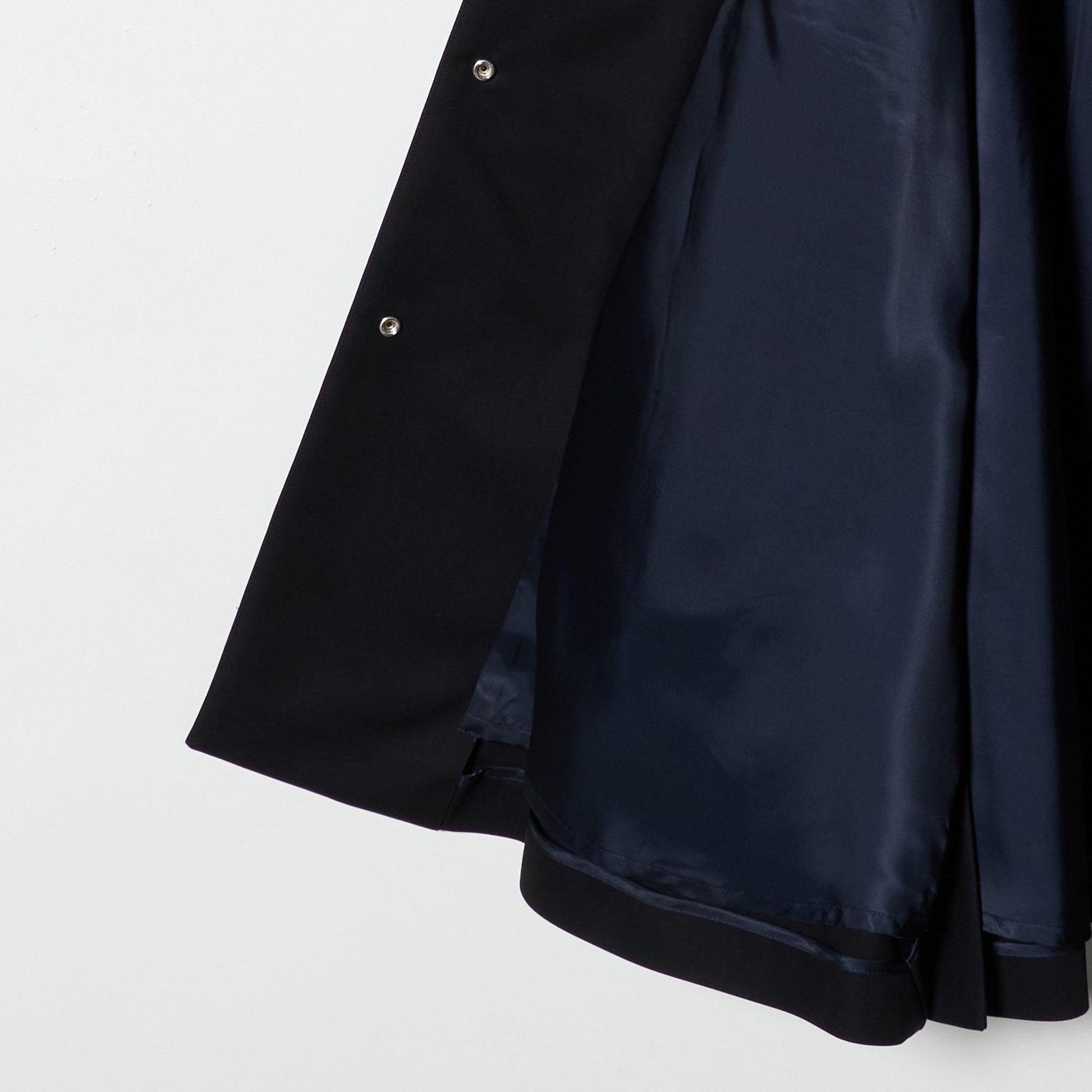 メタルスナップがアクセントになり、脇裾の隠しボタン付きベンツでシルエットのアレンジも楽しめます。