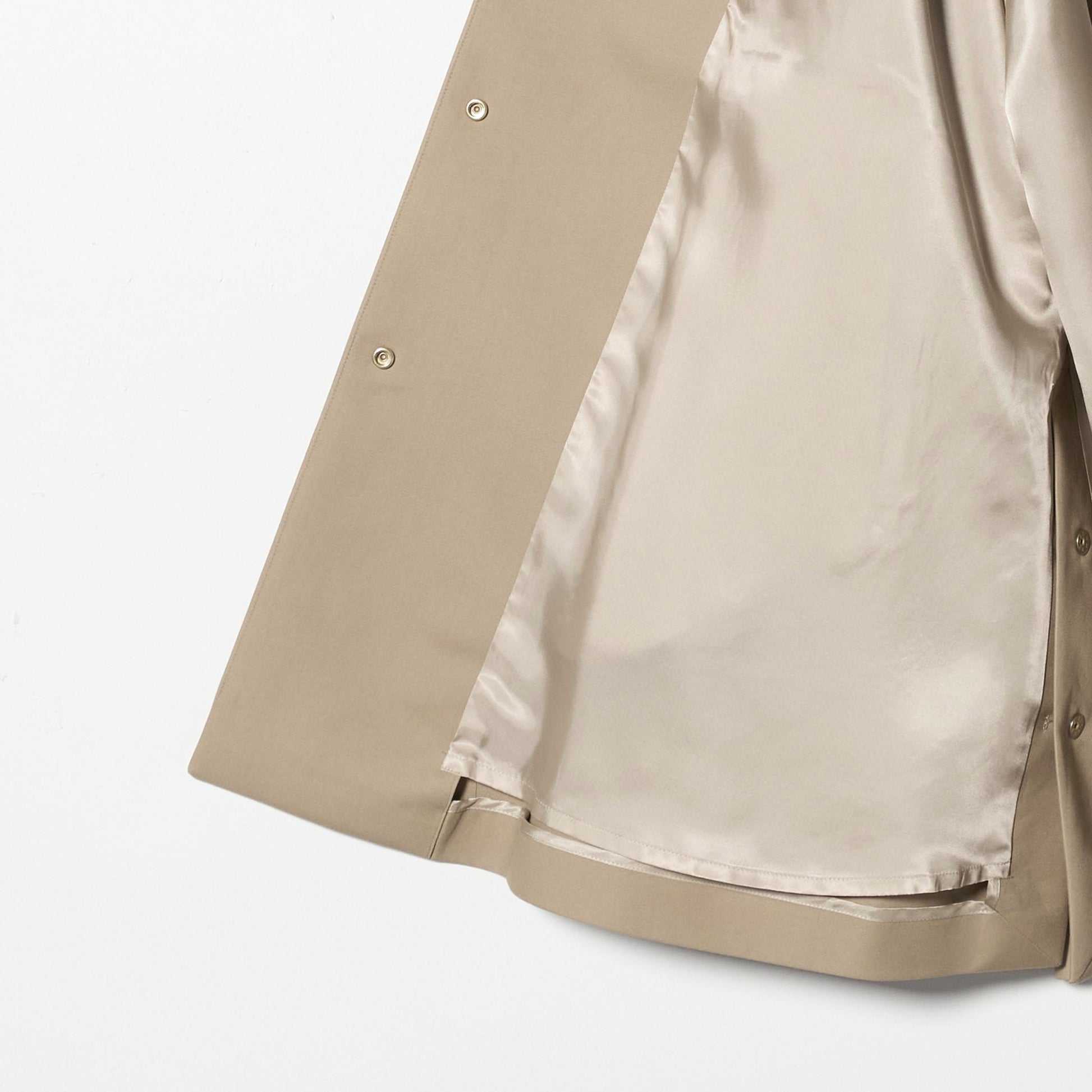 動きに合わせて表情が変わる、エレガントなステンカラーコート