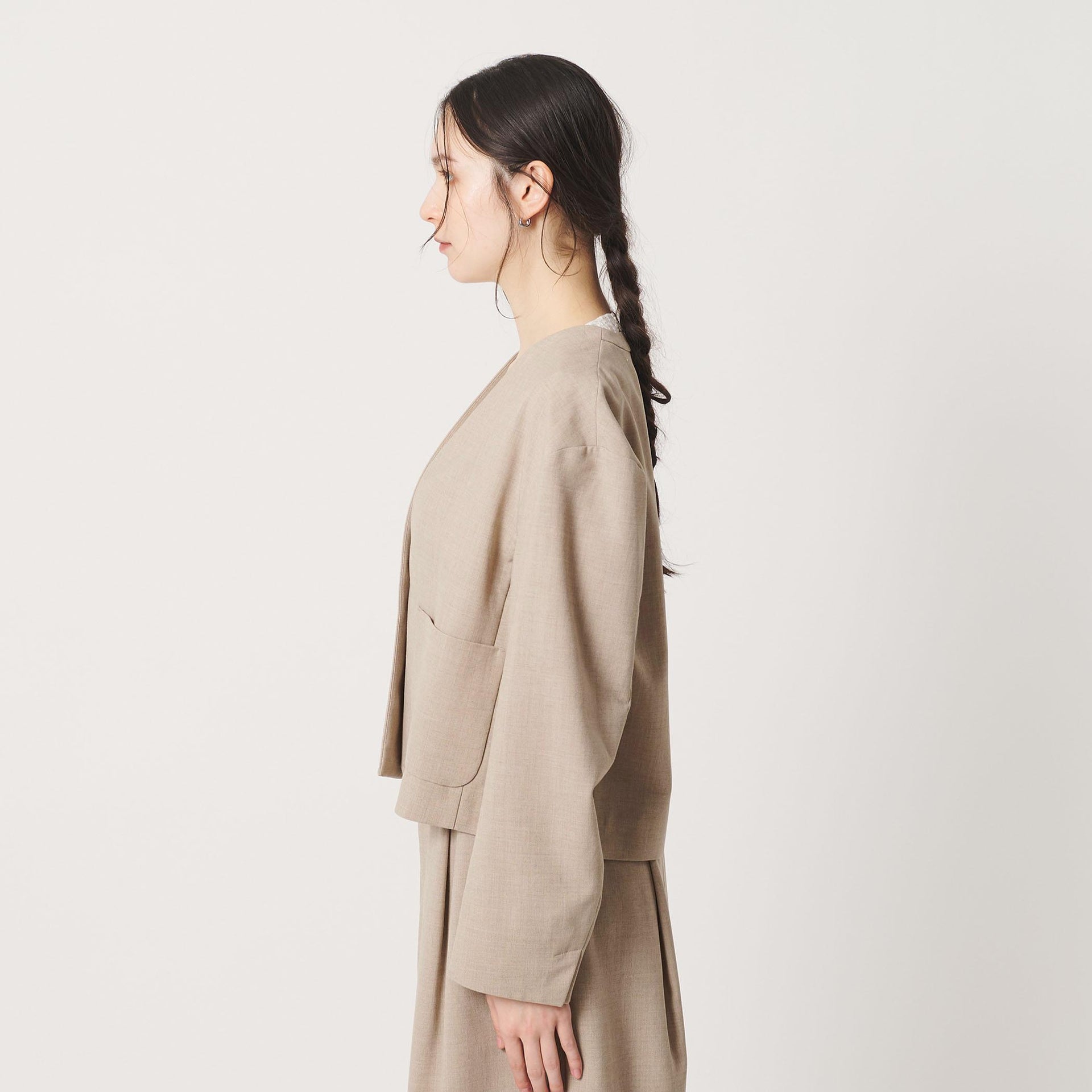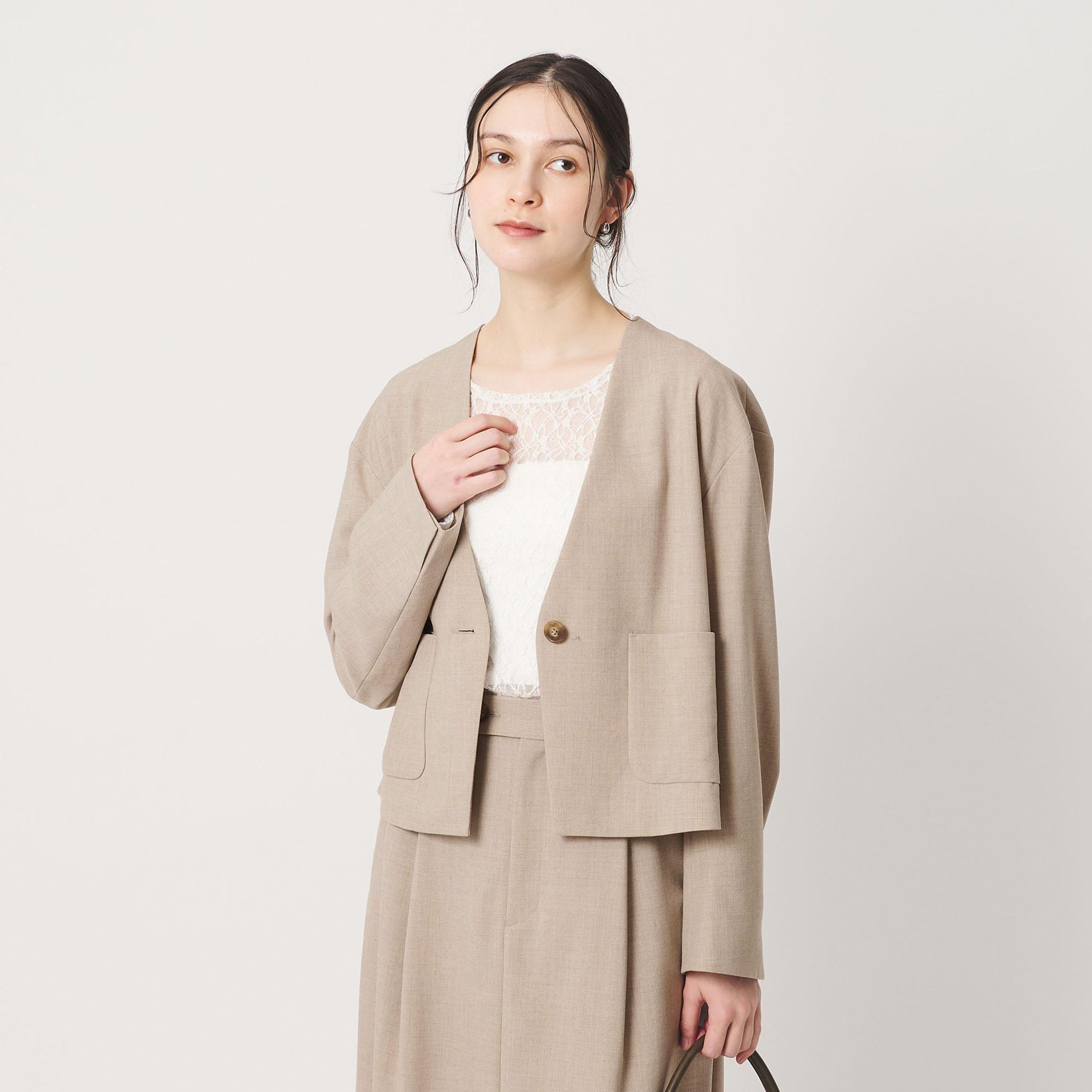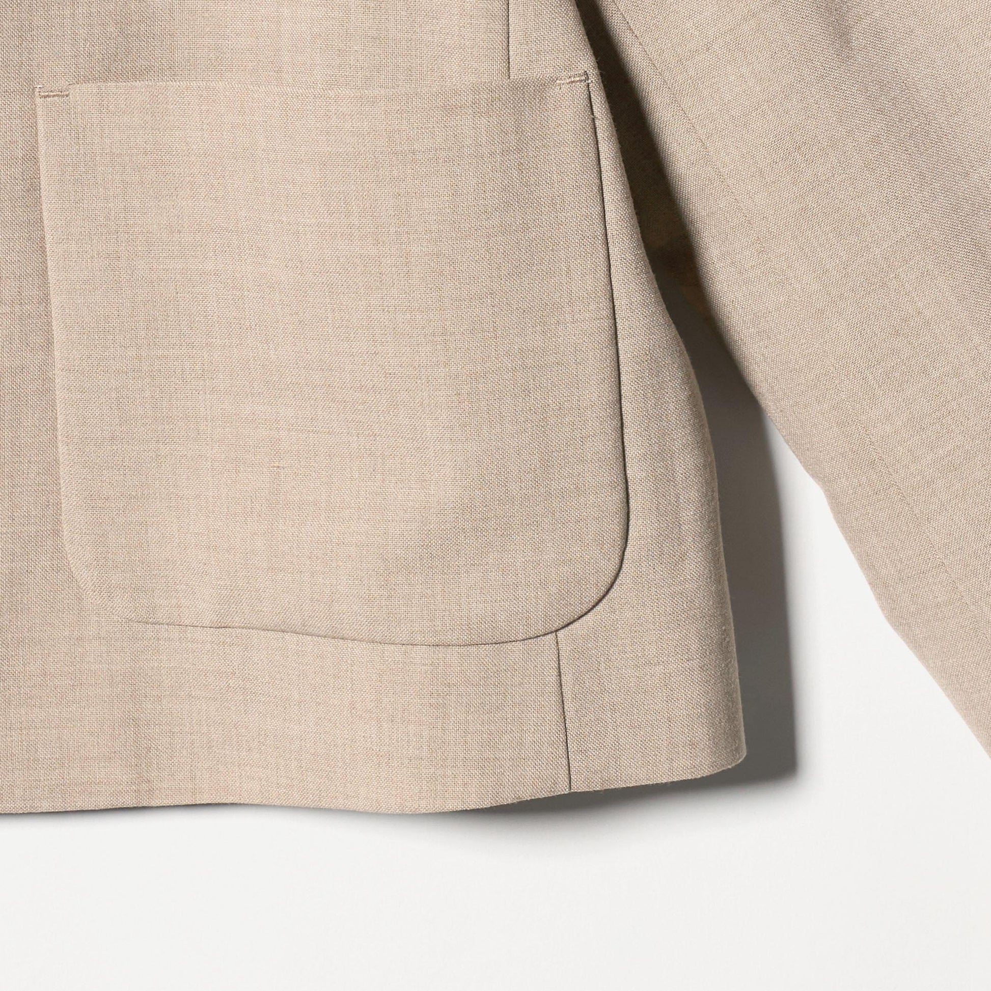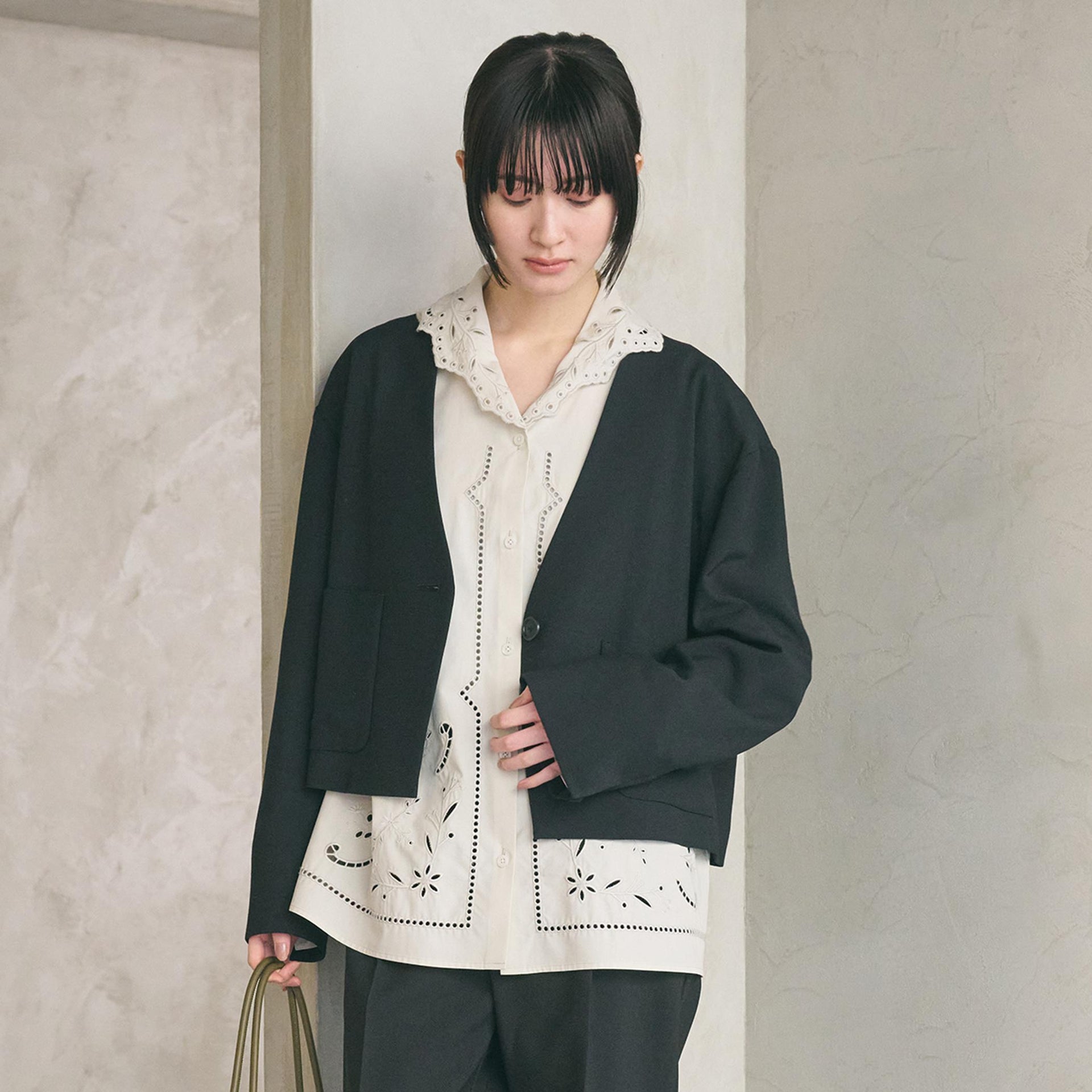 カラーレスのすっきりとしたデザインと裏地のない軽やかな仕立てで気軽に羽織れるジャケットをお作りしました。