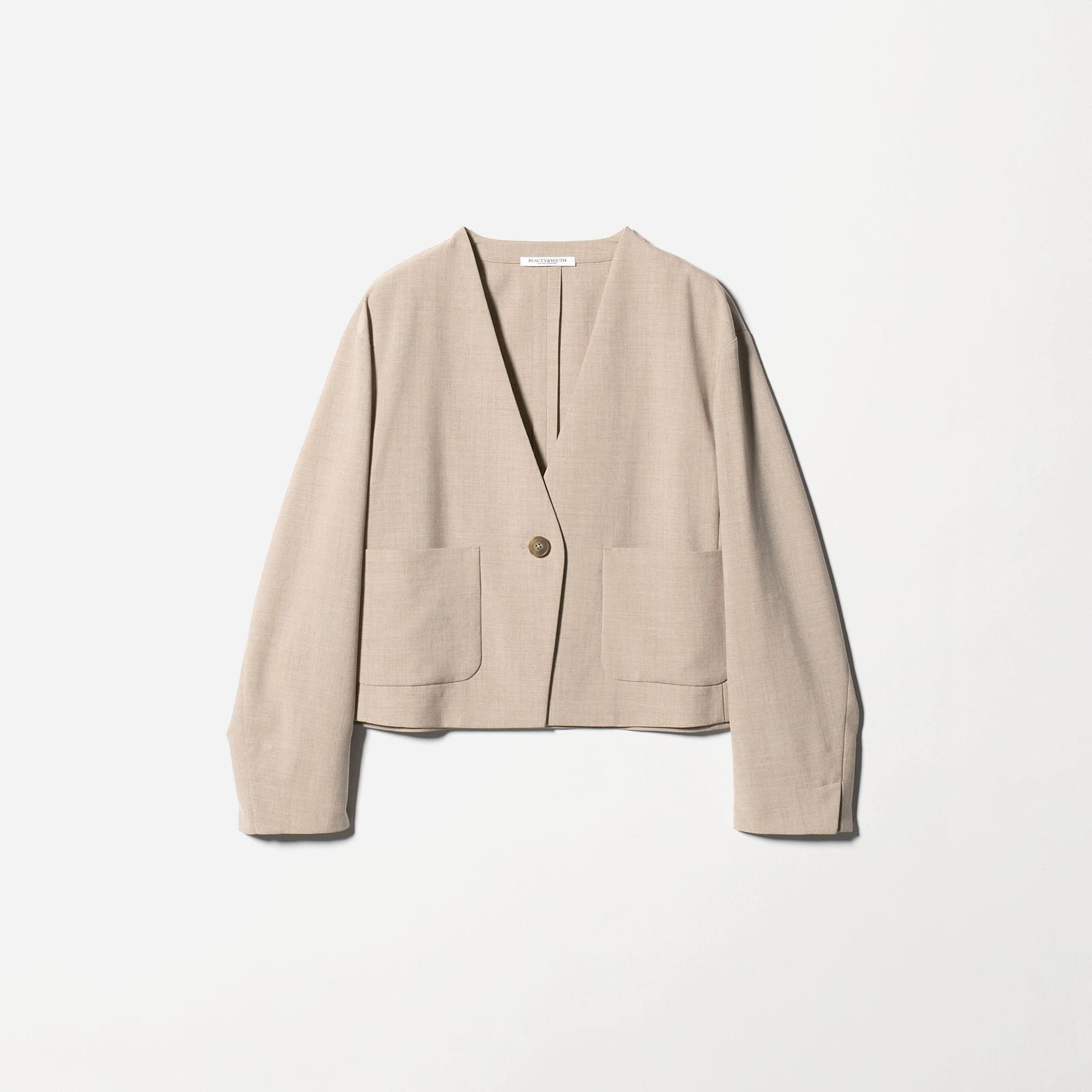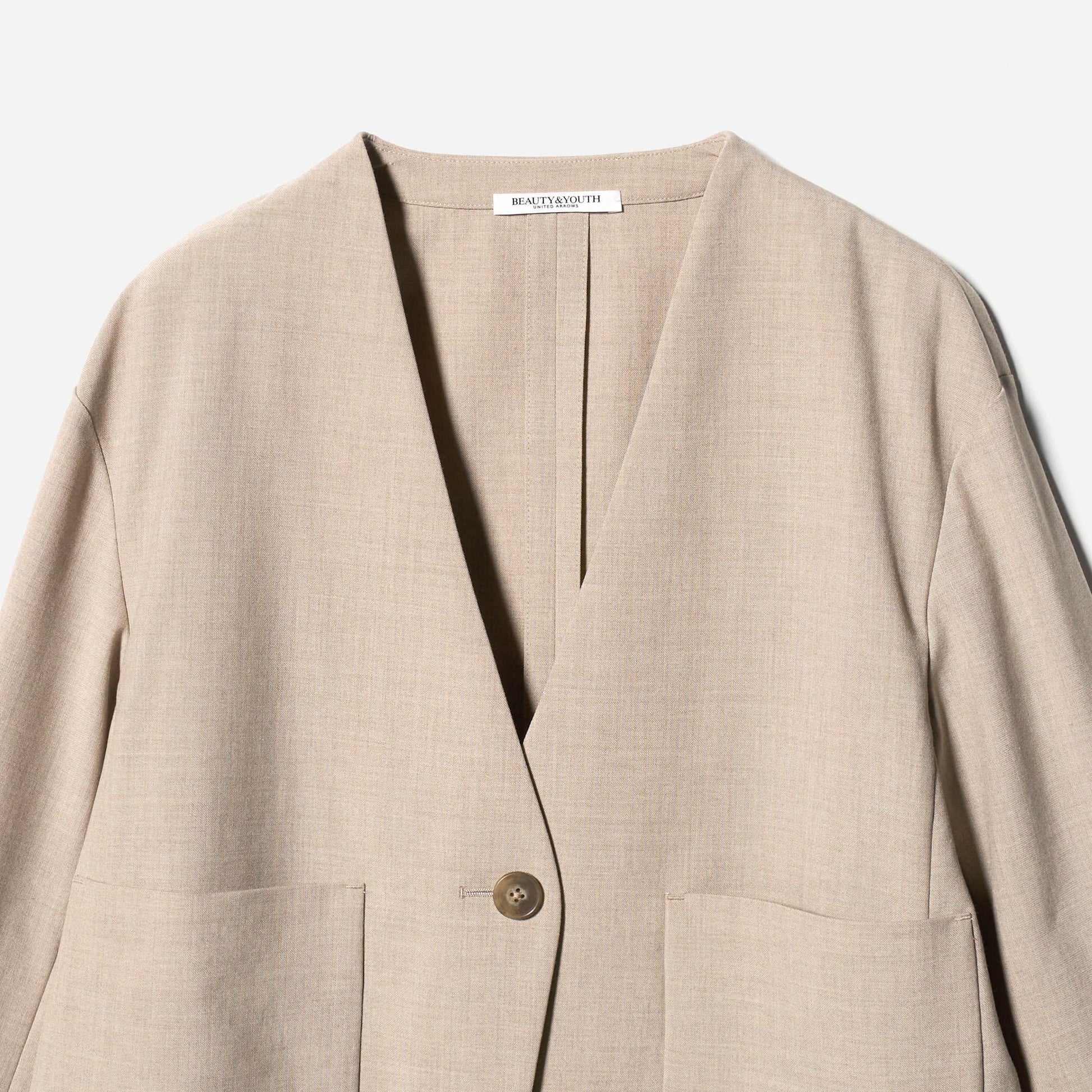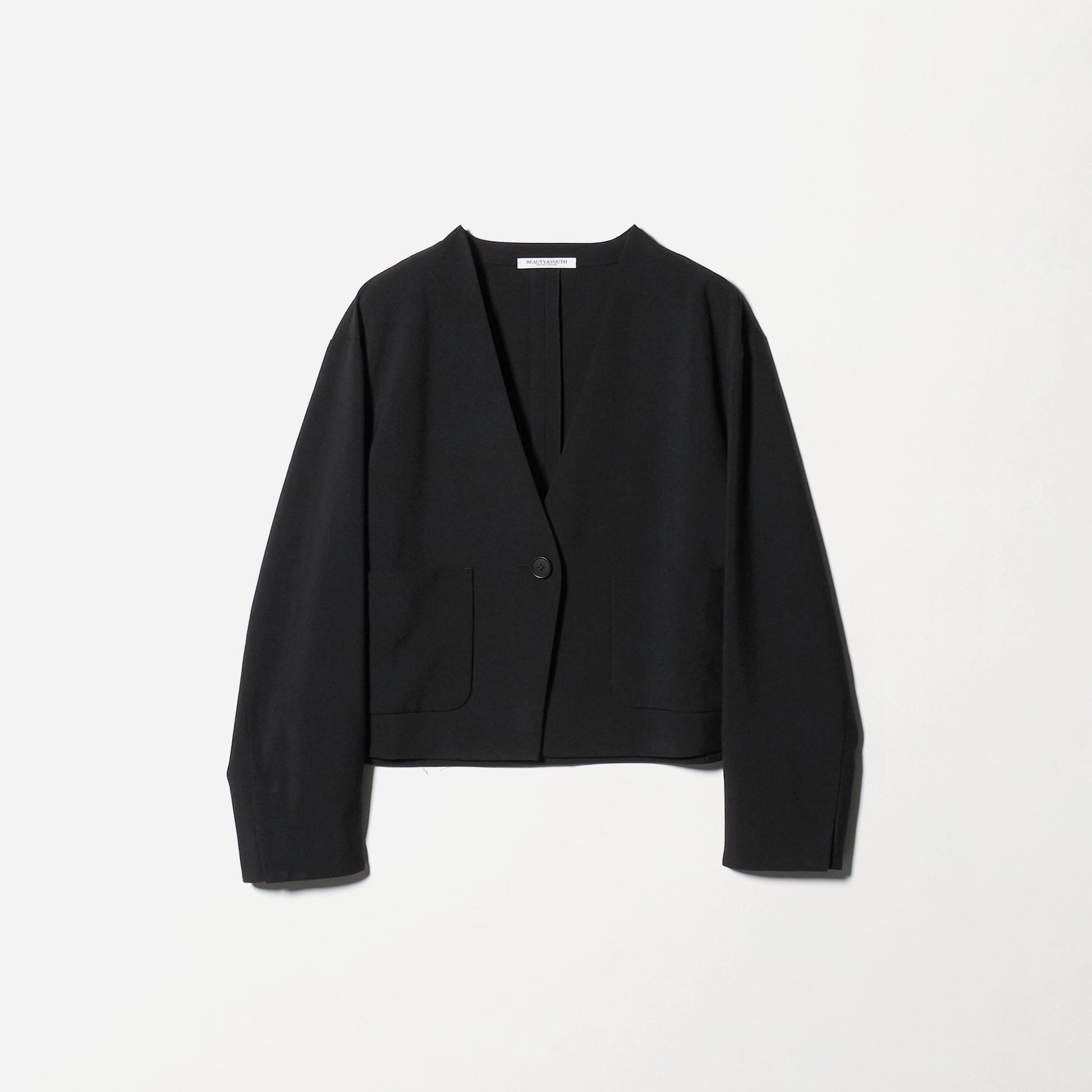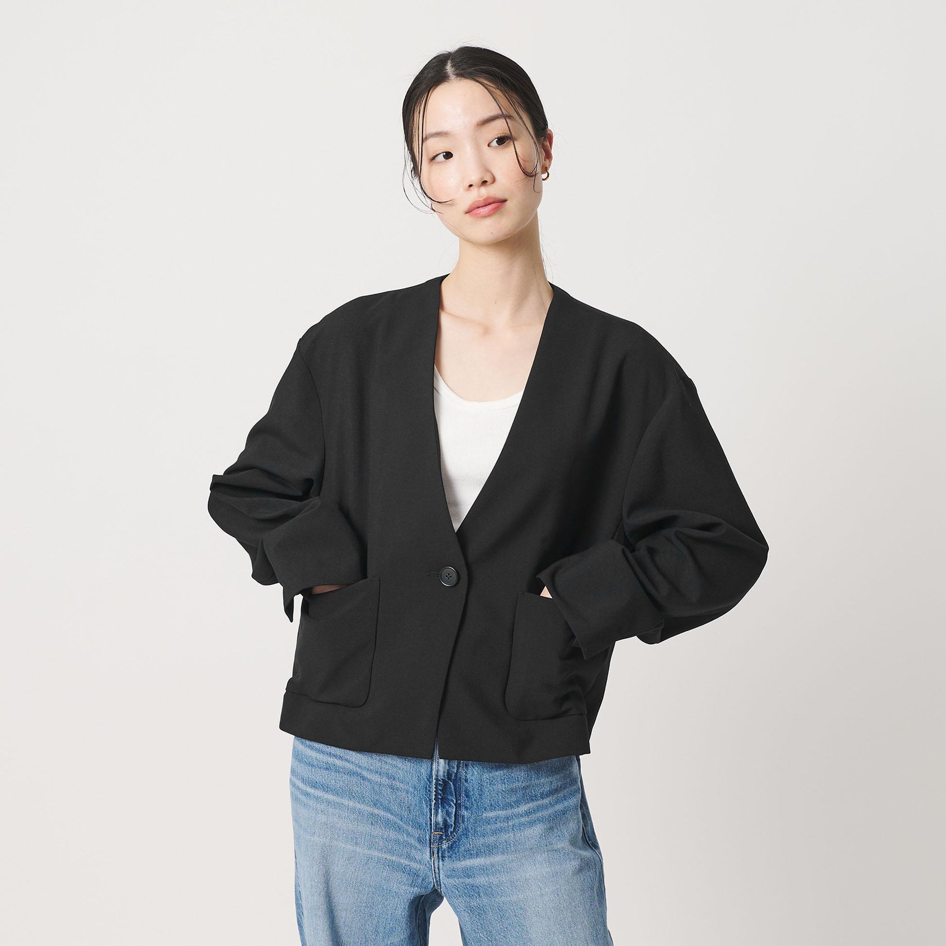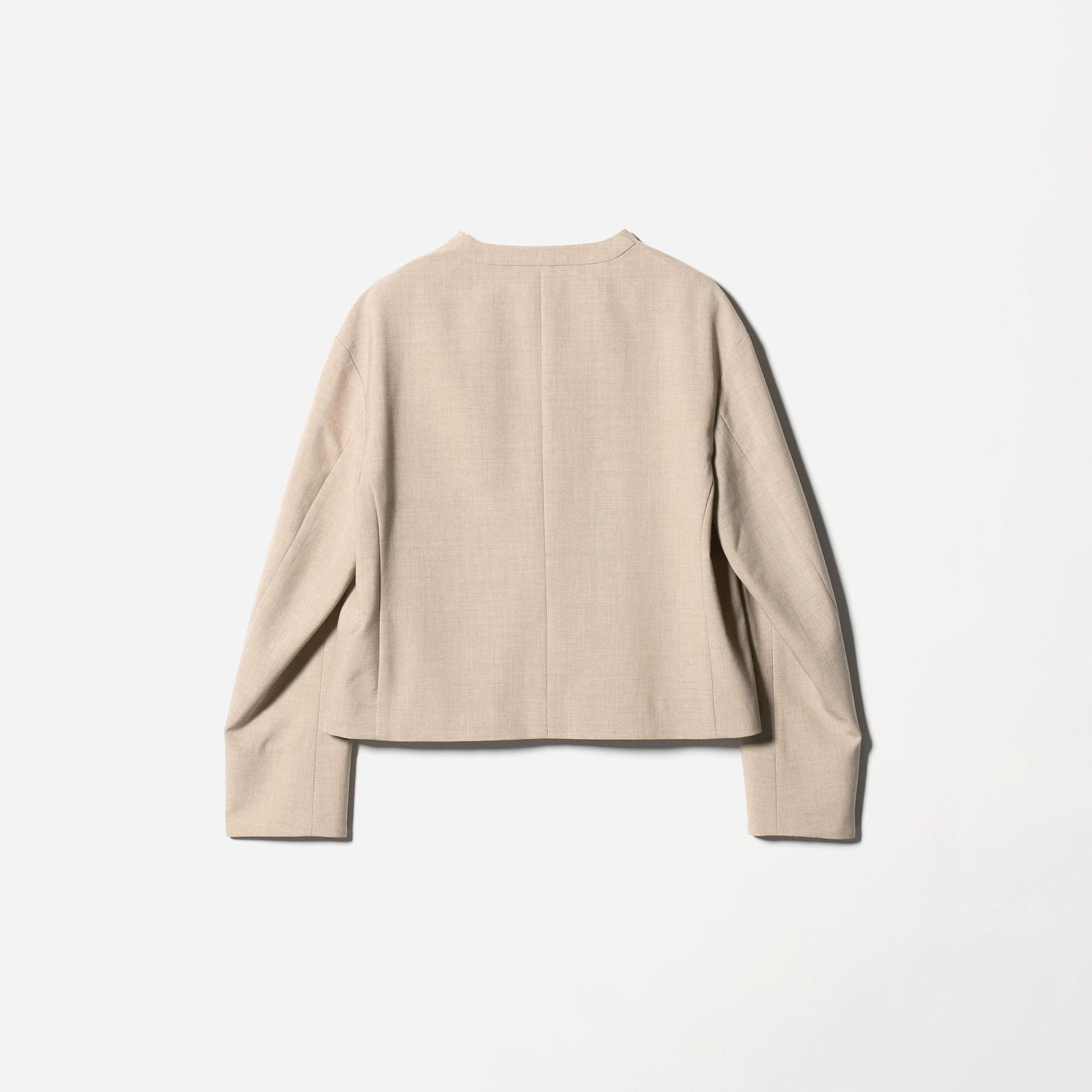 カラーレスのすっきりとしたデザインと裏地のない軽やかな仕立てで気軽に羽織れるジャケットをお作りしました。