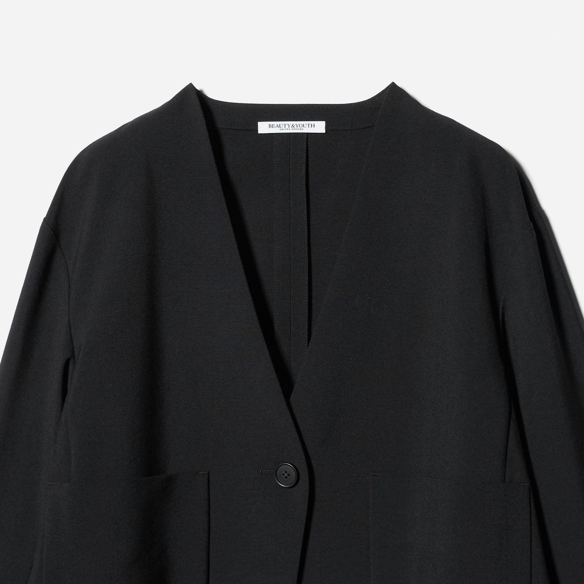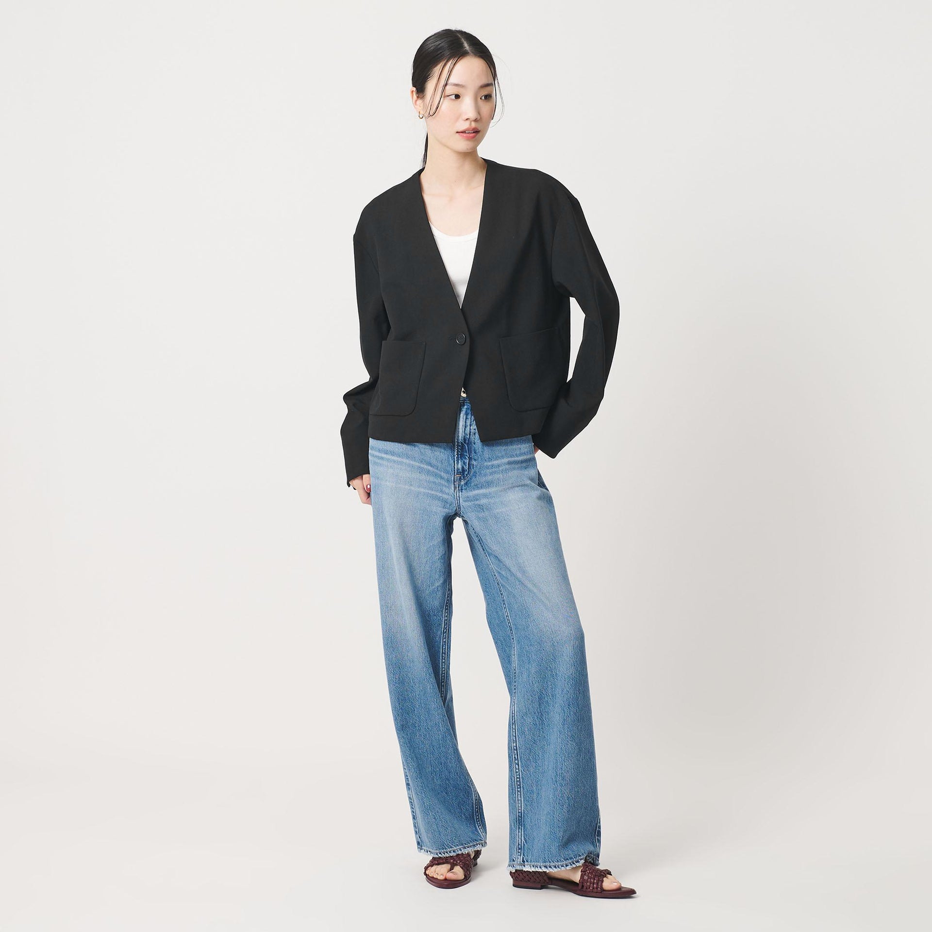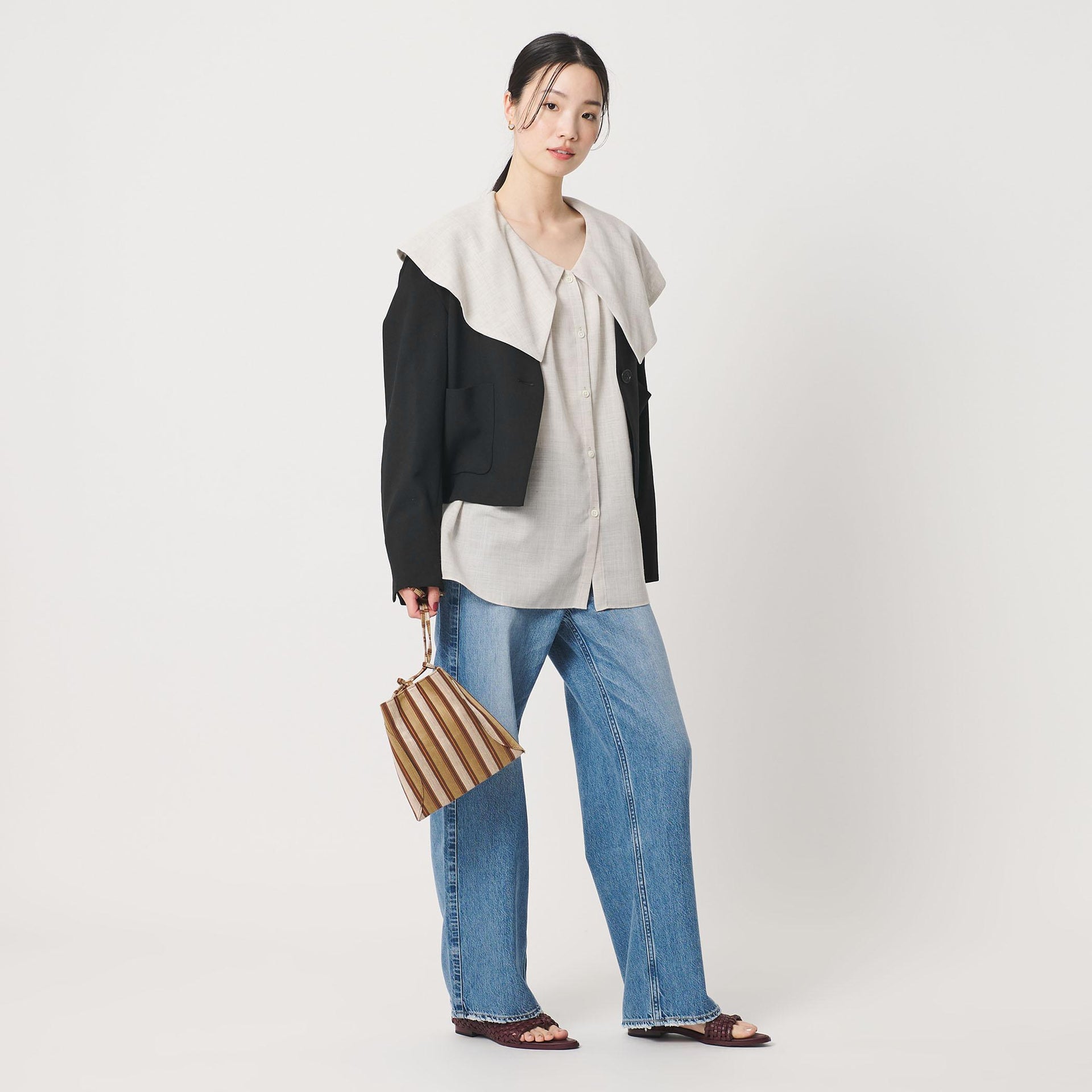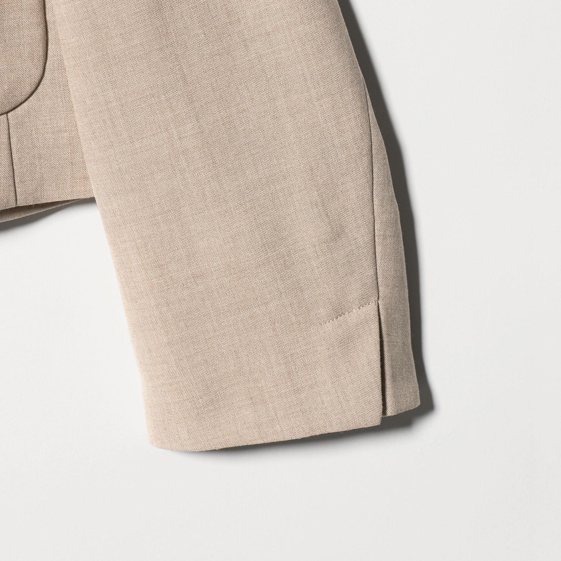 カラーレスのすっきりとしたデザインと裏地のない軽やかな仕立てで気軽に羽織れるジャケットをお作りしました。