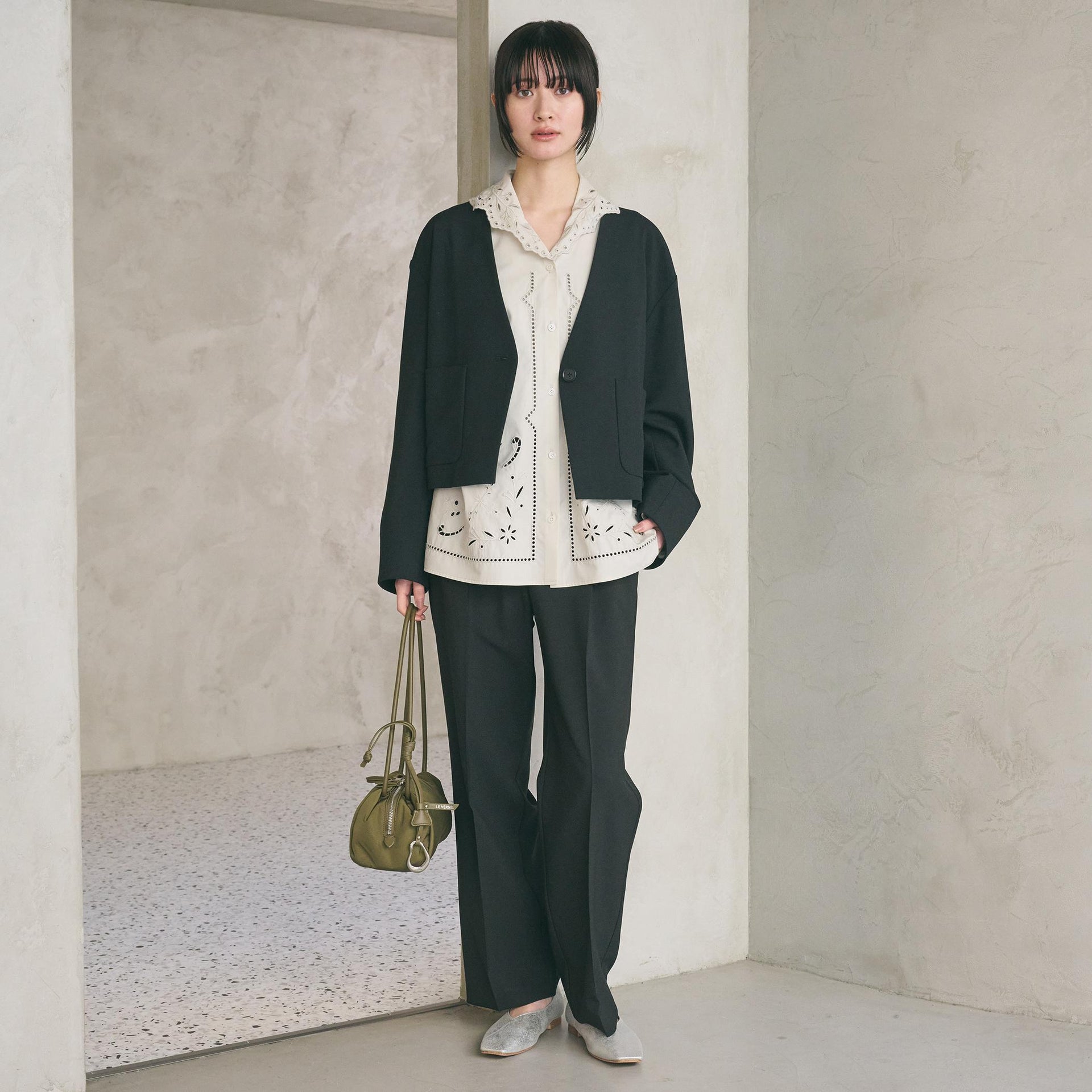 オンオフ着やすいスマートな佇まいと気温差に対応しやすいジャケットは、ワードローブに重宝するアイテムです。