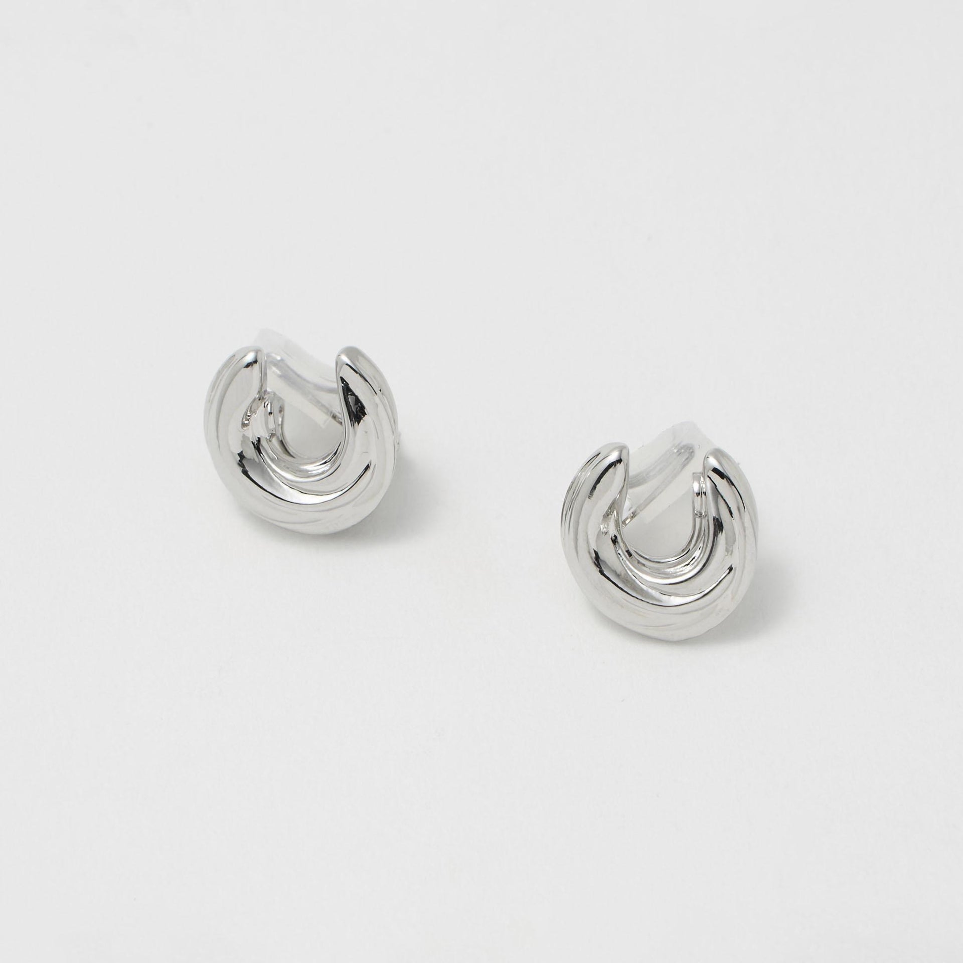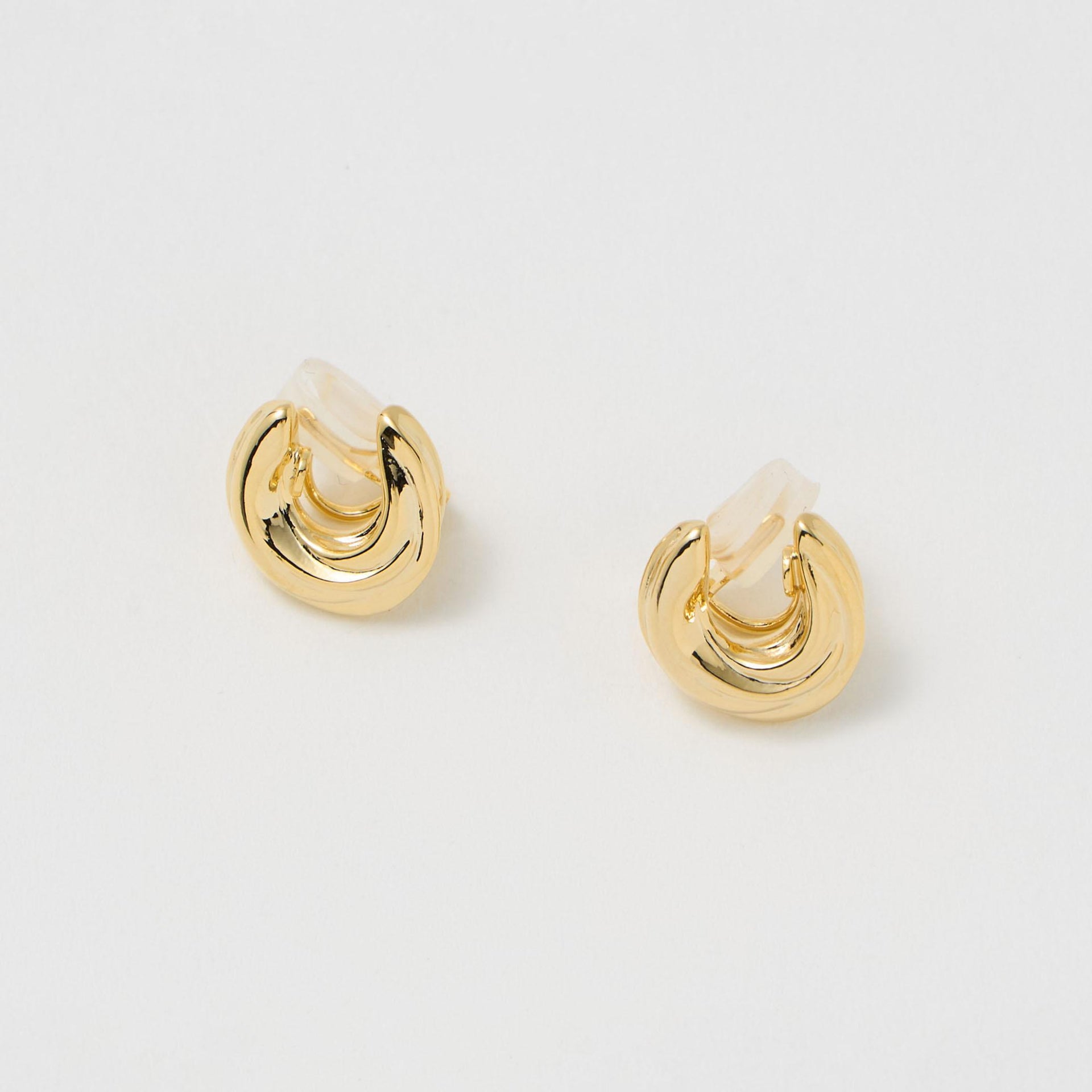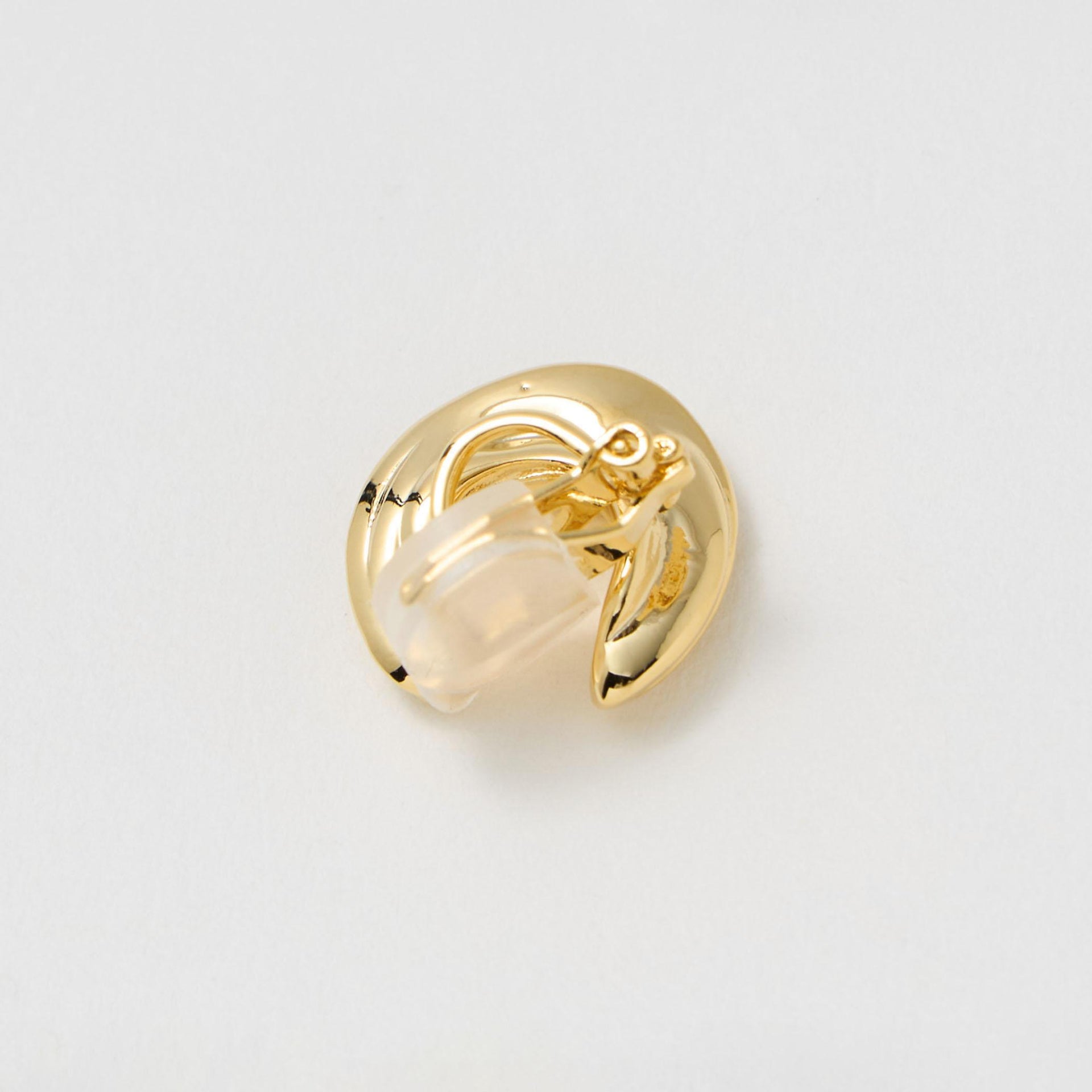 小ぶりのCシェイプに、彫刻を施したイヤリング。