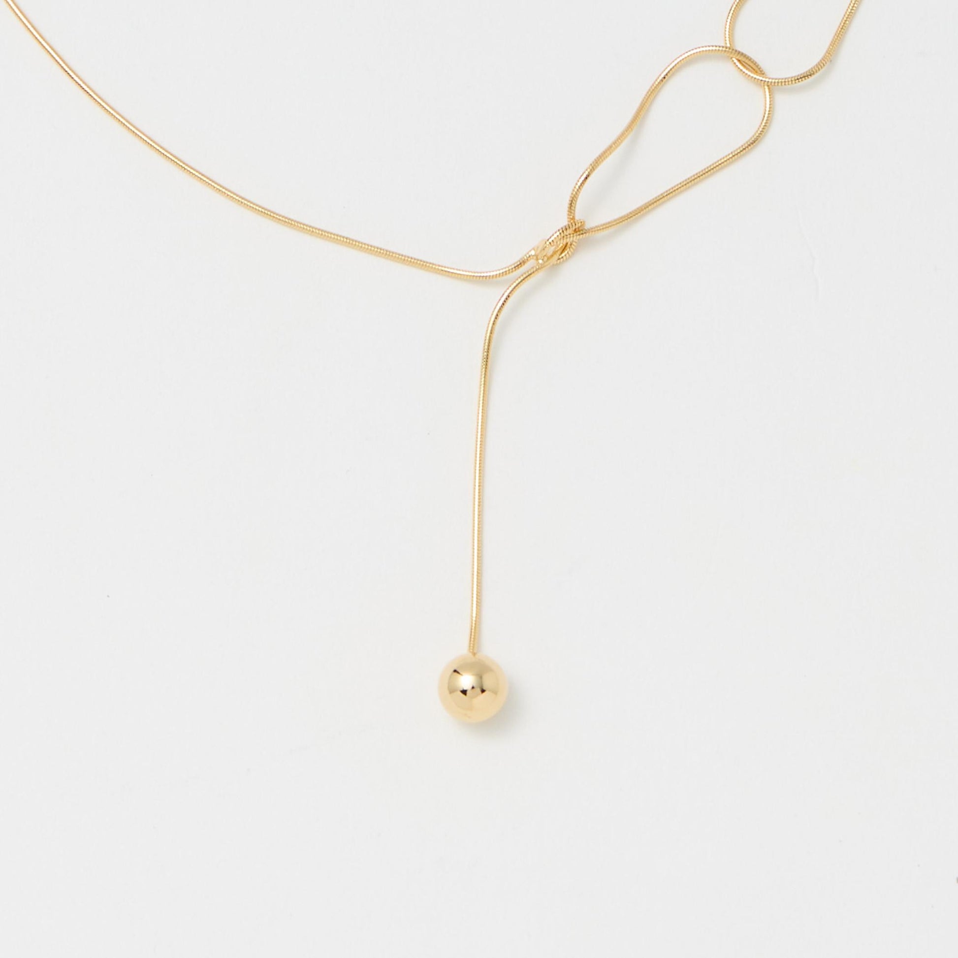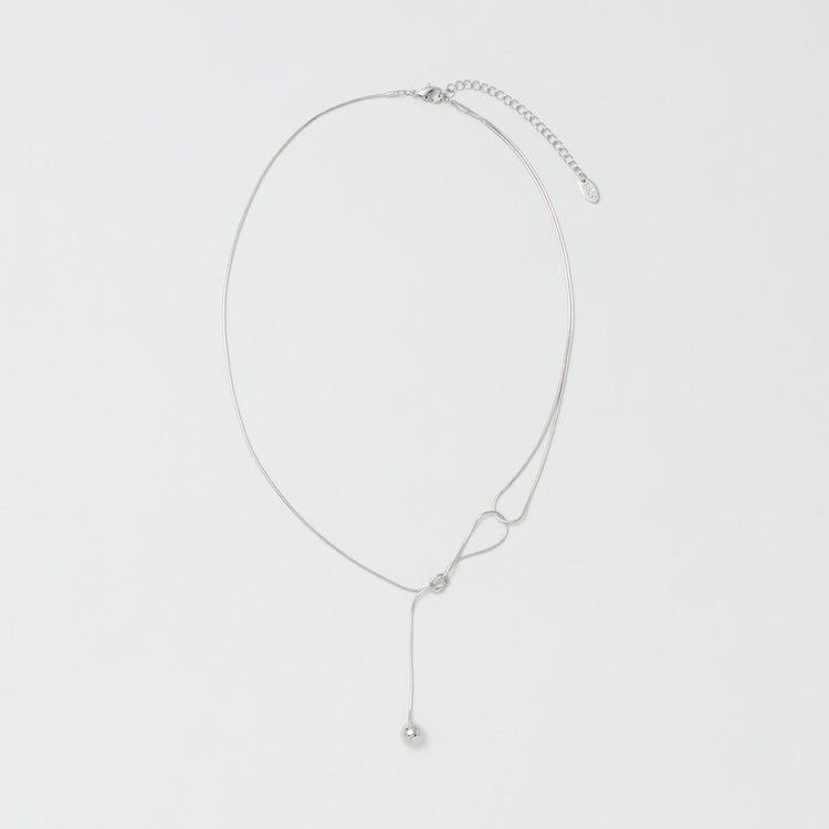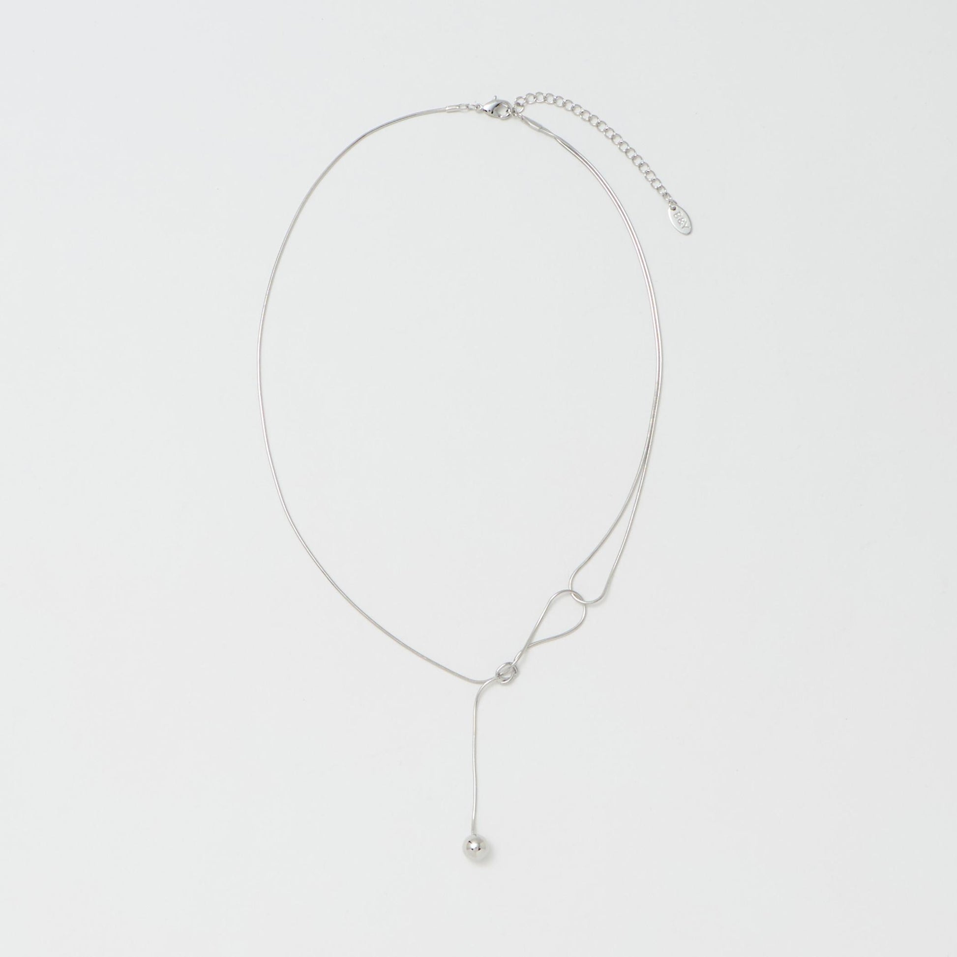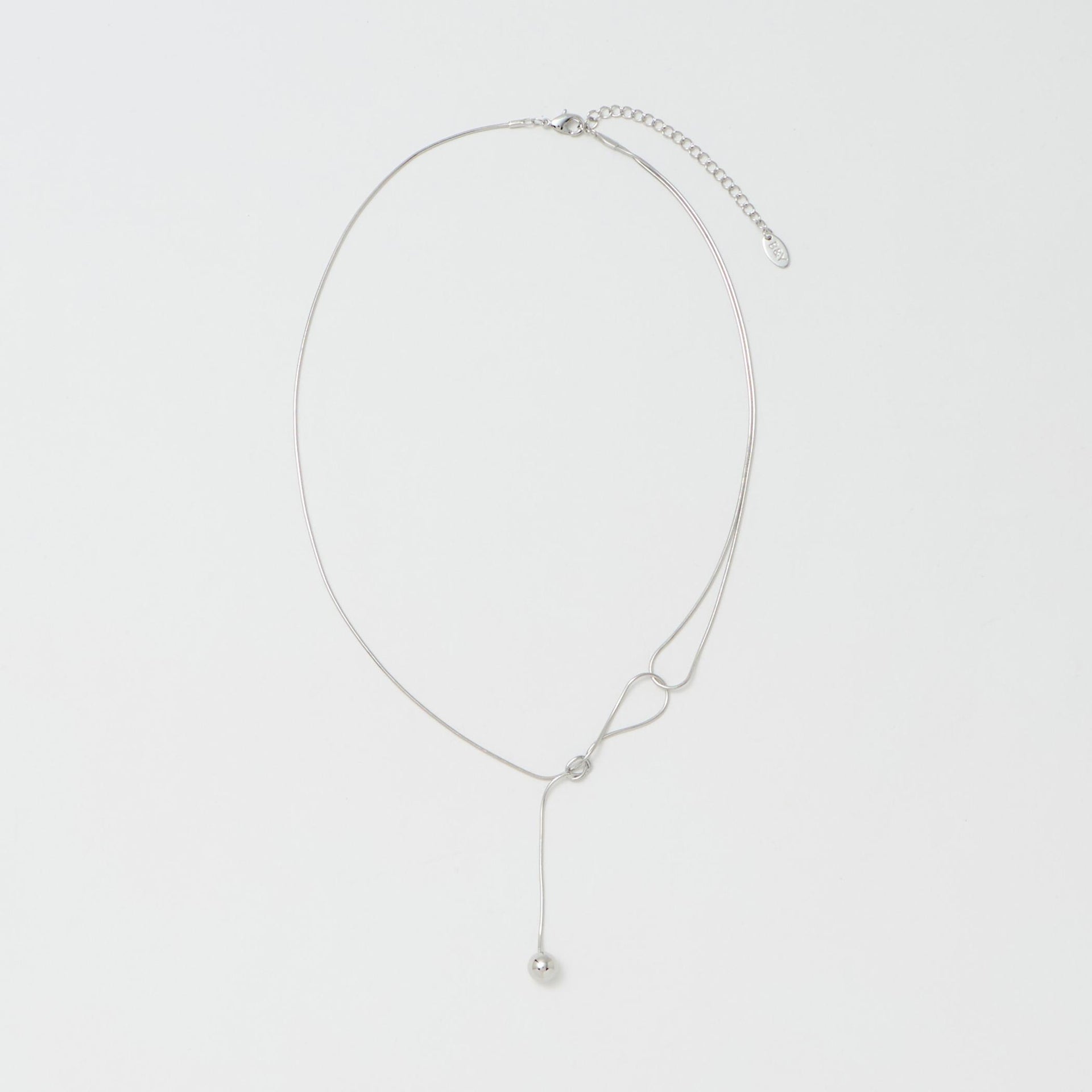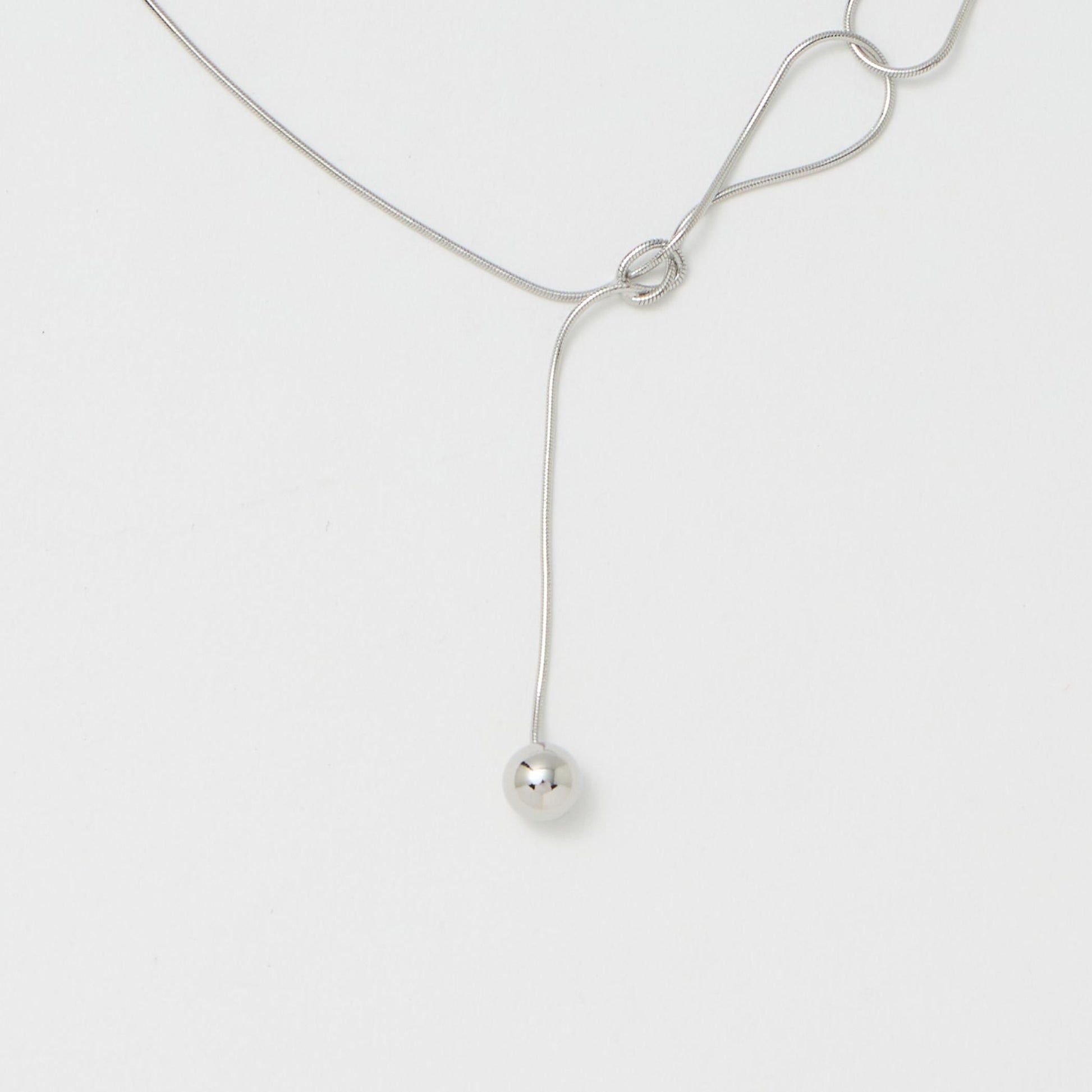 細いチェーンにひねりと結び目(ノット)のディテールを加えたネックレス。