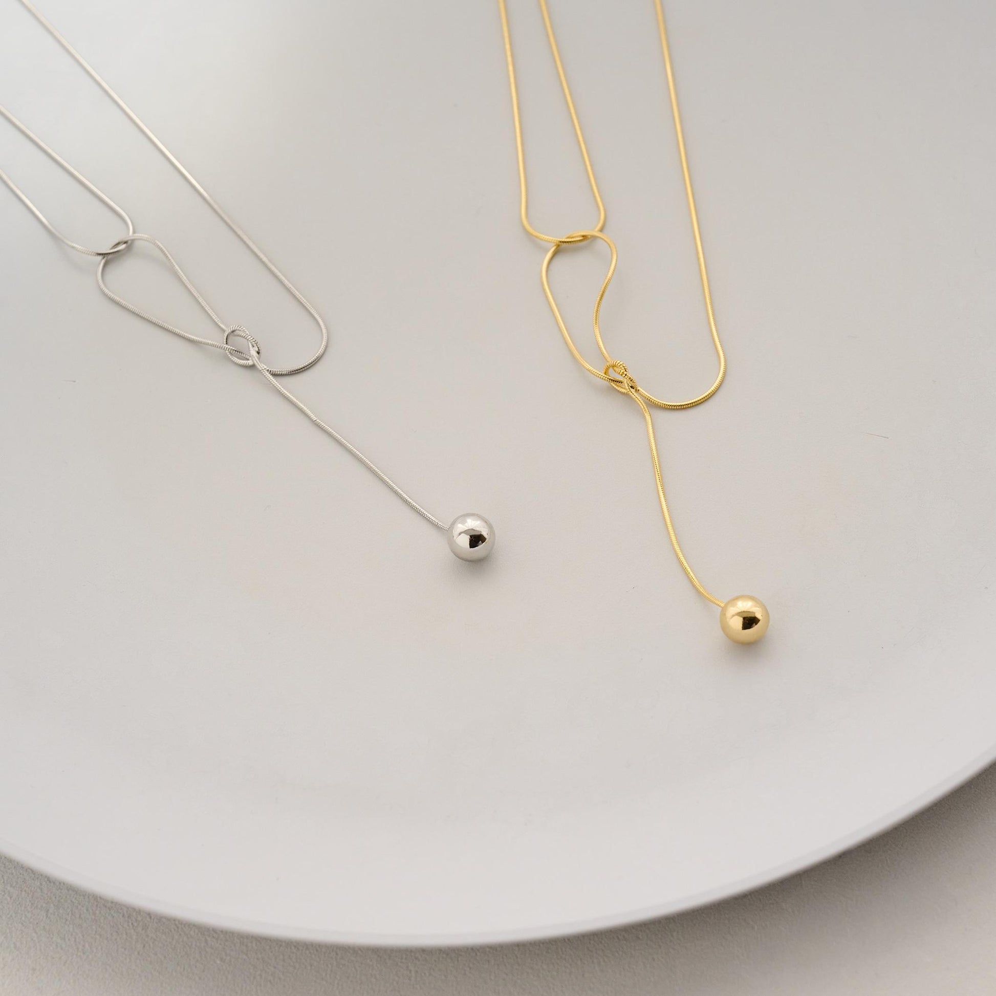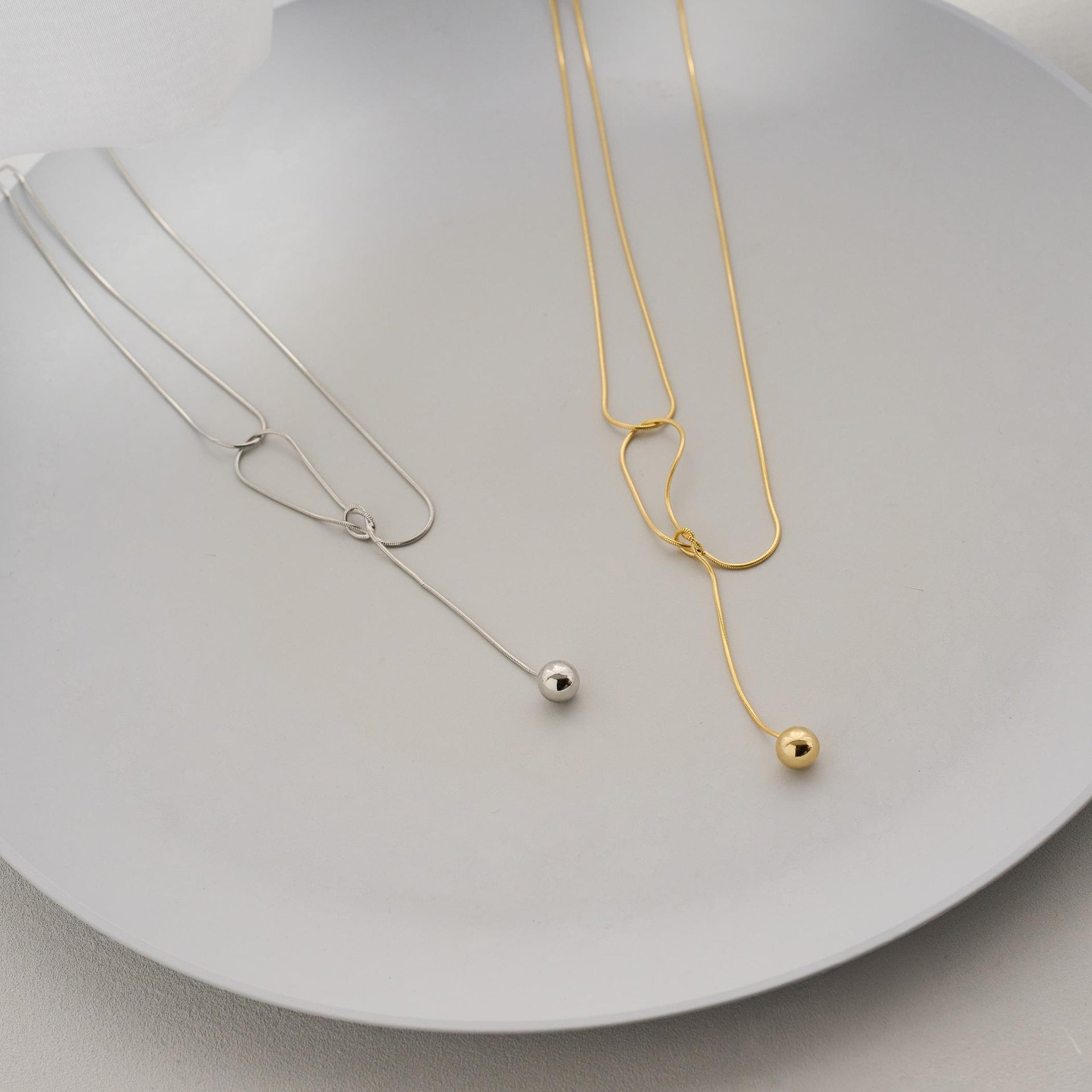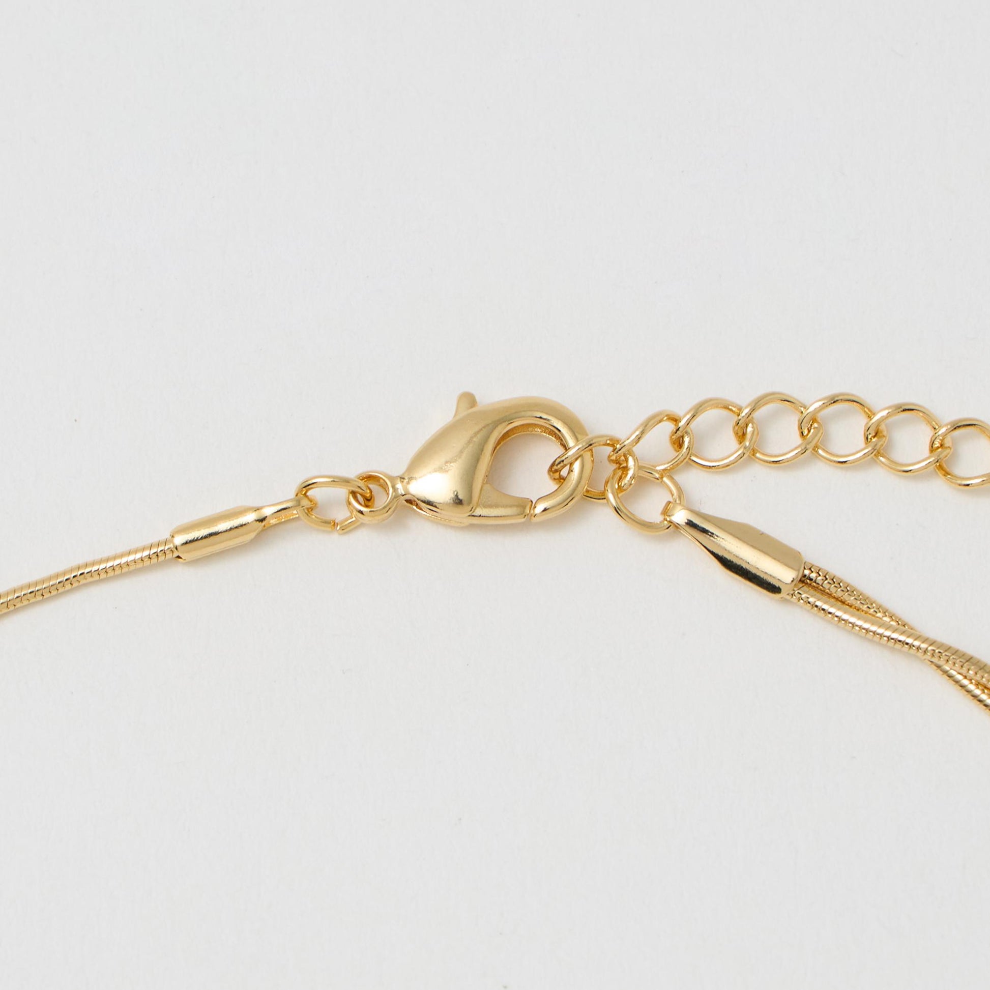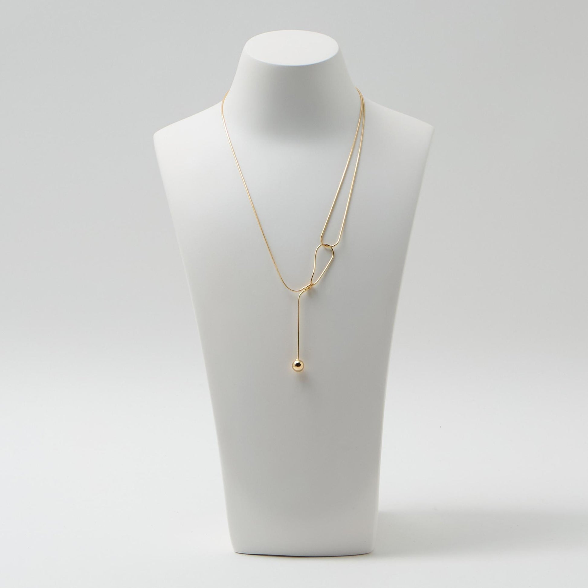 細いチェーンにひねりと結び目(ノット)のディテールを加えたネックレス。