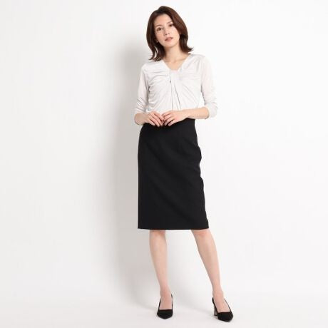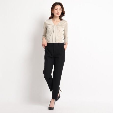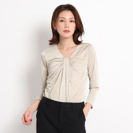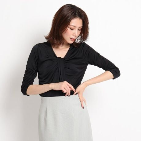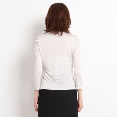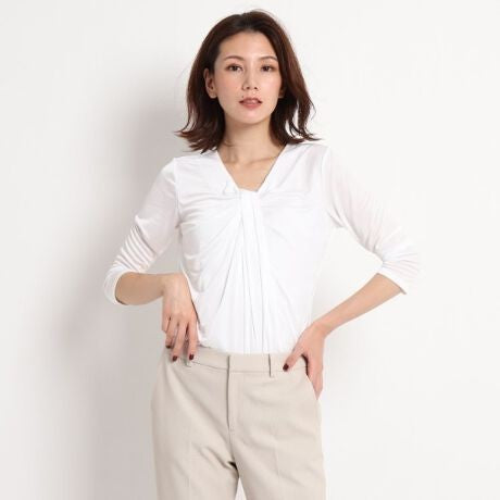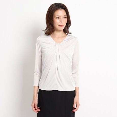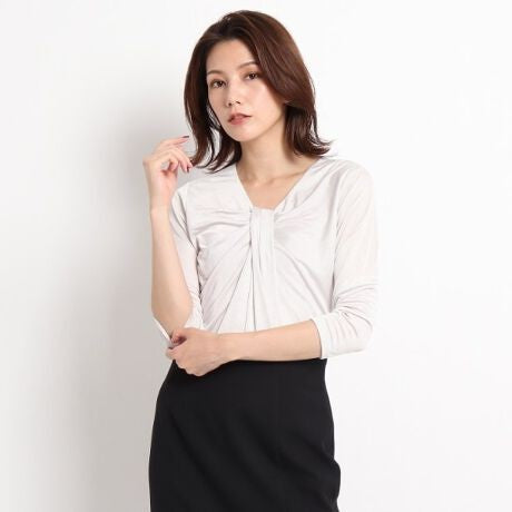 襟元のデザインはアクセサリーいらずの華やかさがあるカットソー。