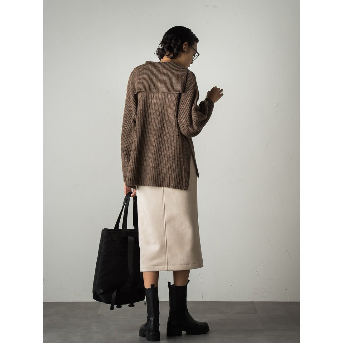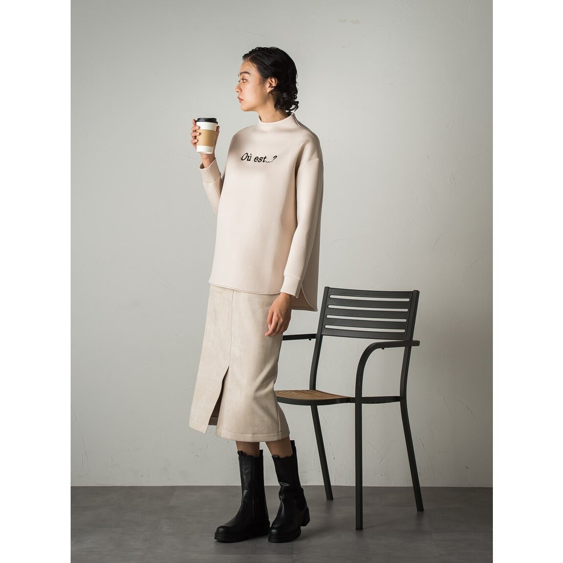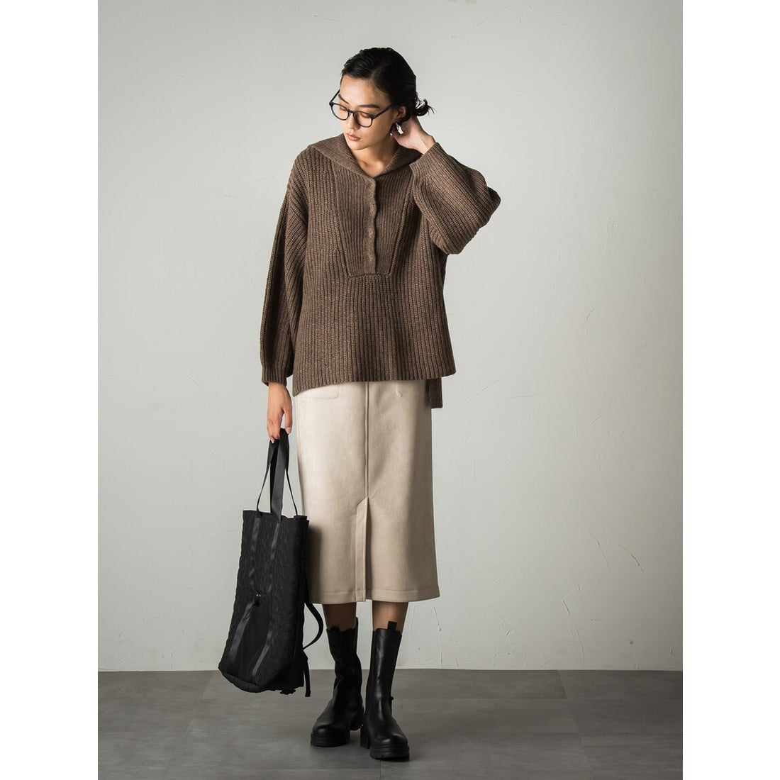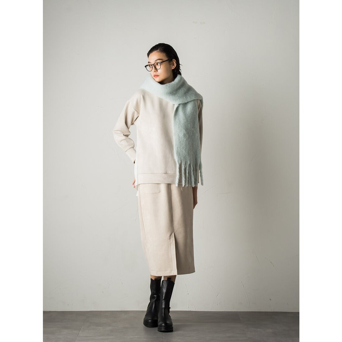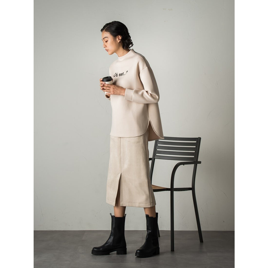秋らしいスウェードタッチの素材を使用したストレートスカート。