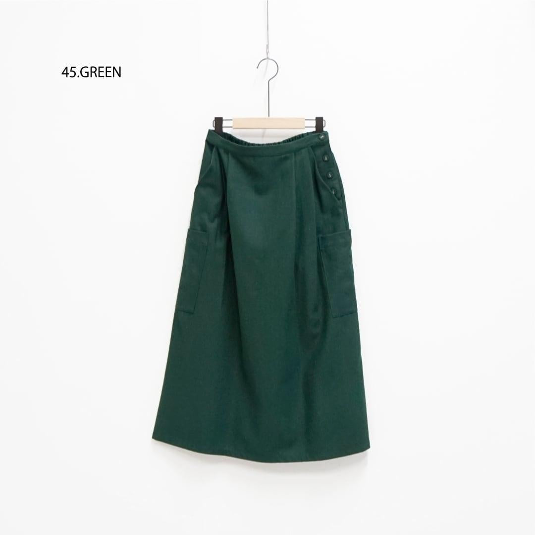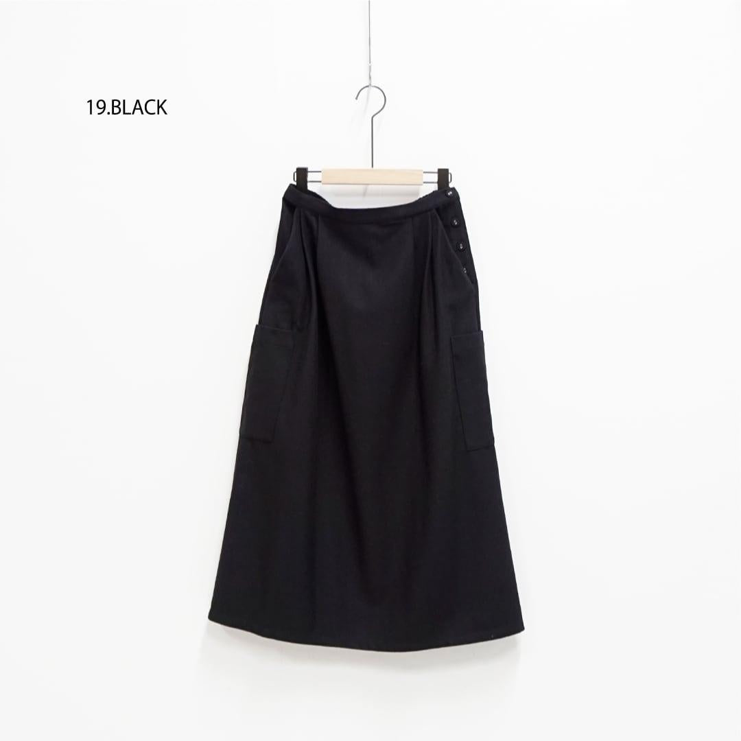 サイドのボタンとポケットがアクセントのAラインスカートです。シンプルなニットやカットソーと合わせても、最旬の都会派カジュアルが楽しめます
