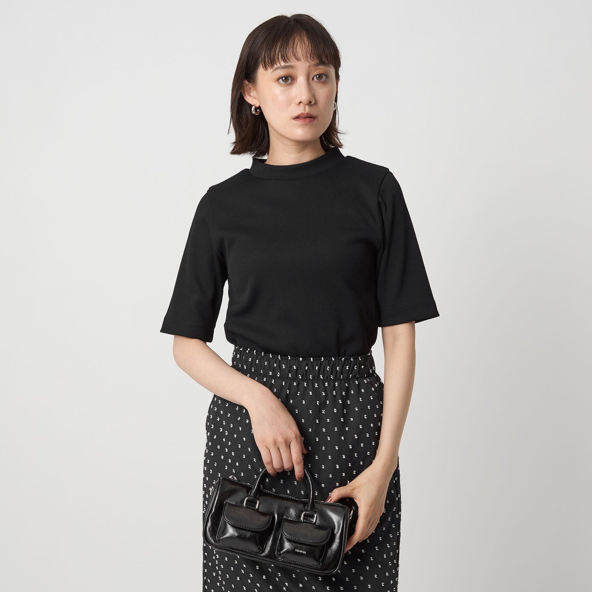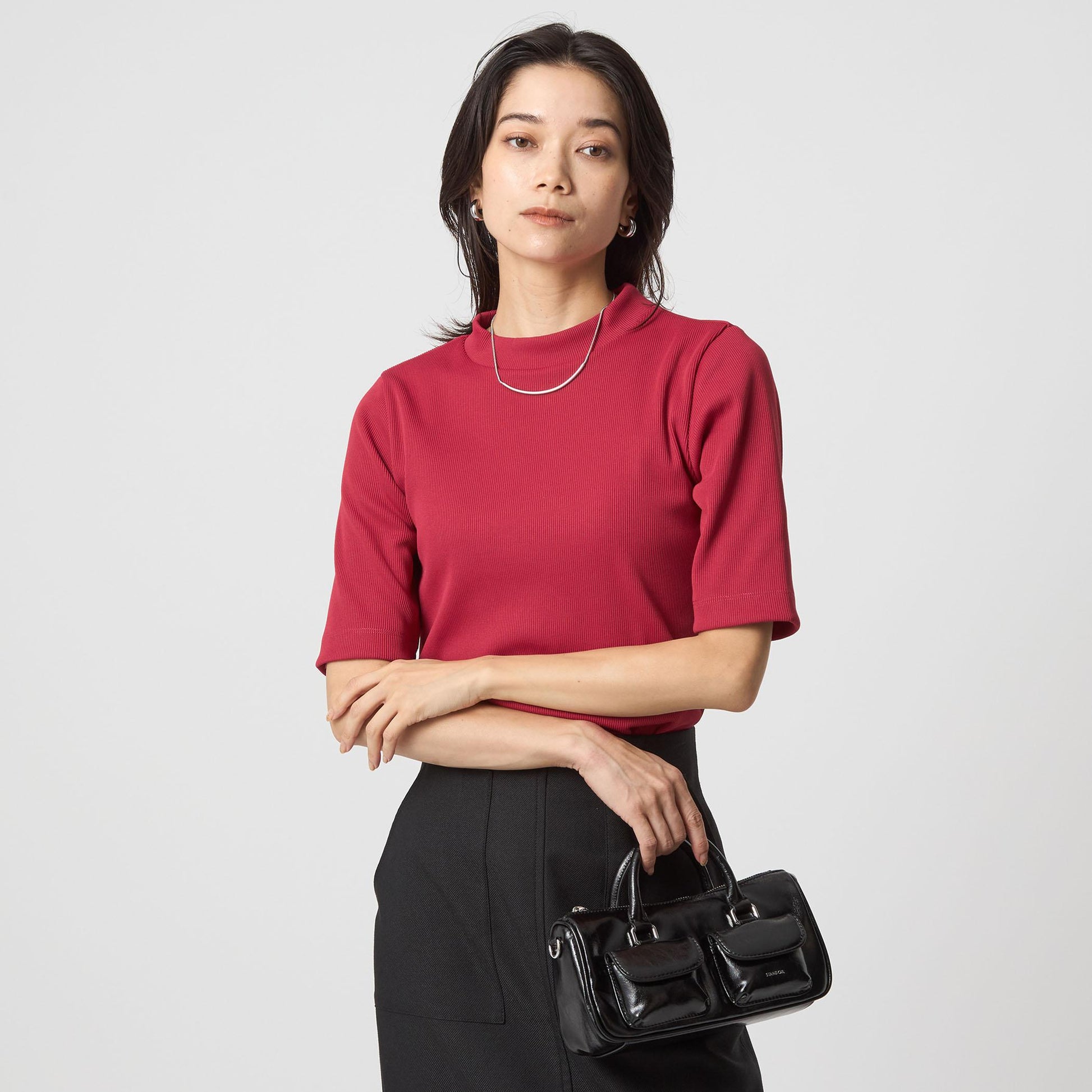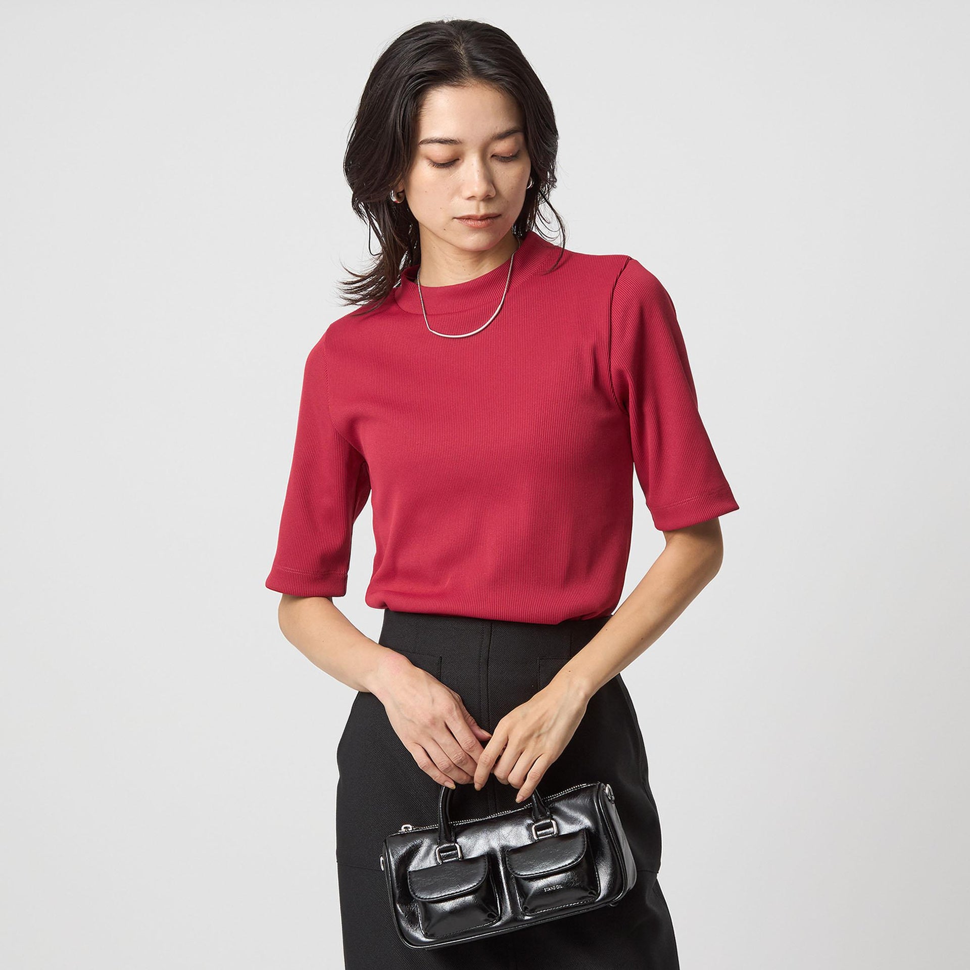 きちんと見えするモックネックデザインでお作りしたニットライクカットソー。
