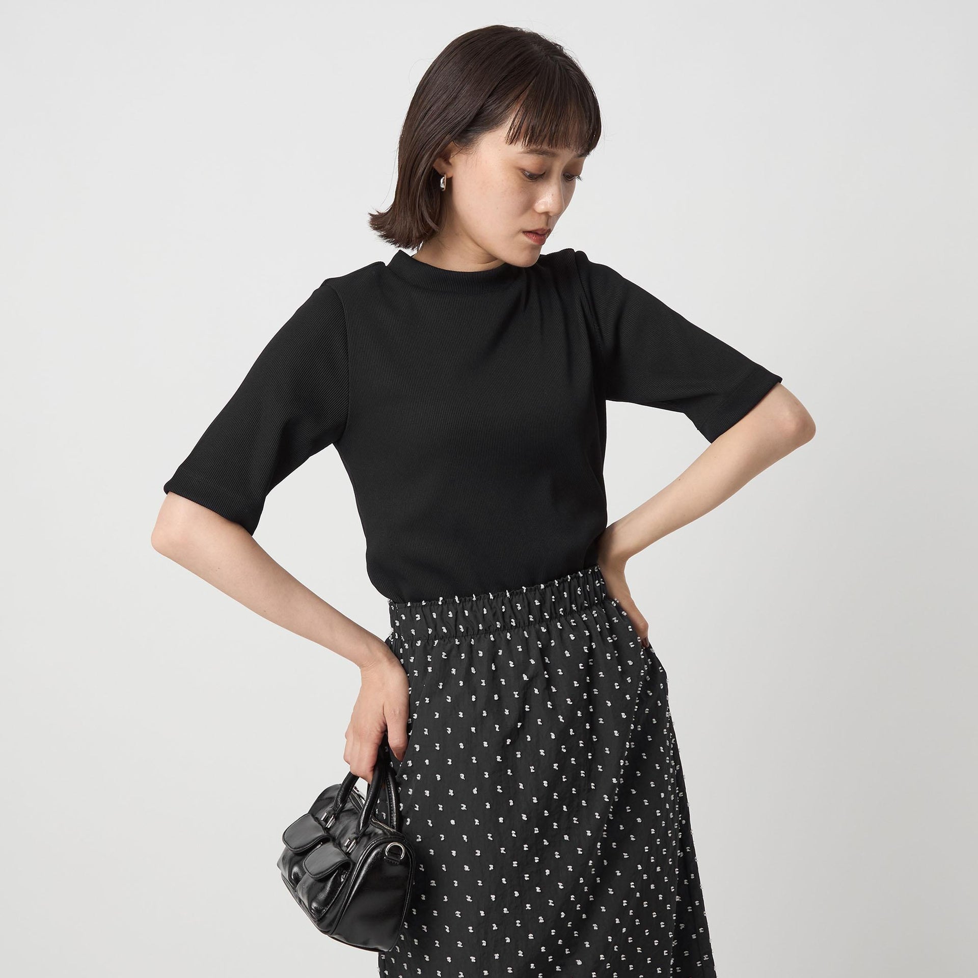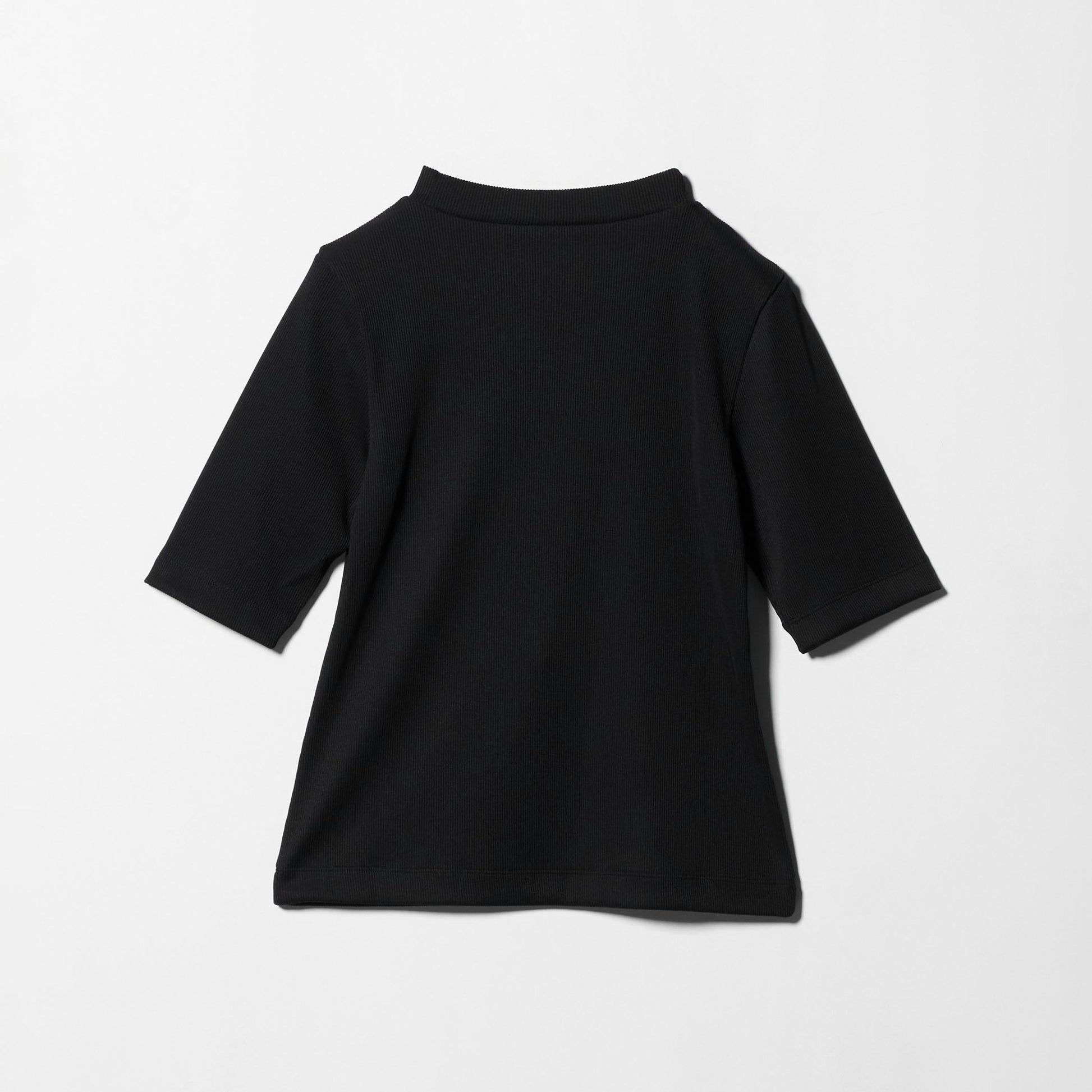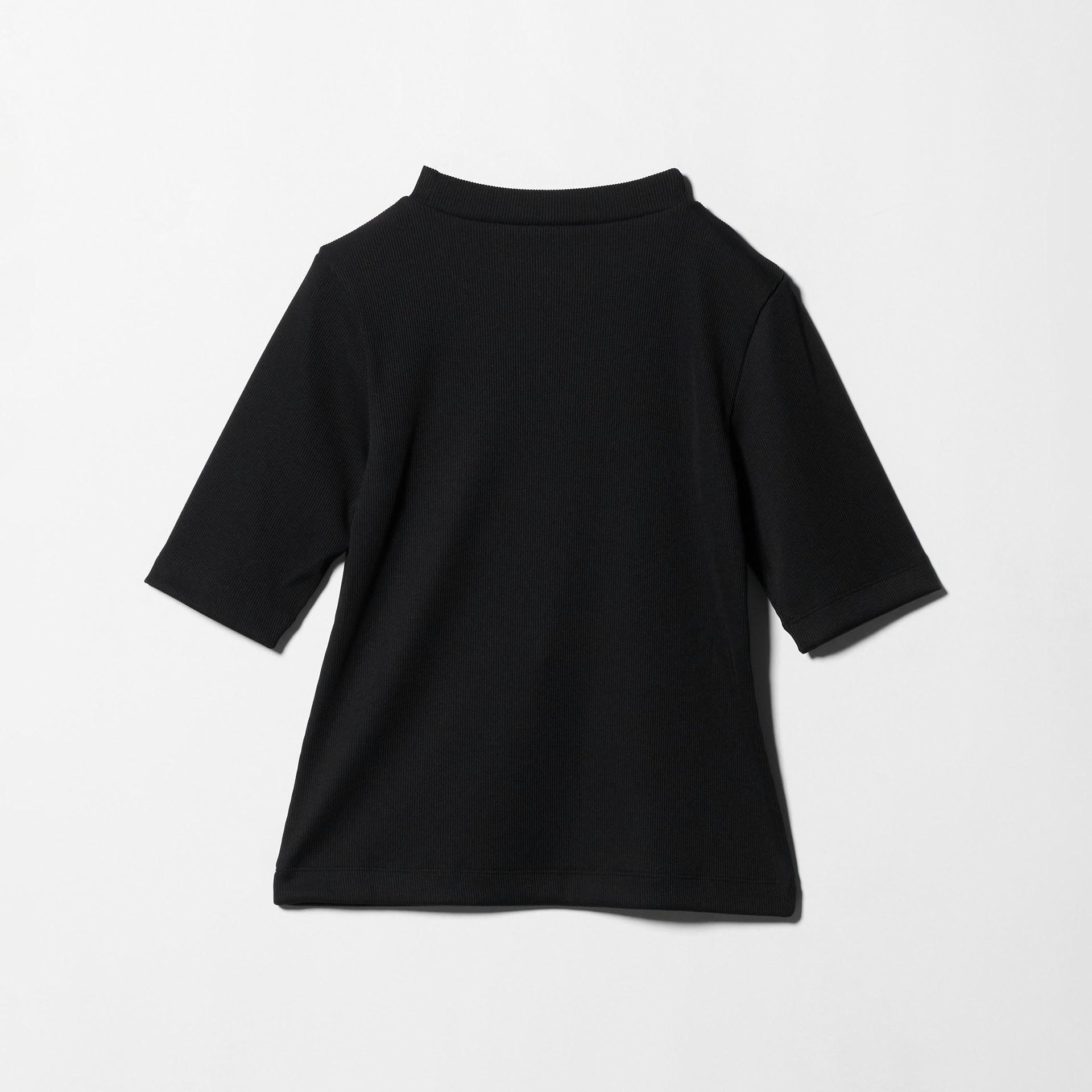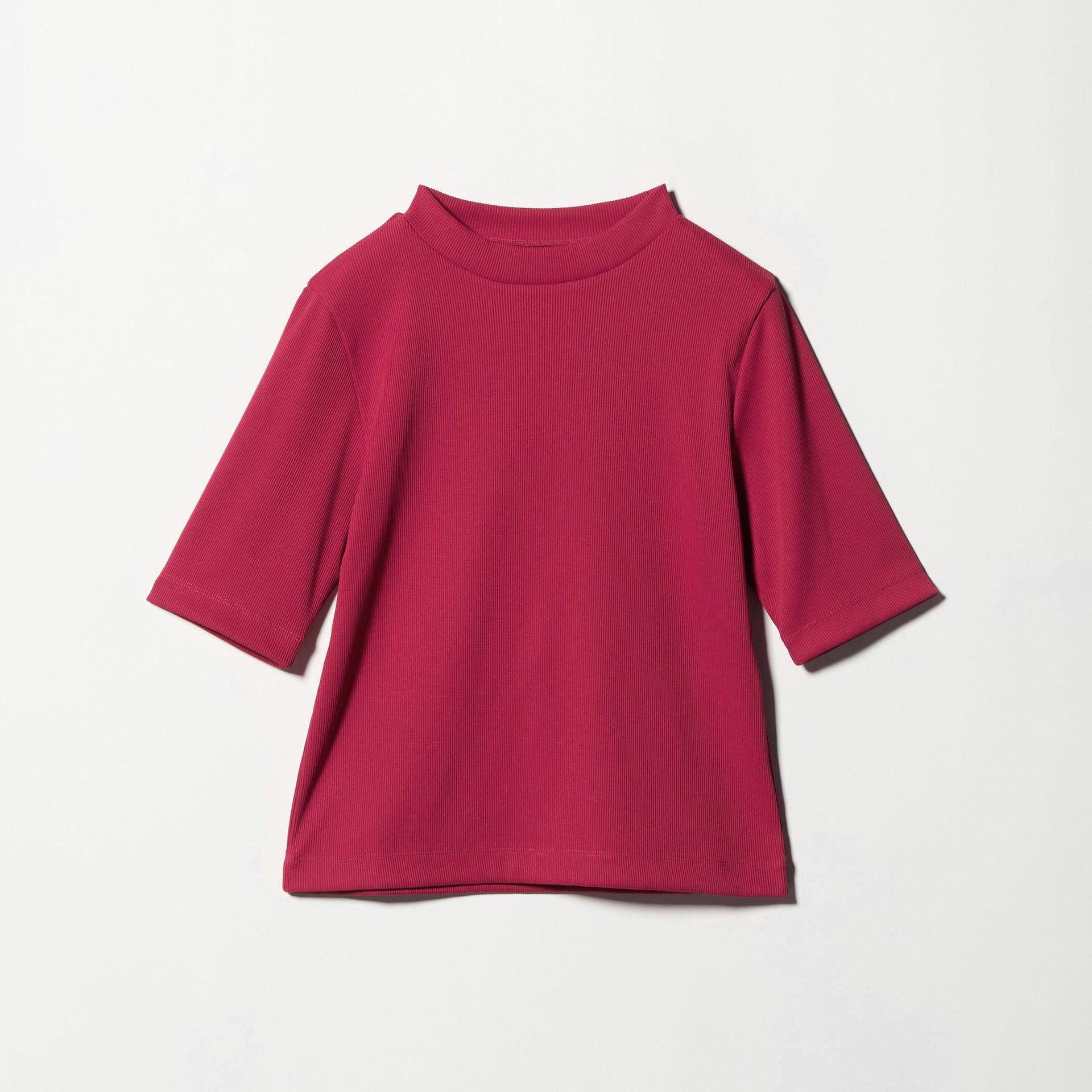 きちんと見えするモックネックデザインでお作りしたニットライクカットソー。