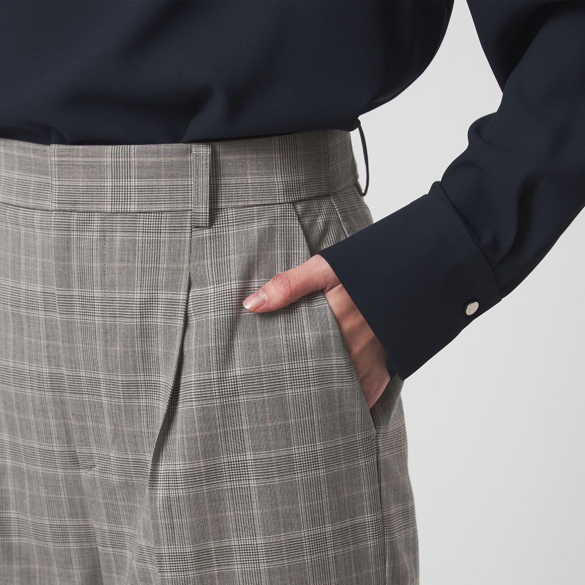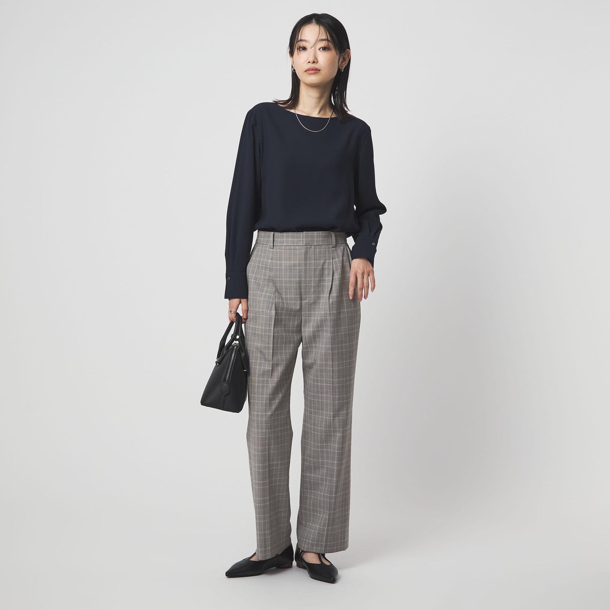 ストレートシルエット×センタープレスで上品な印象に仕上げました。