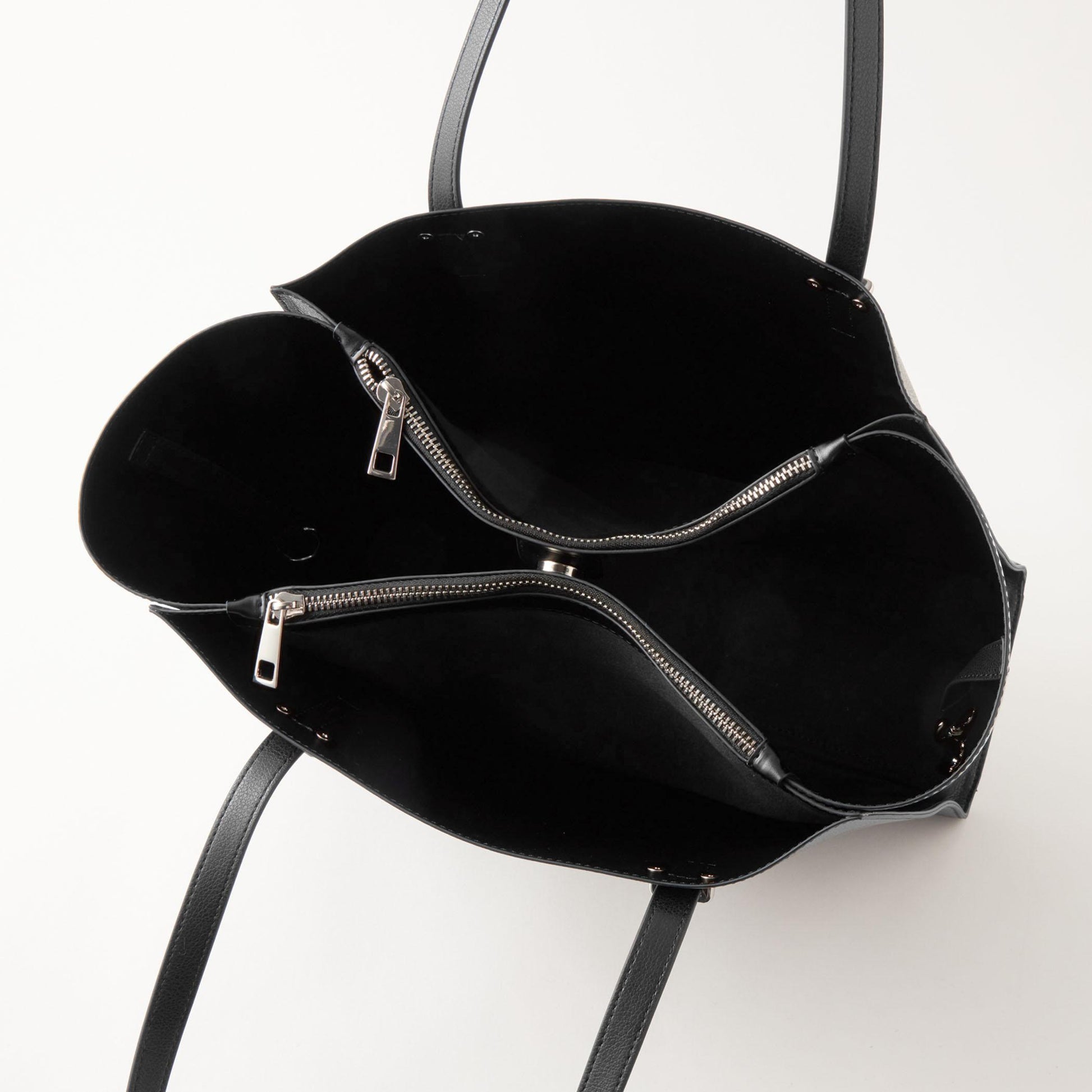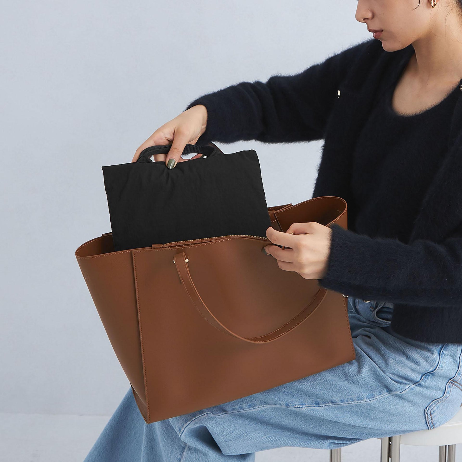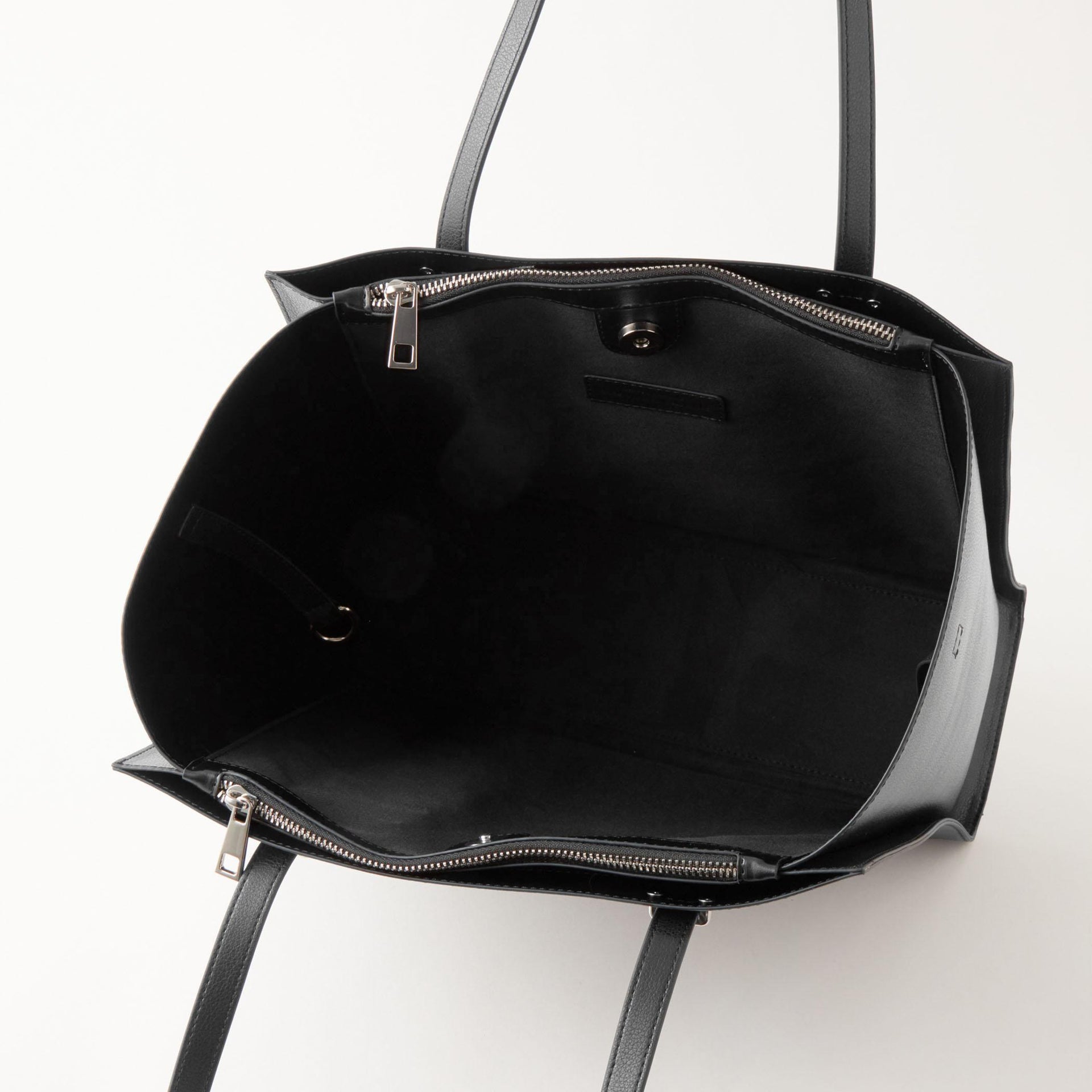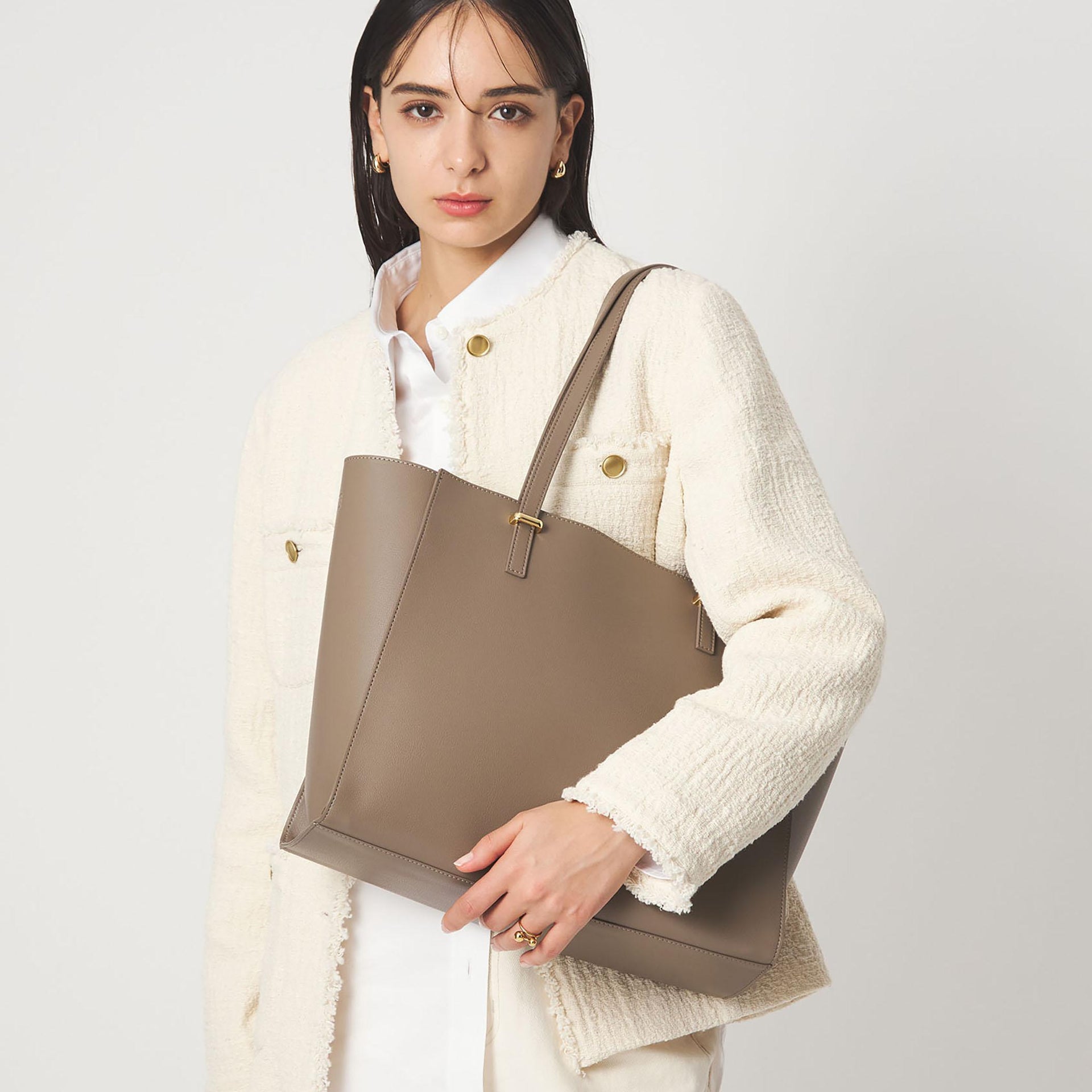 バッグ内側の金具を留めることで形状を変化させることができ、気分やスタイルで楽しめるのもポイント。