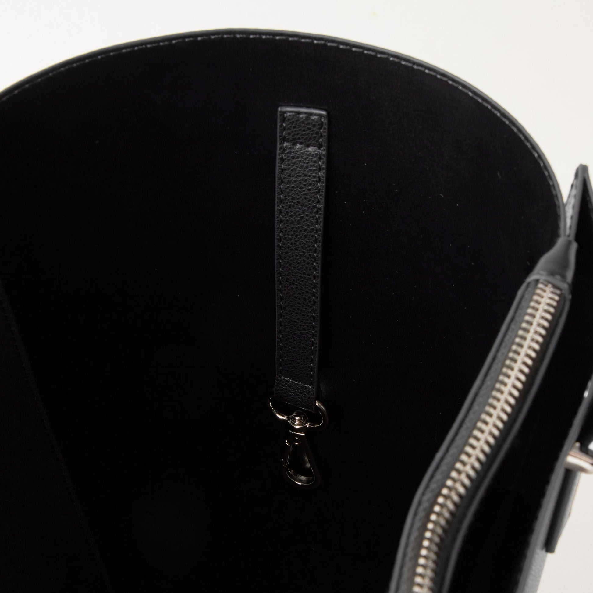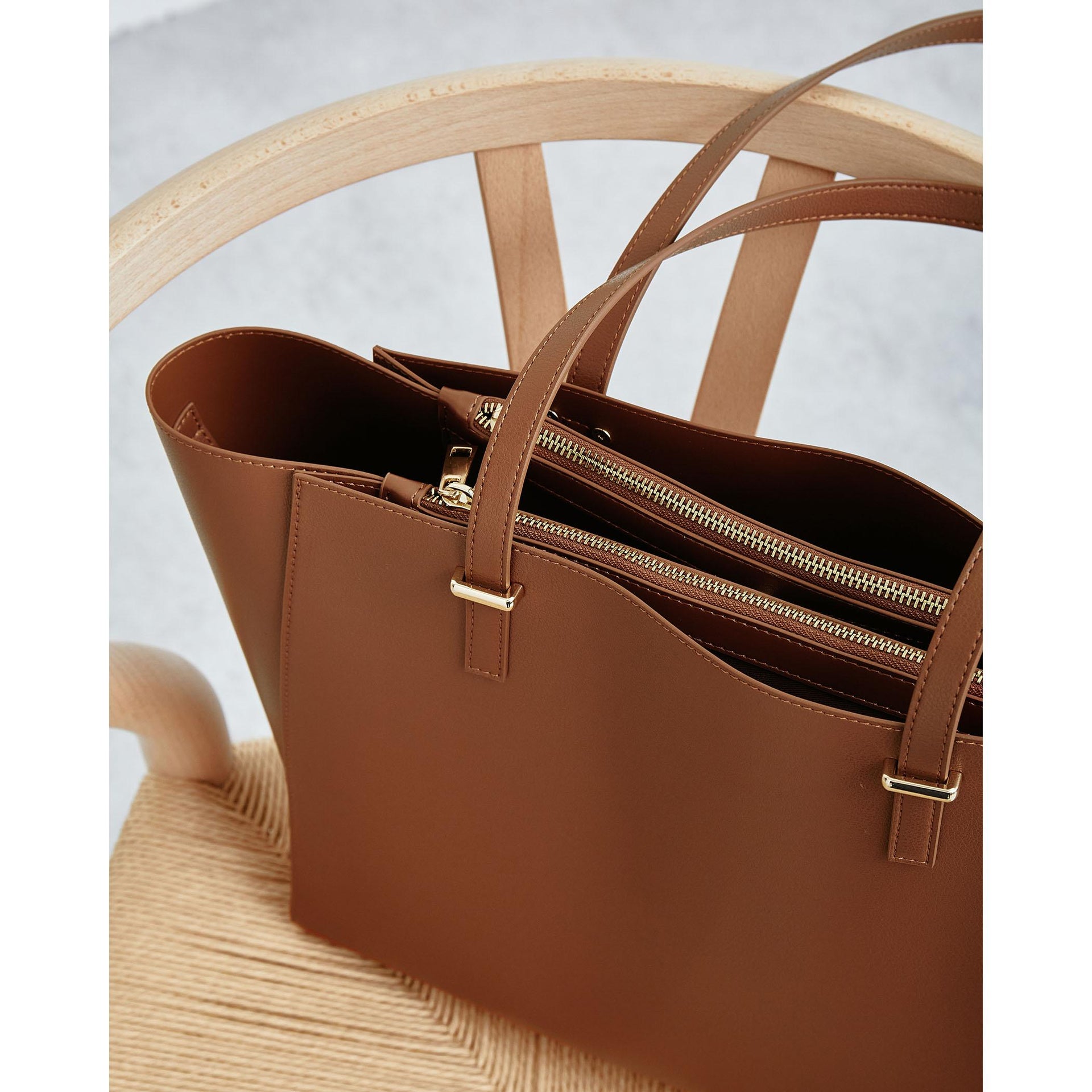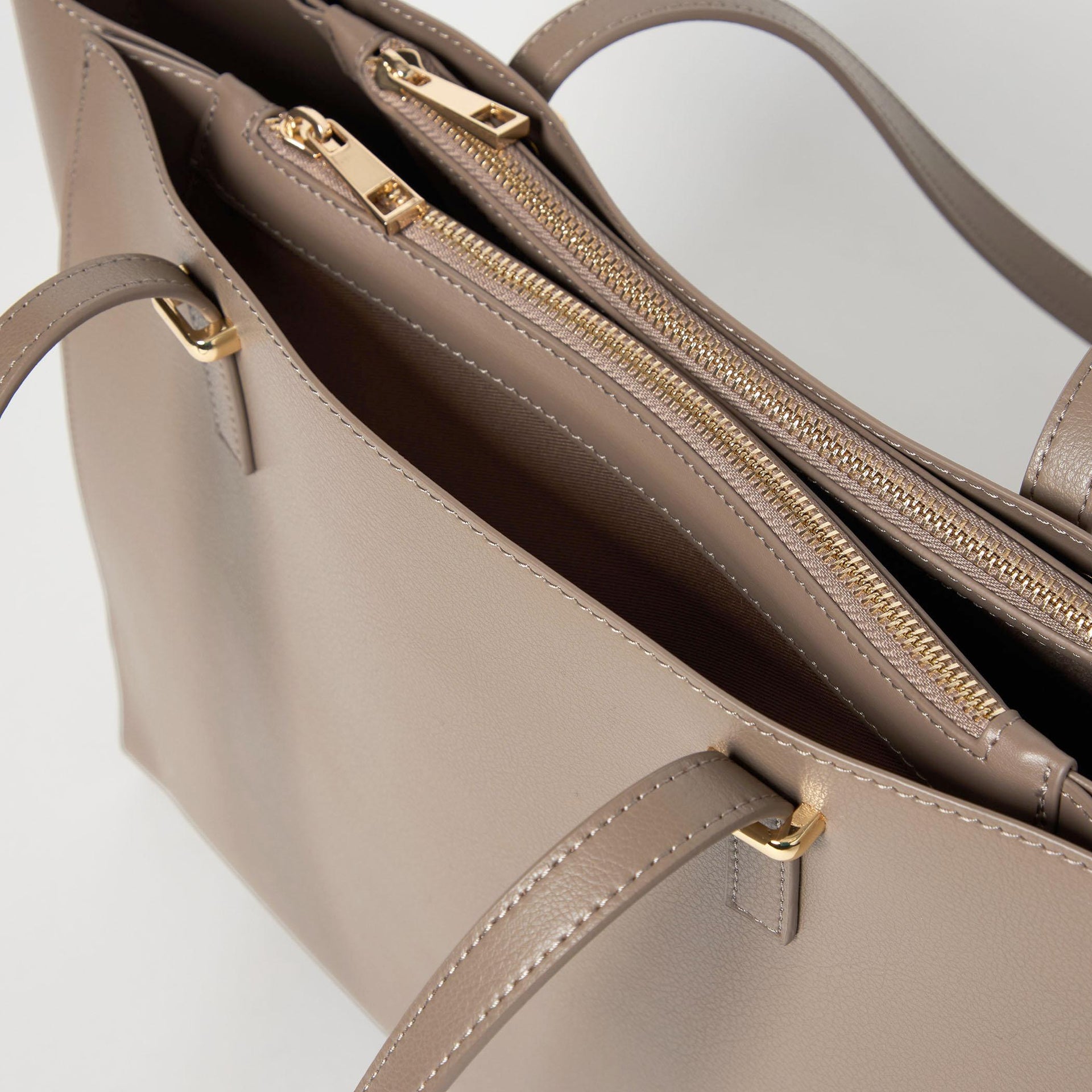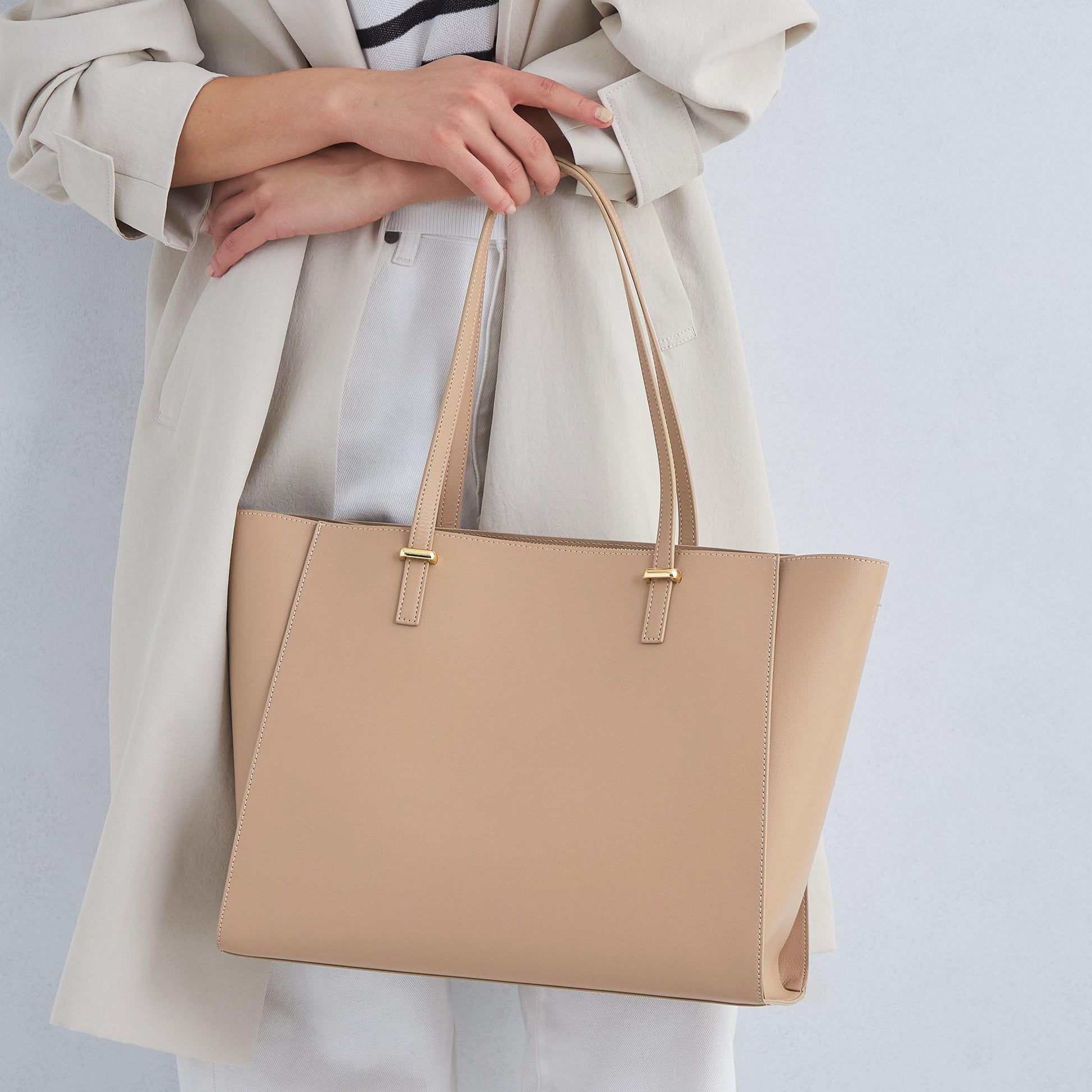 バッグ内側の金具を留めることで形状を変化させることができ、気分やスタイルで楽しめるのもポイント。