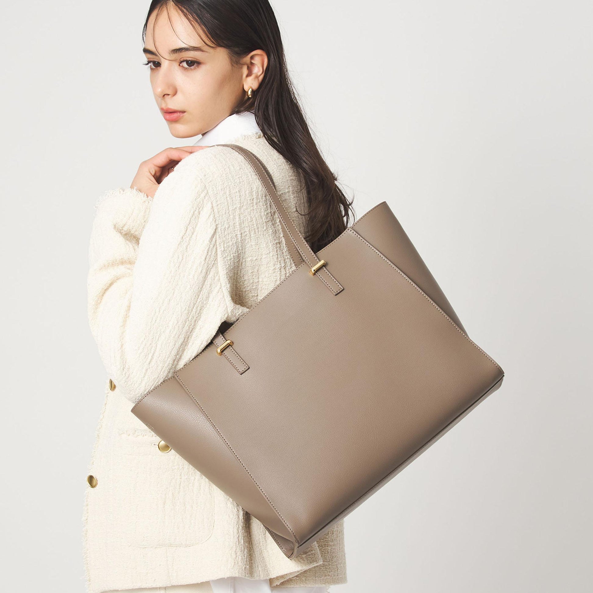 程よいシボ感のある上品な素材を使用し、表側にはワンポイントの金具をキラッと効かせました。