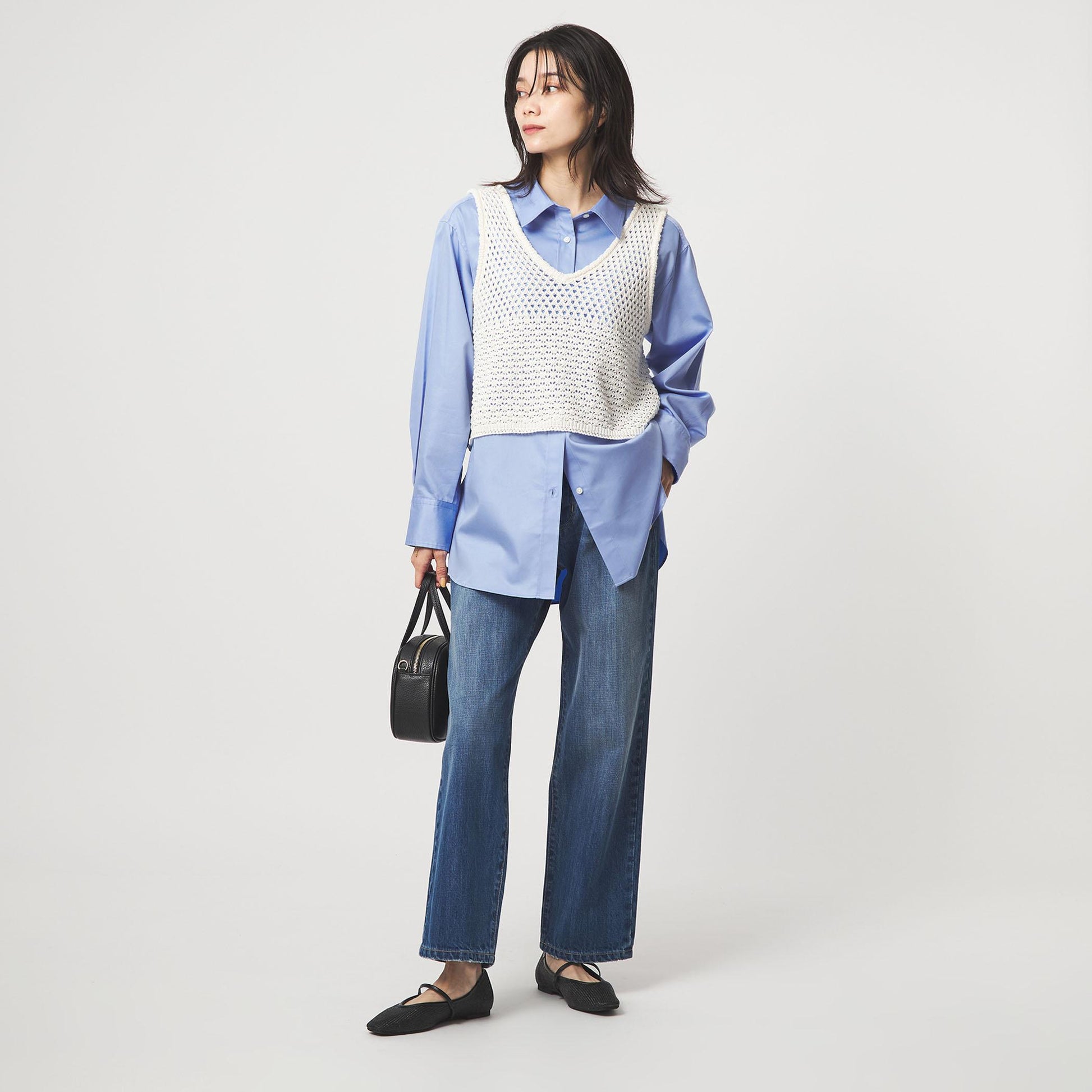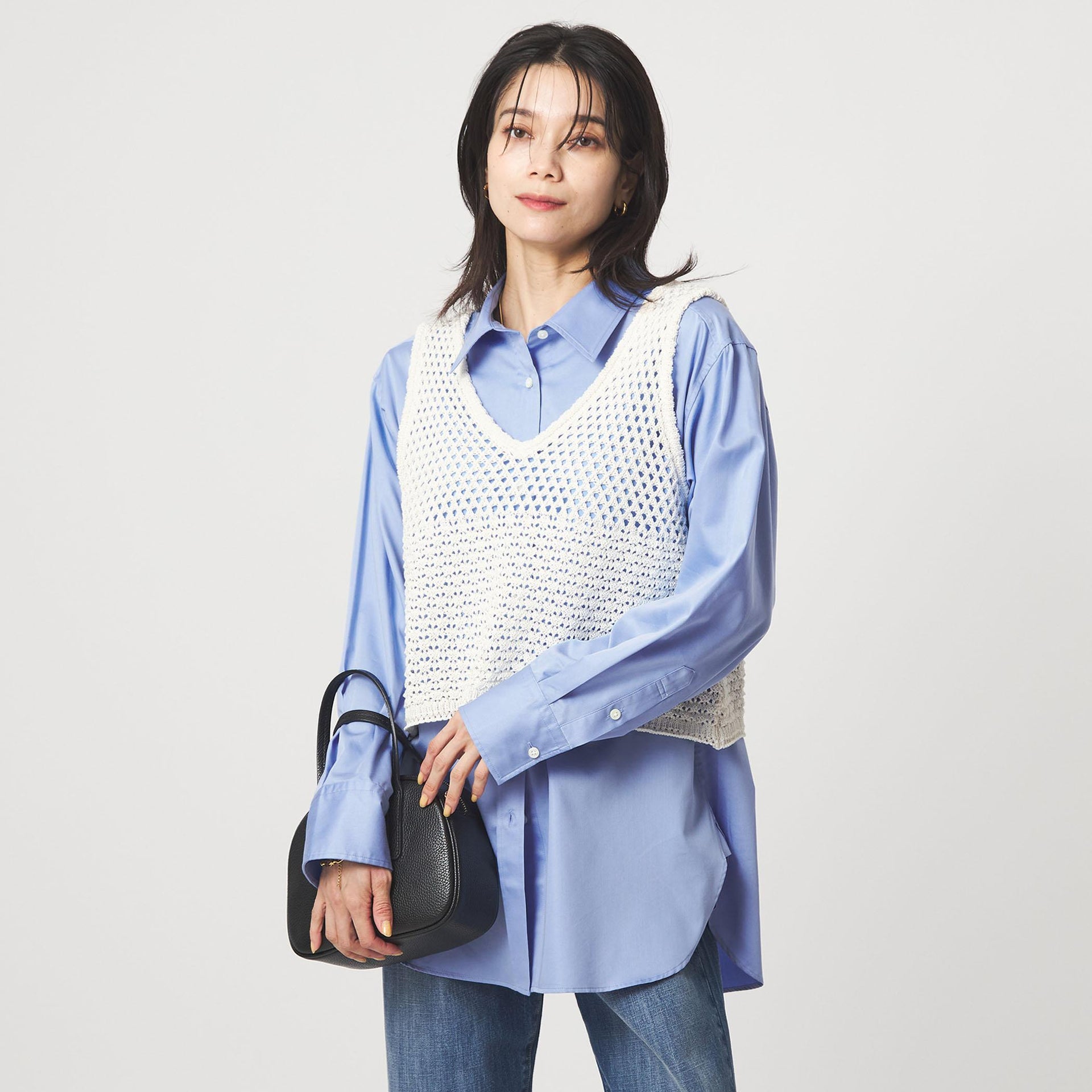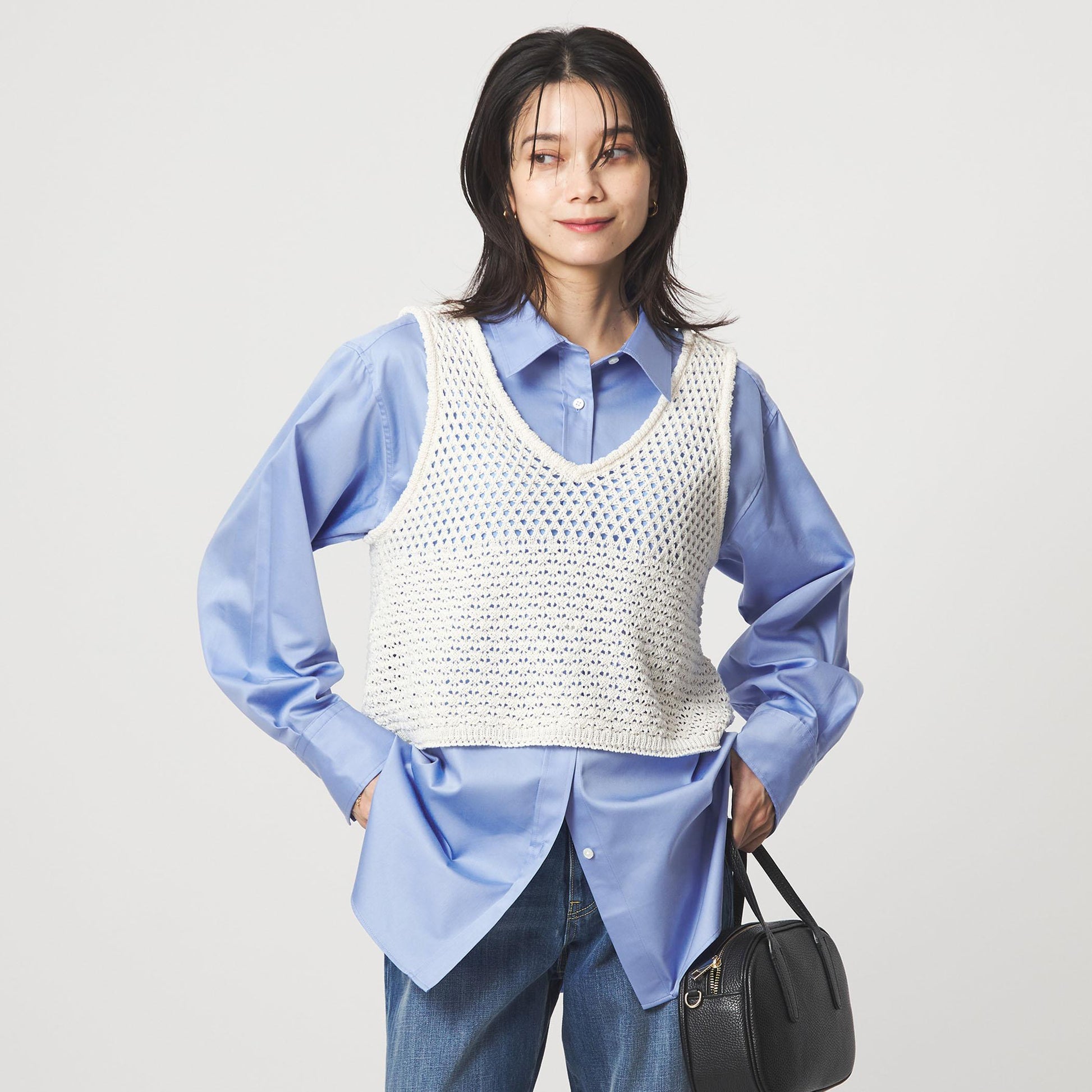 ベストやジレとのレイヤードスタイルで新鮮な印象に。