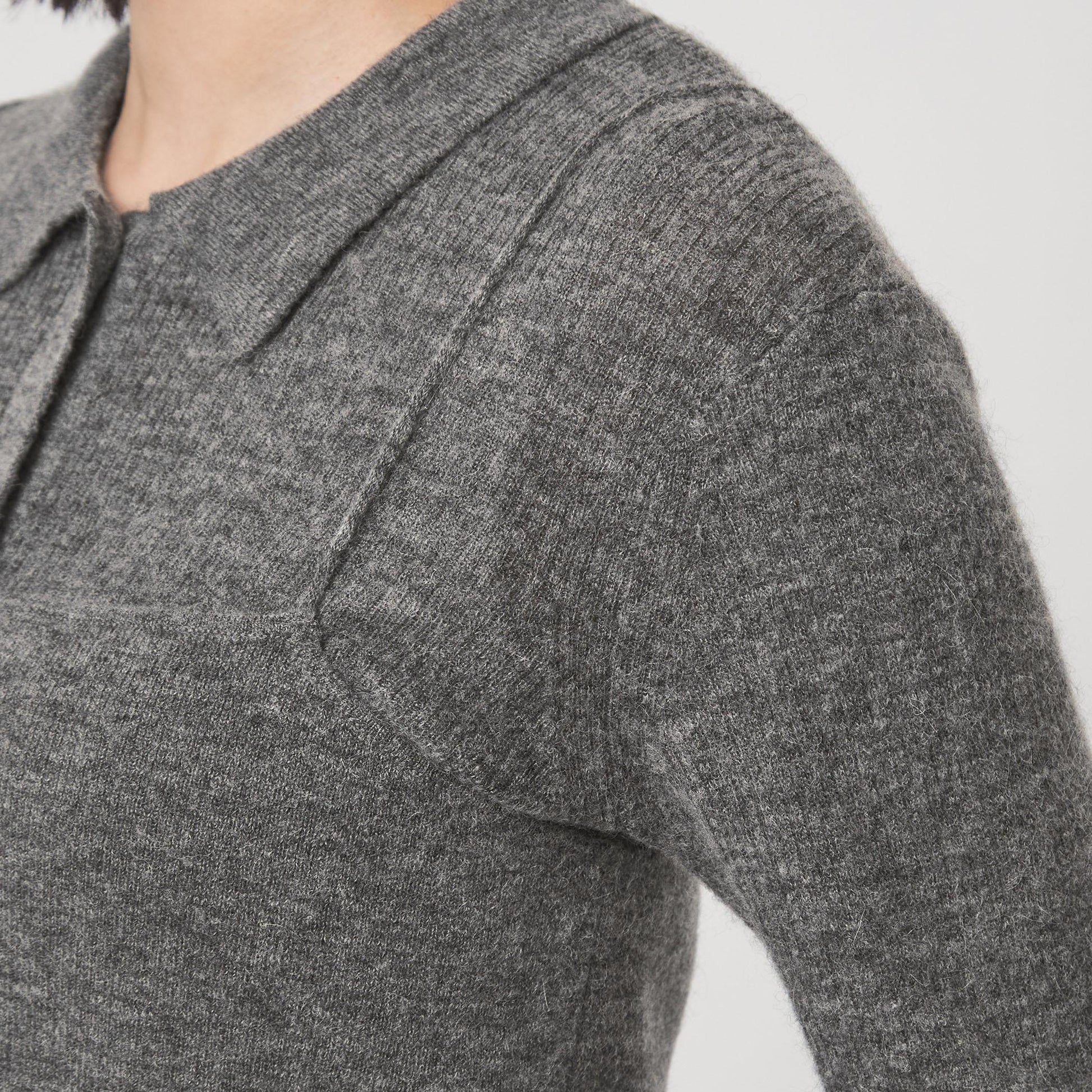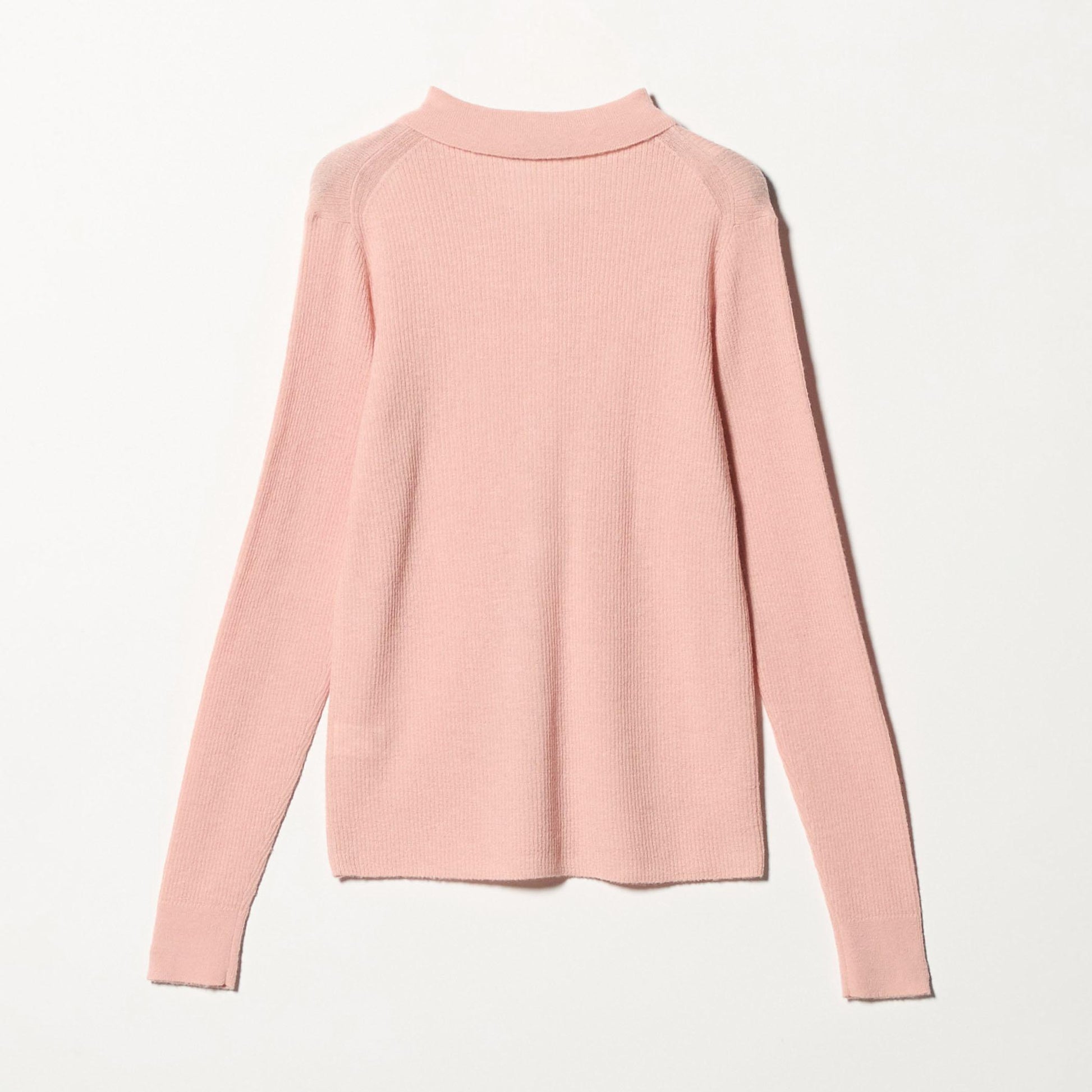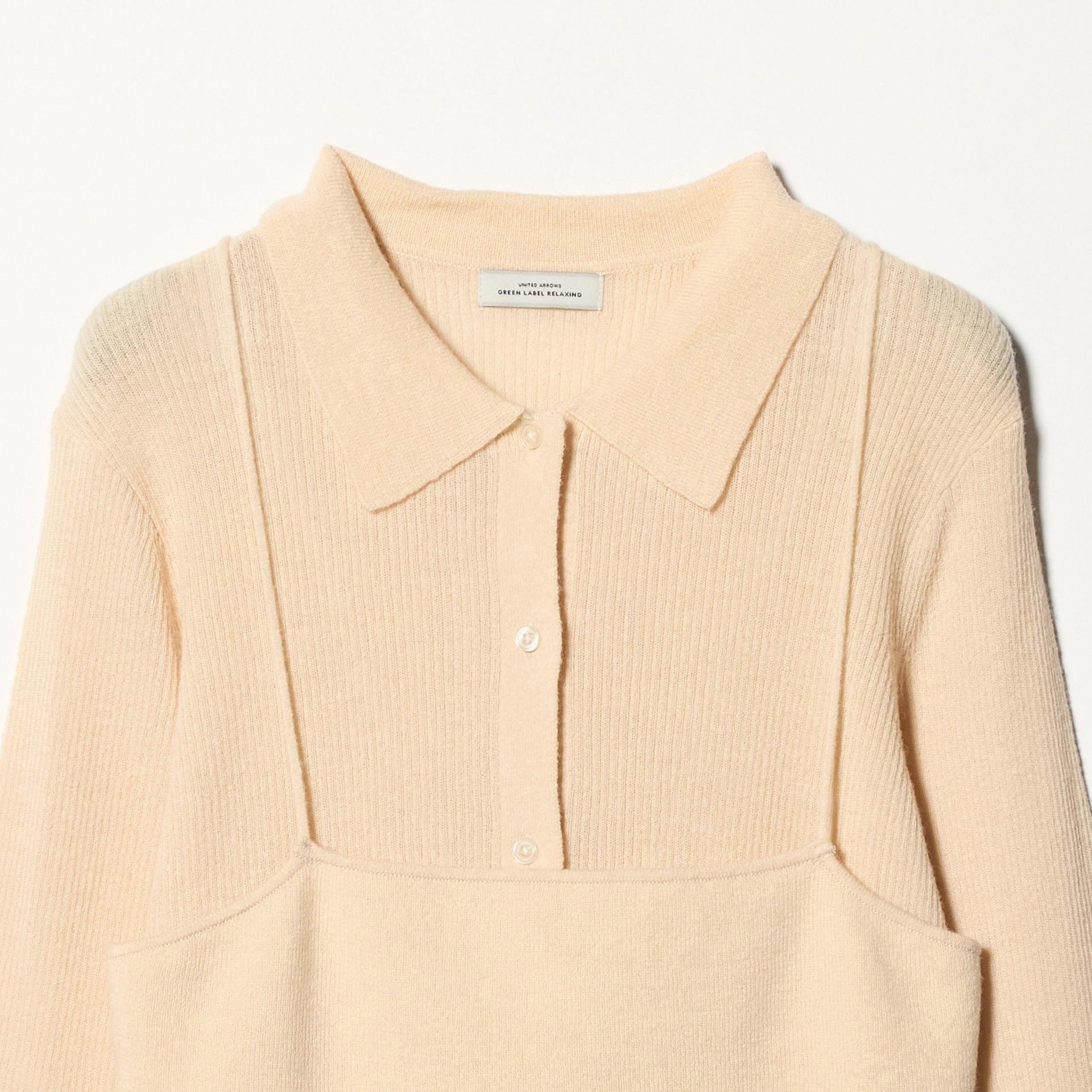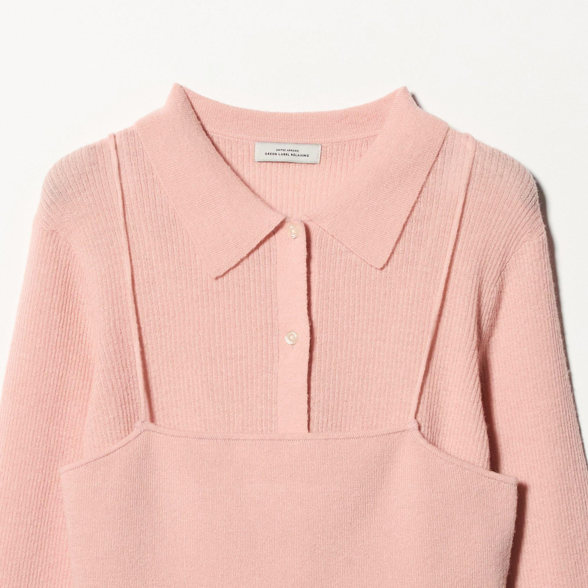 少し透け感のある襟付きリブカーディガンと、編地が異なるキャミソールのセットアイテム。