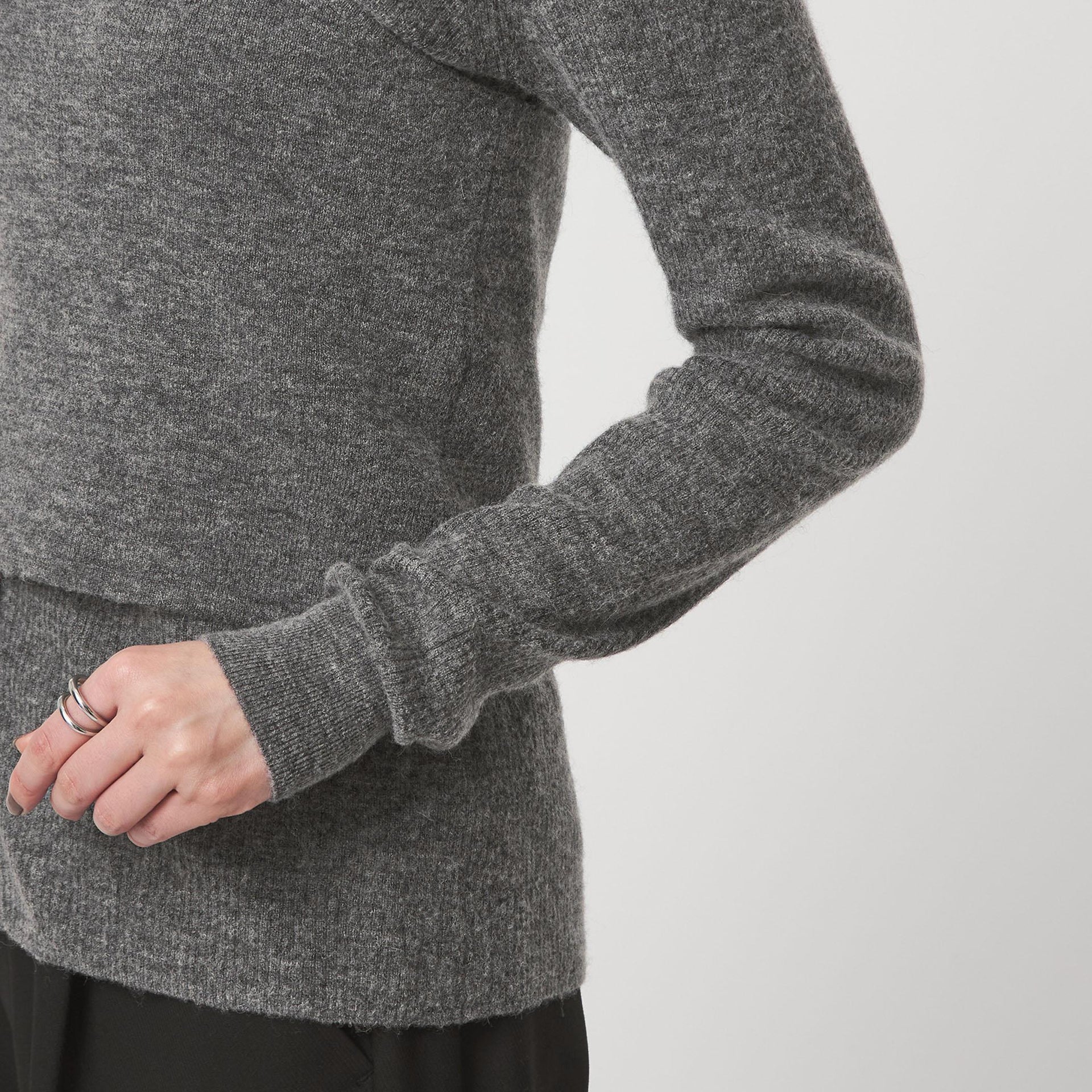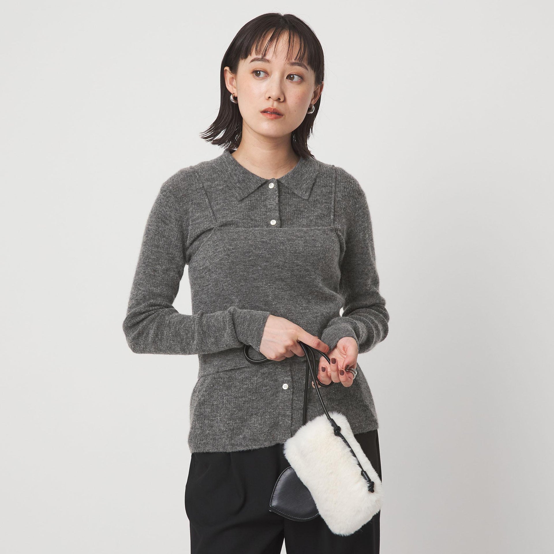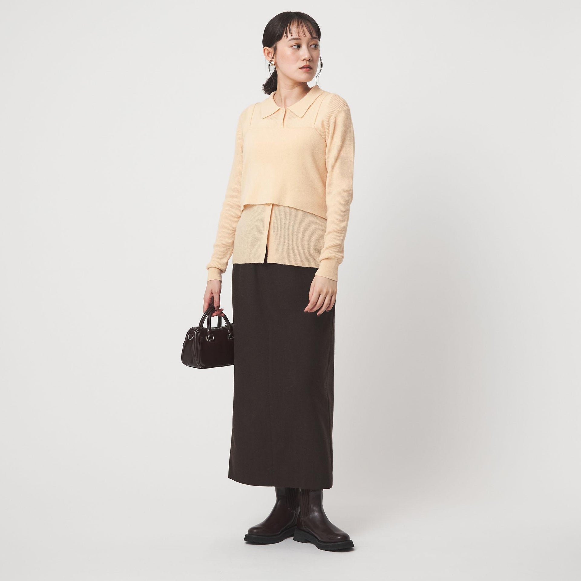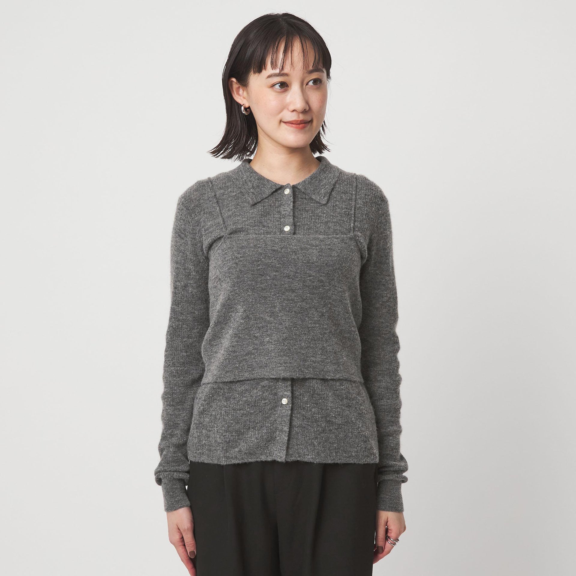 ニット×ニットのレイヤードで、鮮度のあるスタイリングを楽しめる一着です。