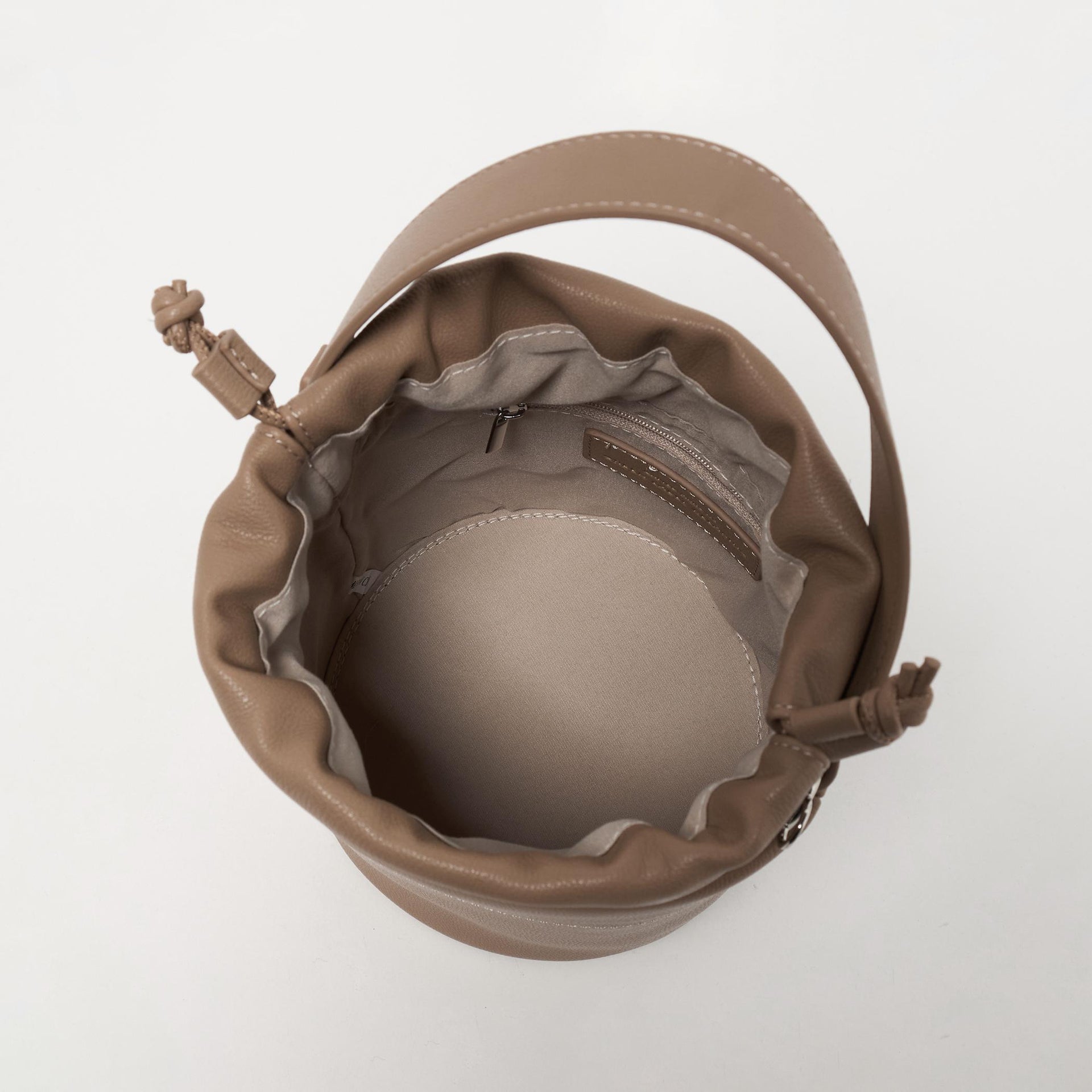 バケツ型のフォルムが可愛く、コーディネートのアクセントとしても映えます。