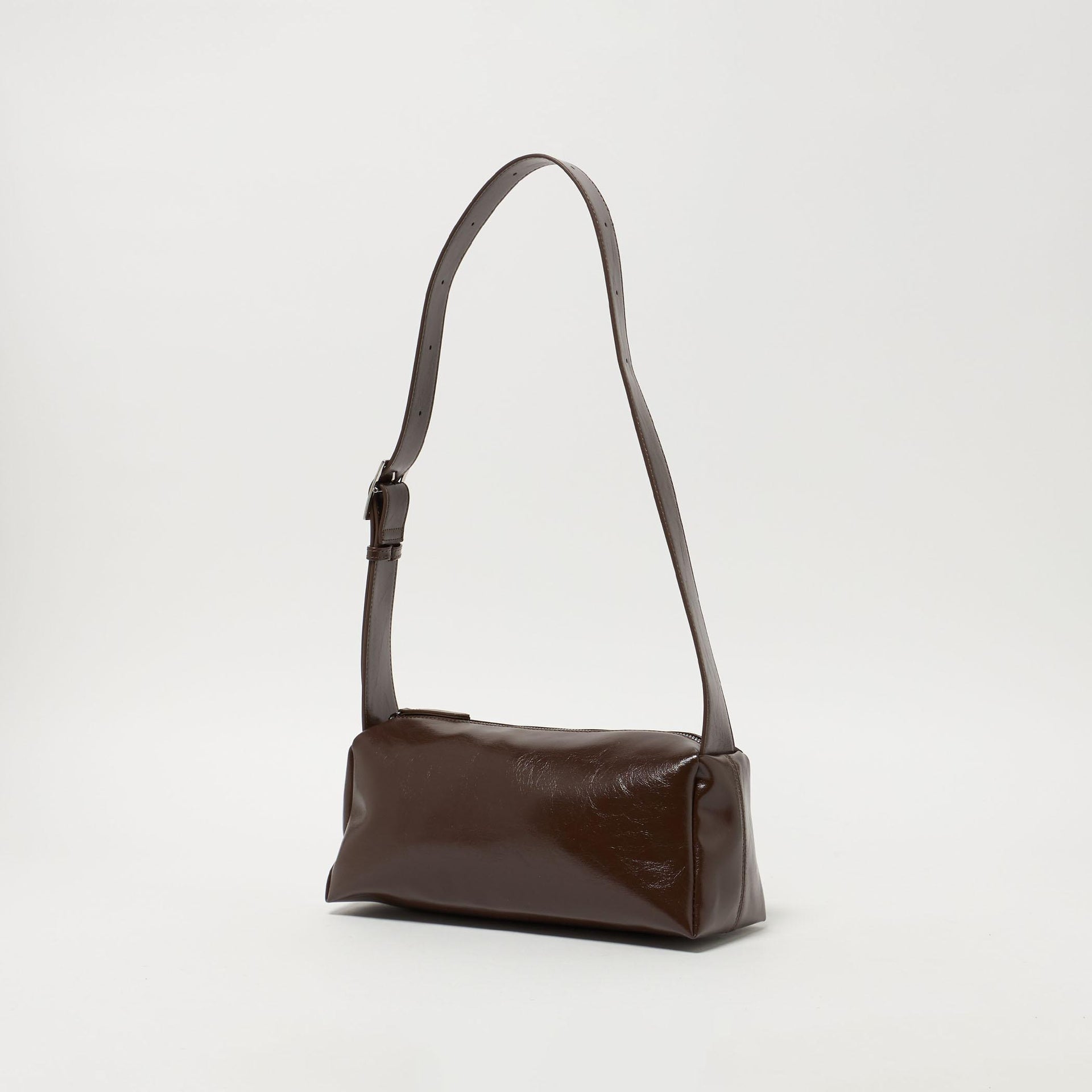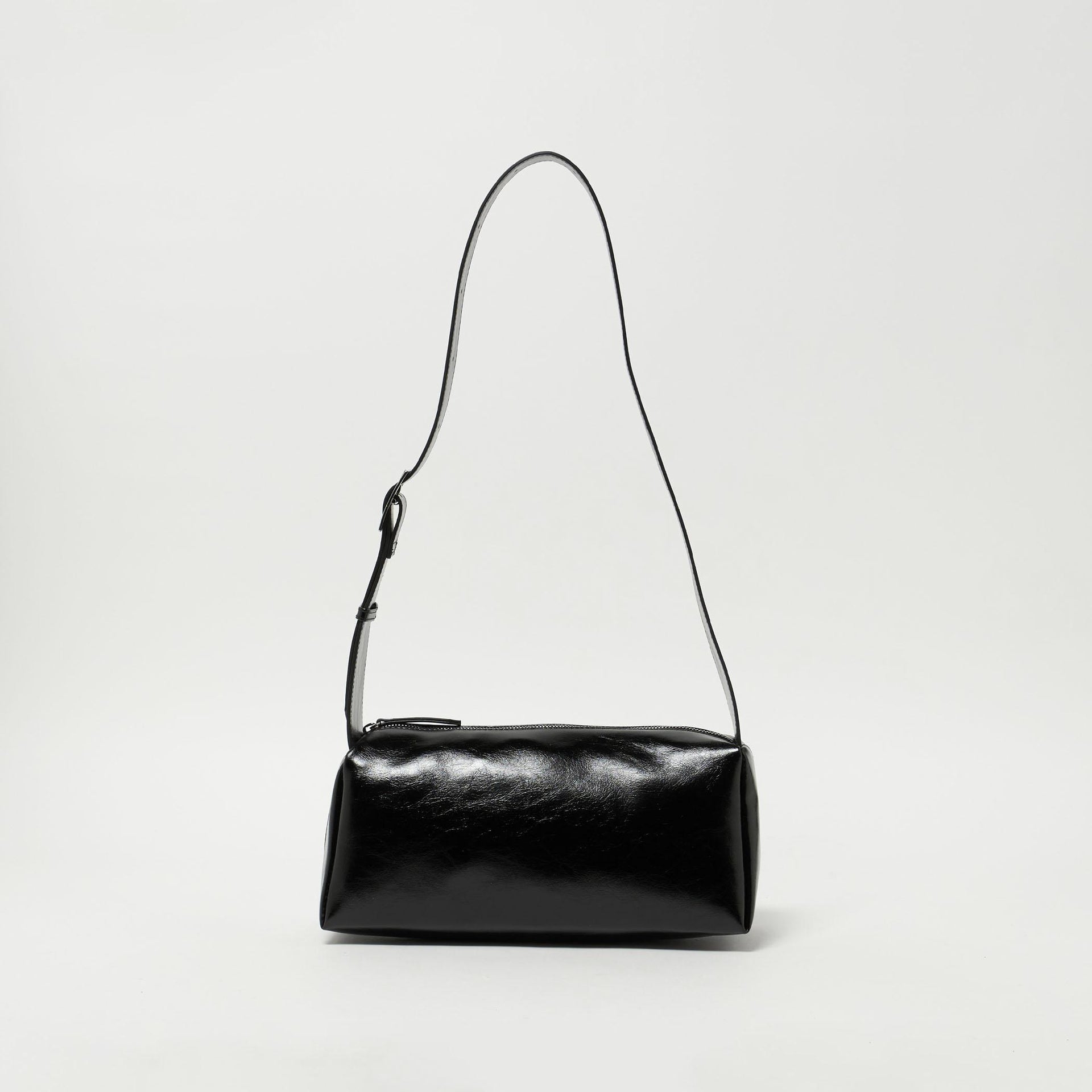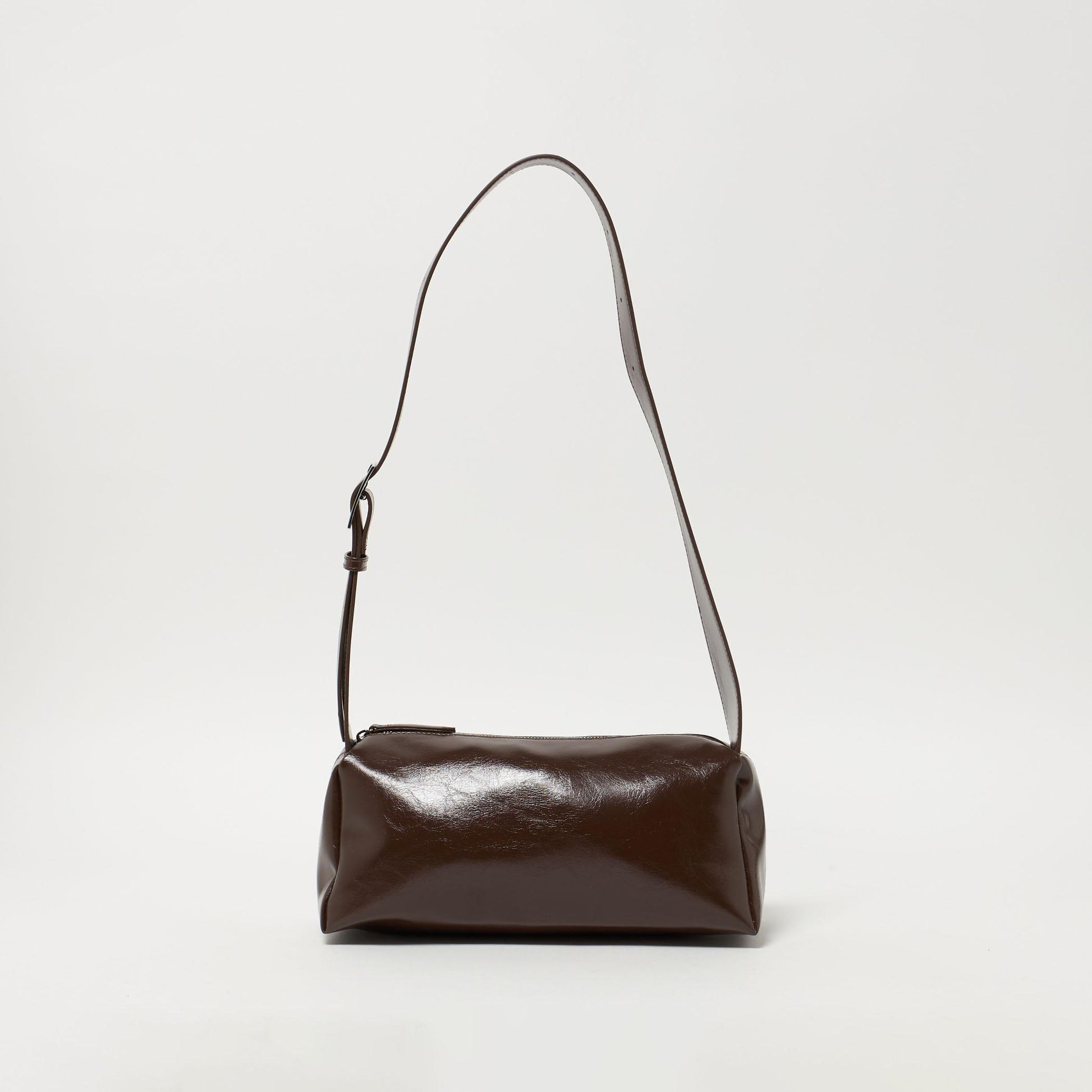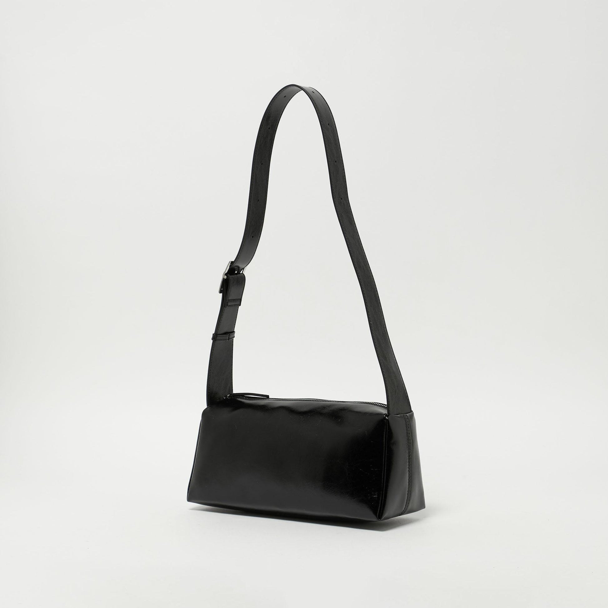 トレンドの横長シルエットのショルダーバッグ。