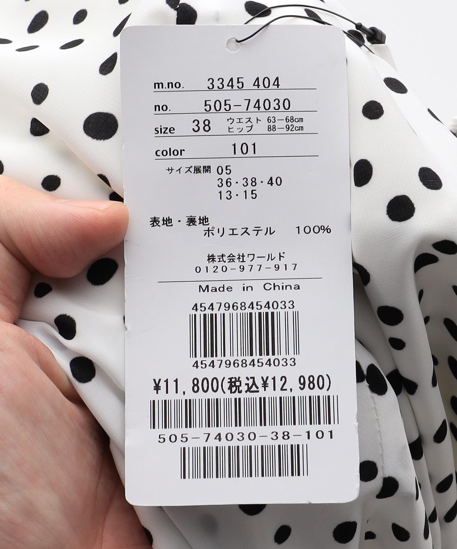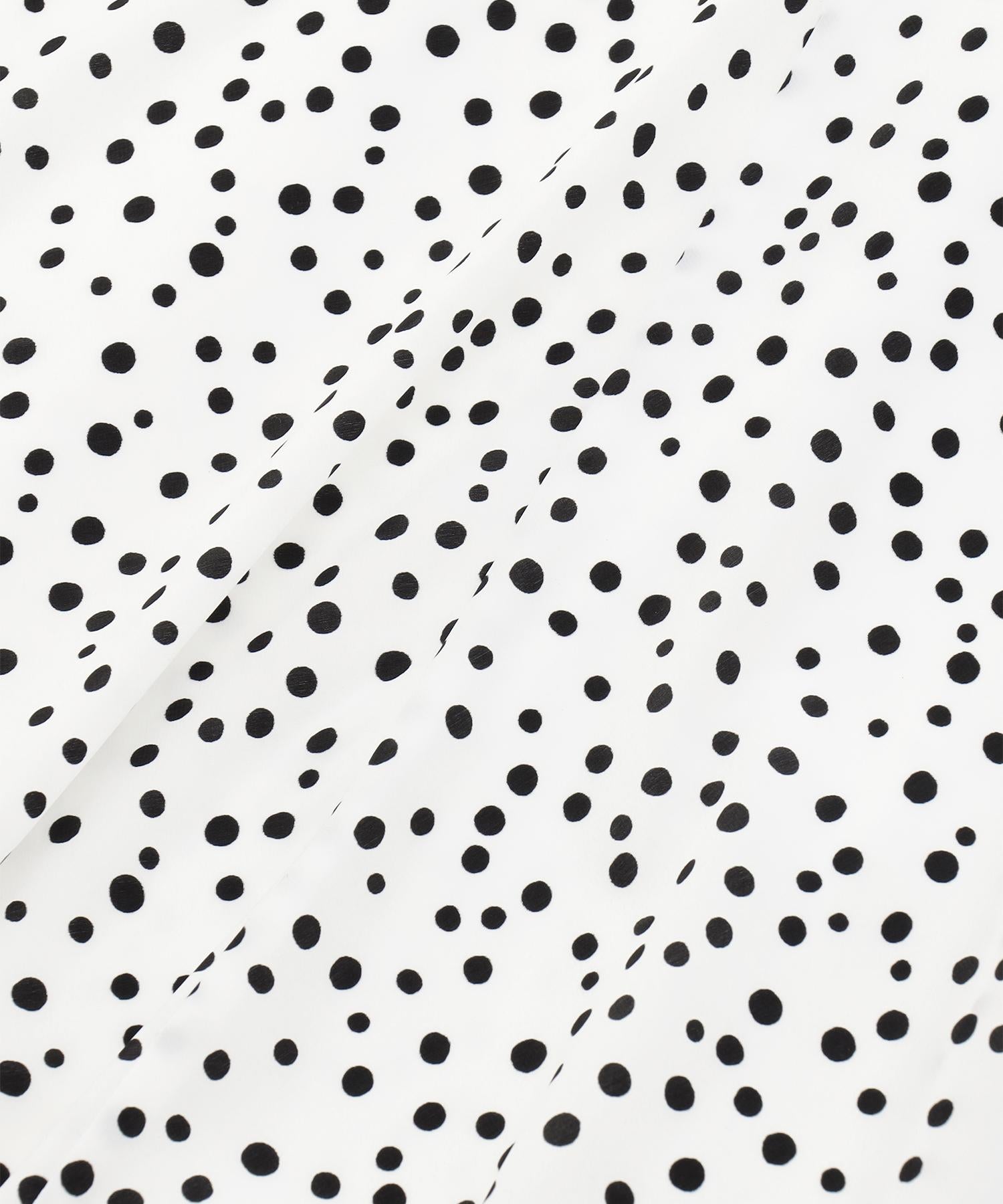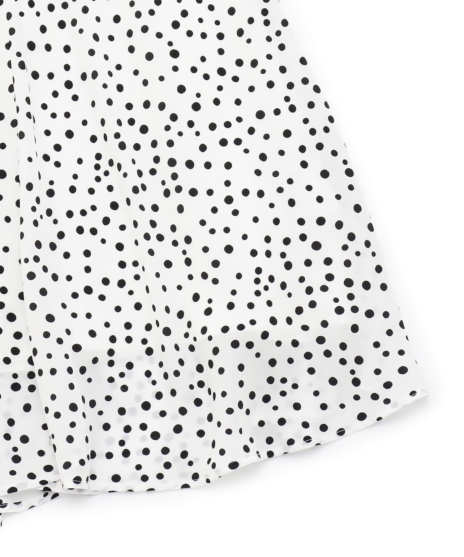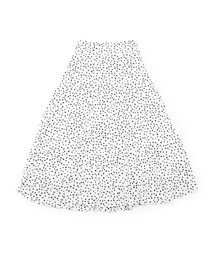 コーディネートのアクセントとして活躍するランダムドットのプリントスカート。