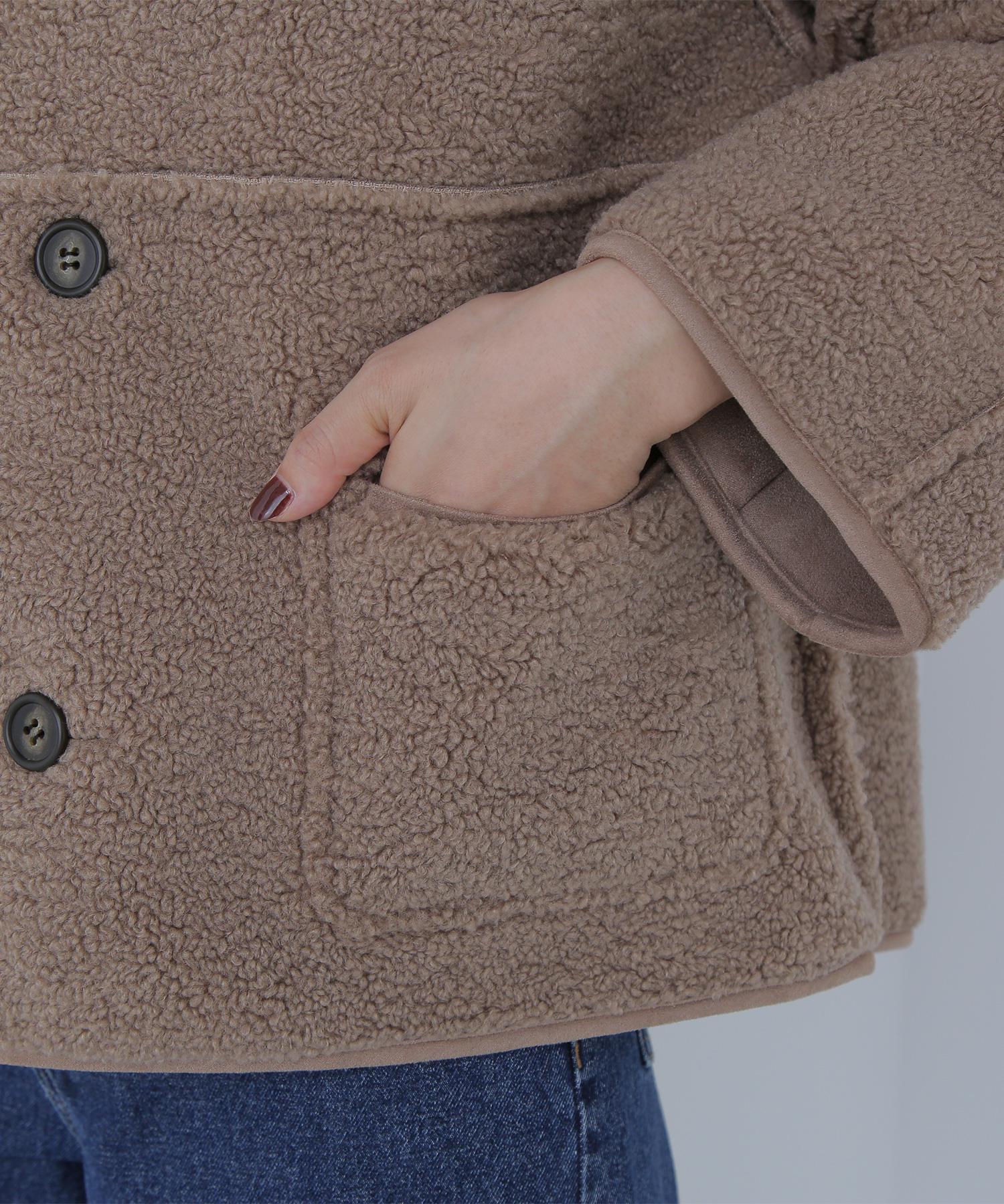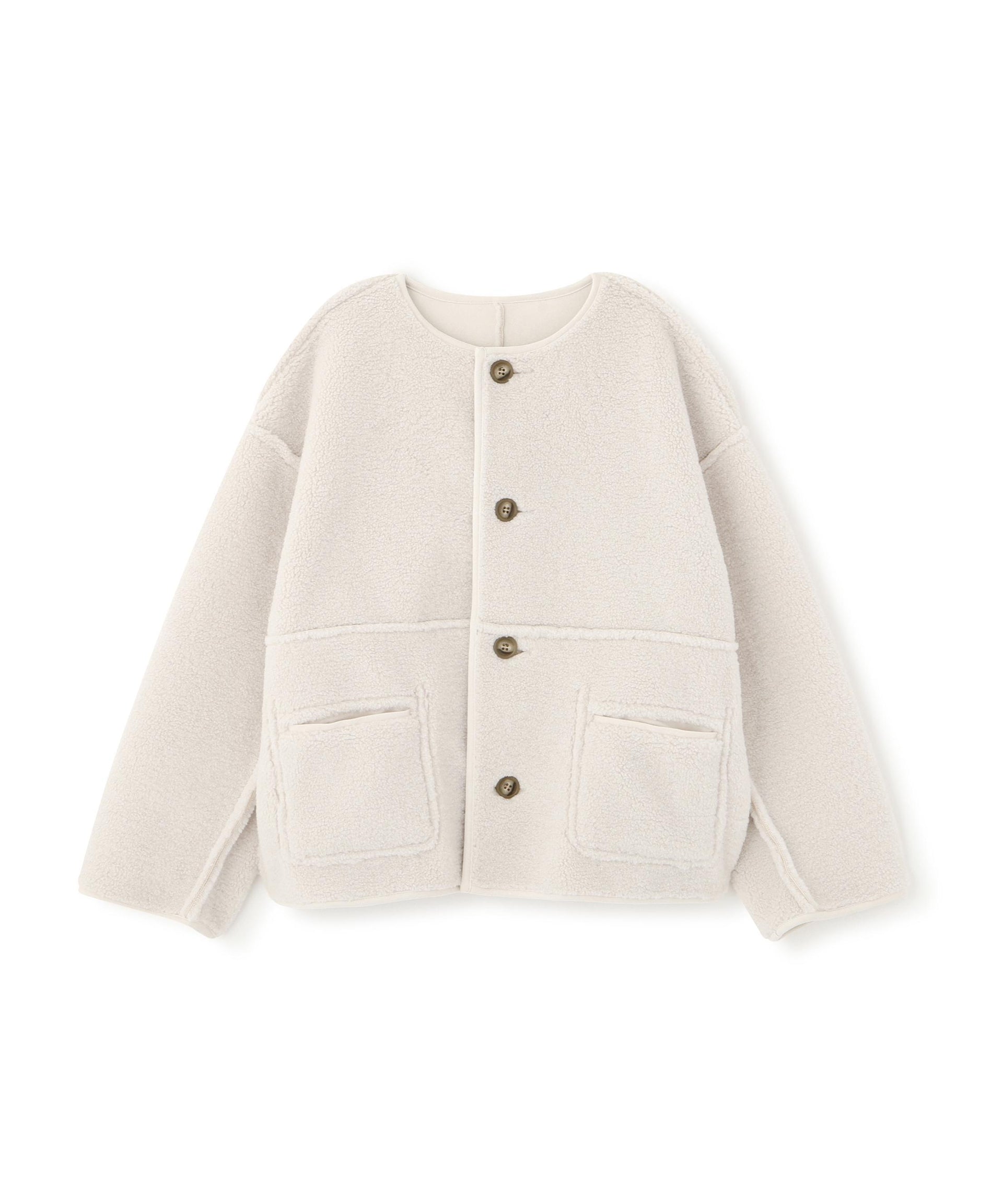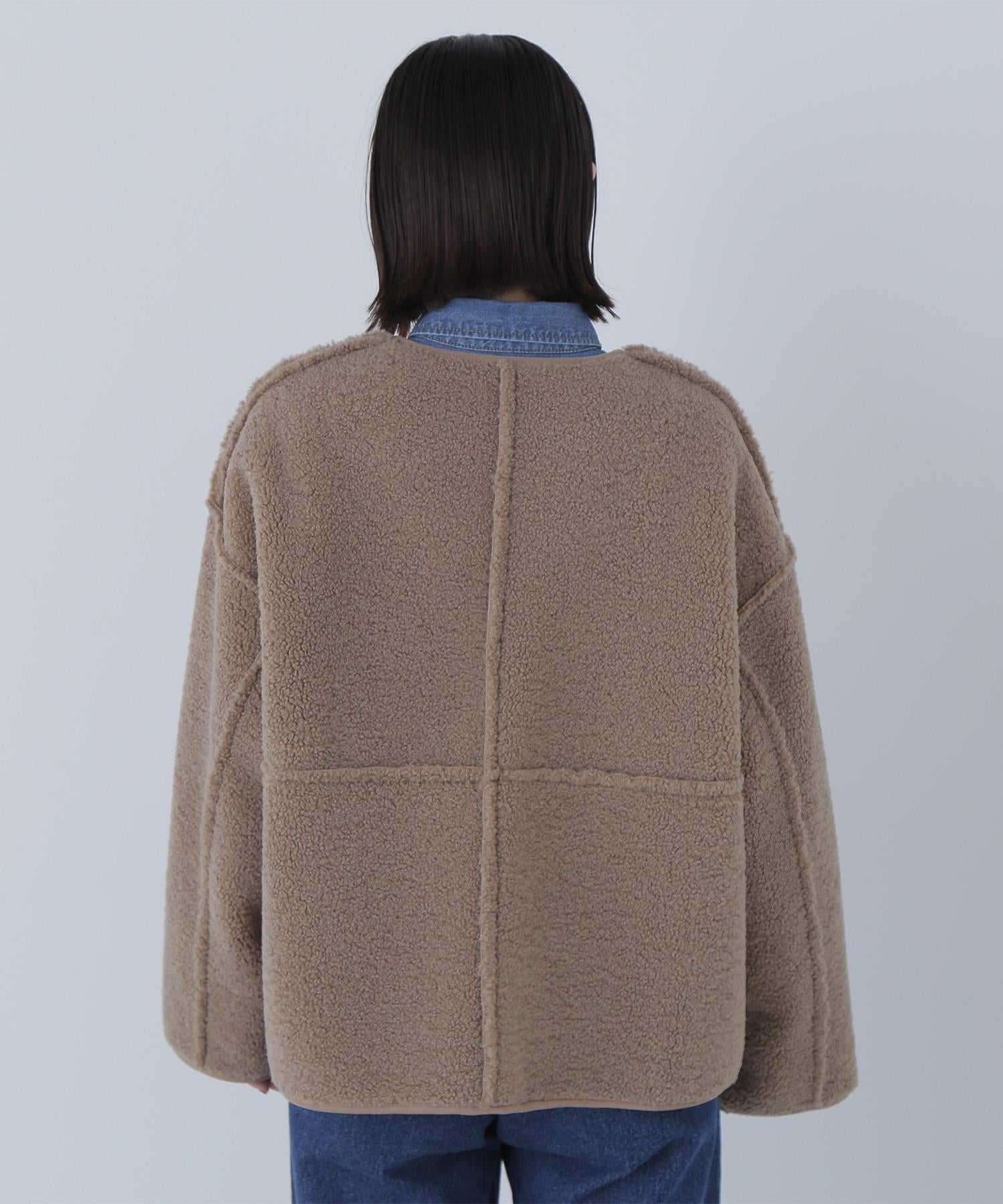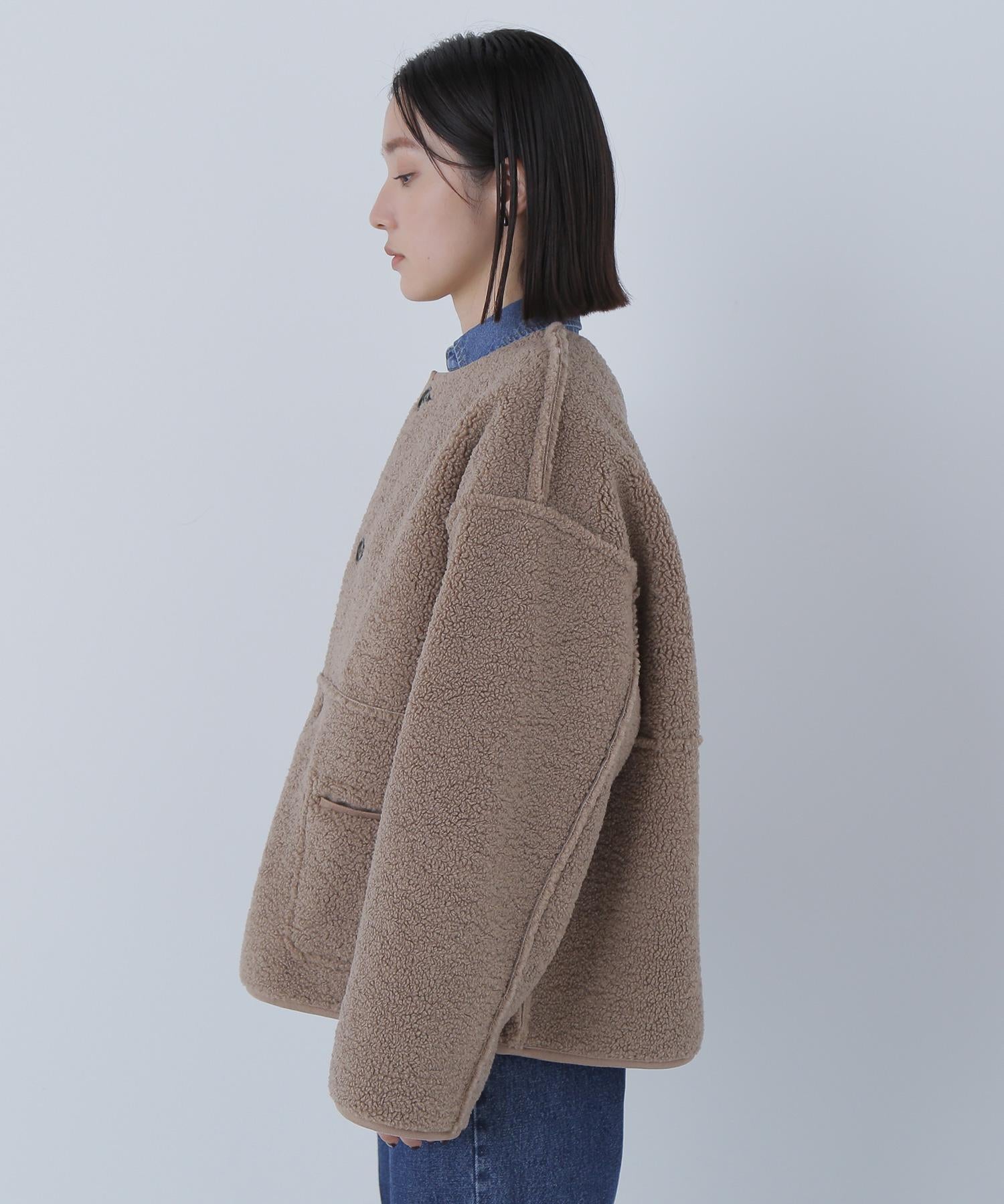 ボアとフェイクスウェードの両方でスタイリングが楽しめるリバーシブルアウター。カジュアルになりすぎないよう挟み出しのディテールに拘ったデザインです。両側からポケットが使えるうれしい仕様。スコッチ系のボタンが優しい印象に見せてくれる1着。ミドル丈なのでボトムスを選ばずに着ていただけます。