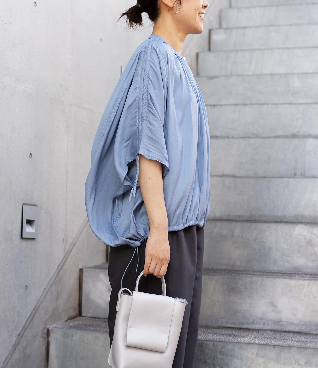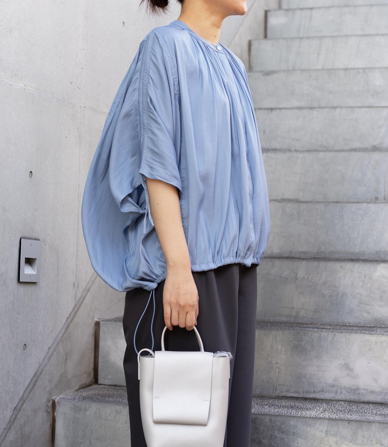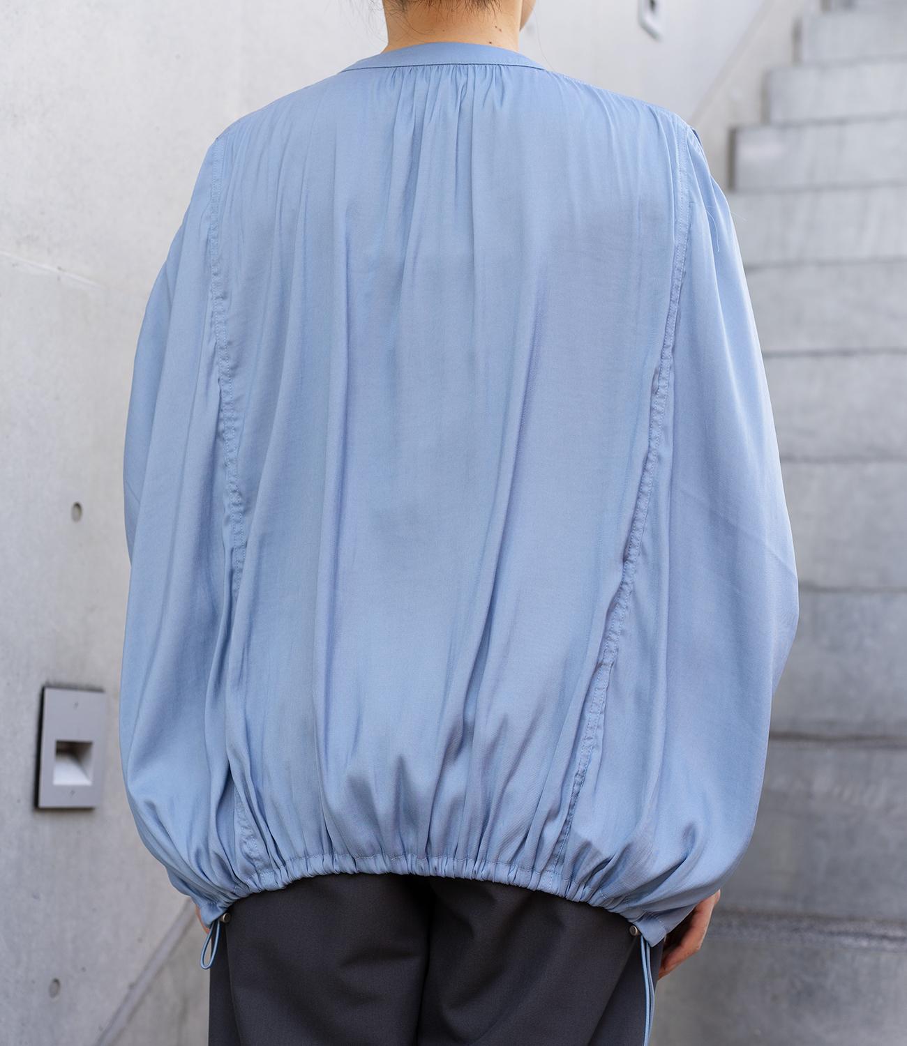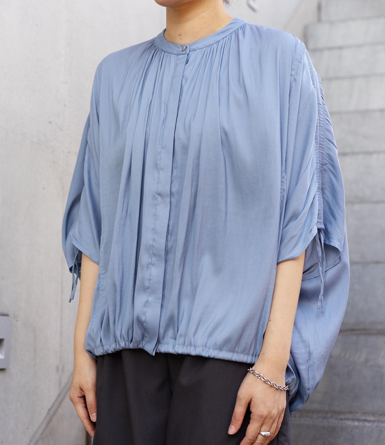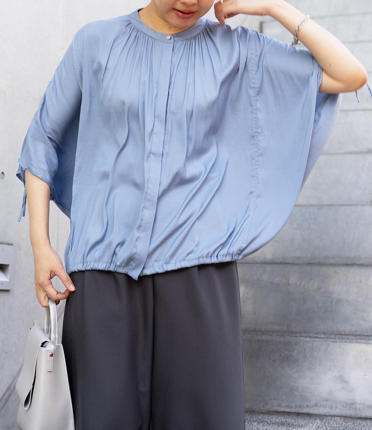 裾にはドロストを採用しボトムスに合わせて調整可能。肩上にあるギャザーリボンを絞ってお好みの袖丈にもできる表情豊かな一枚です。