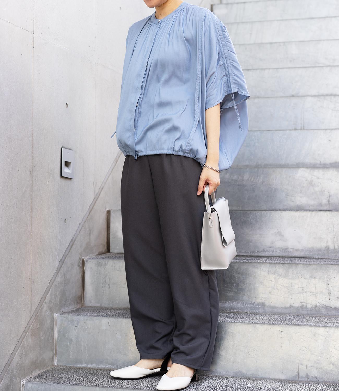 フロントは縦ライン切り替えを施し、ドルマンシルエットでも細見えを強調してくれます。