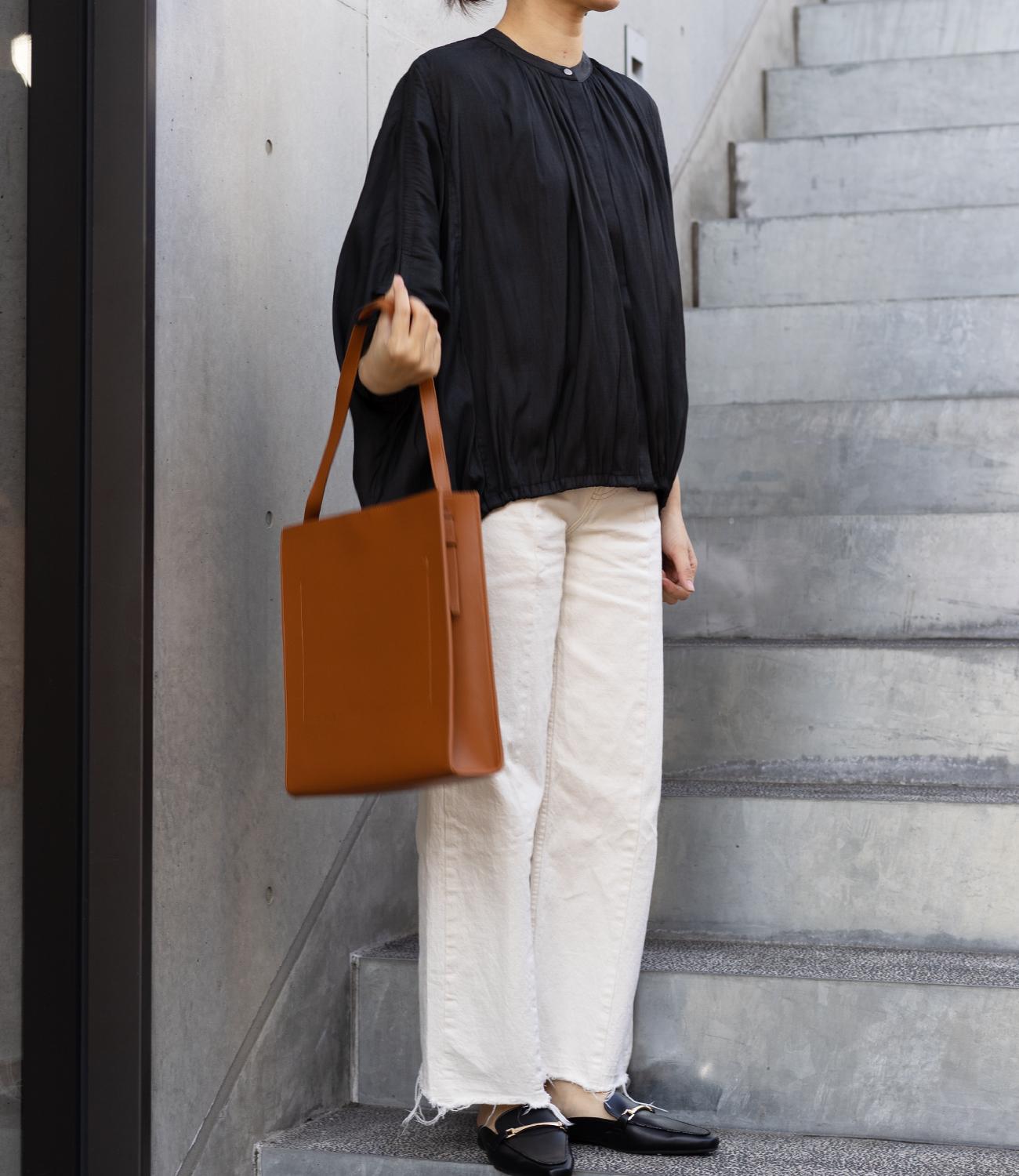 前開き着脱でサッと羽織るスタイリングもおすすめ。