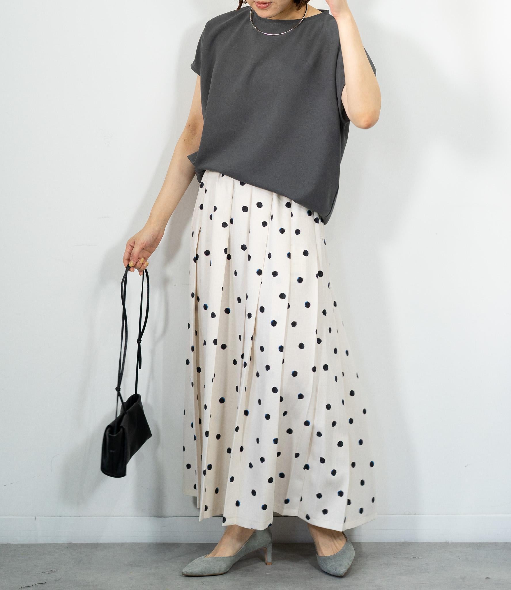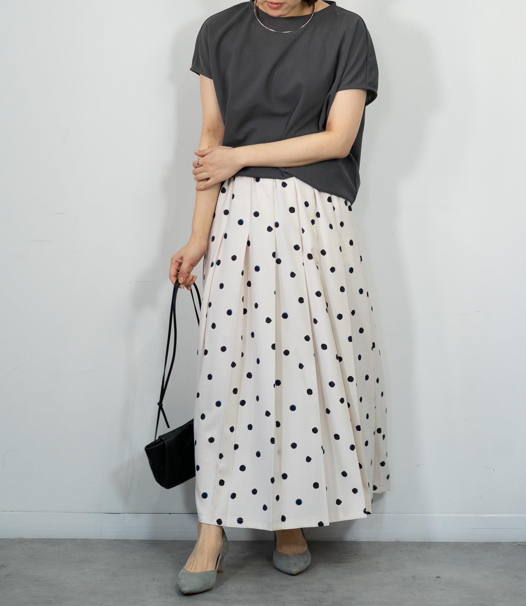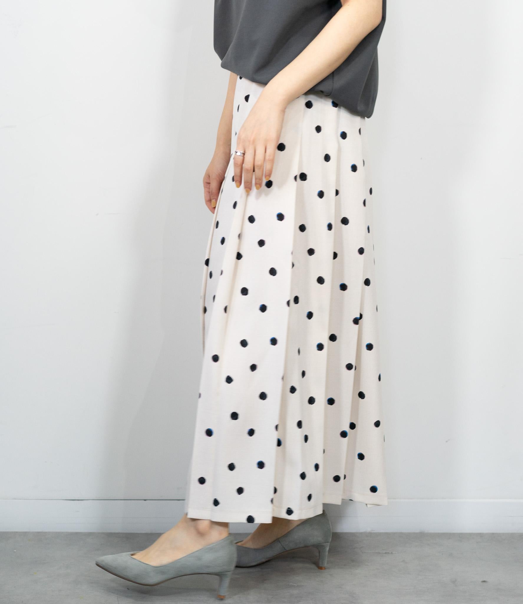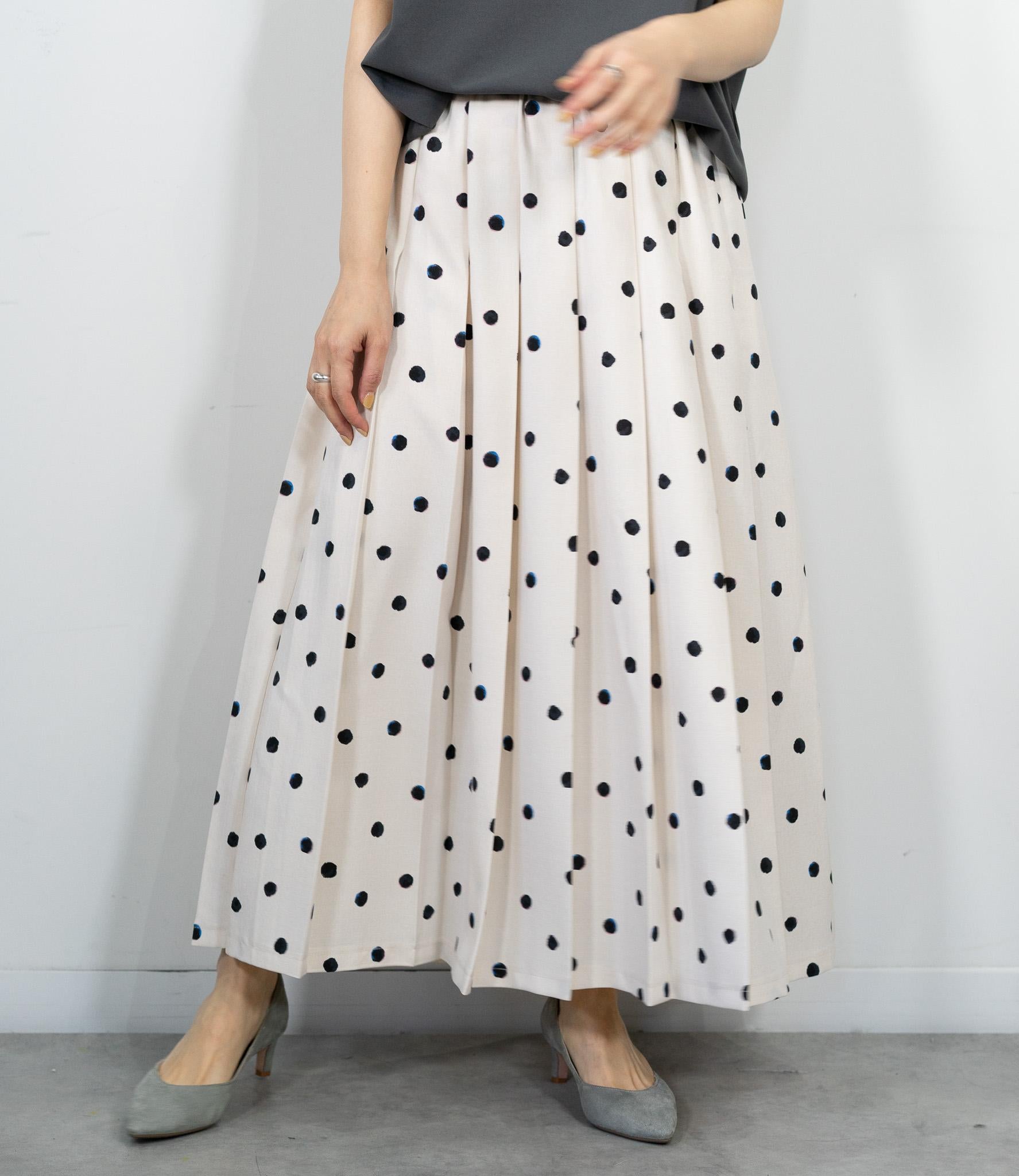 ランダムドットミモレタックスカート
