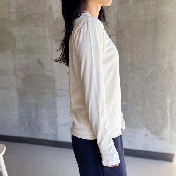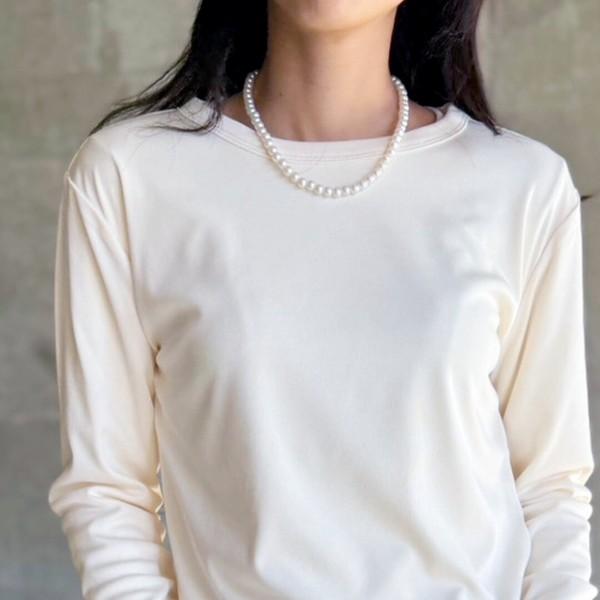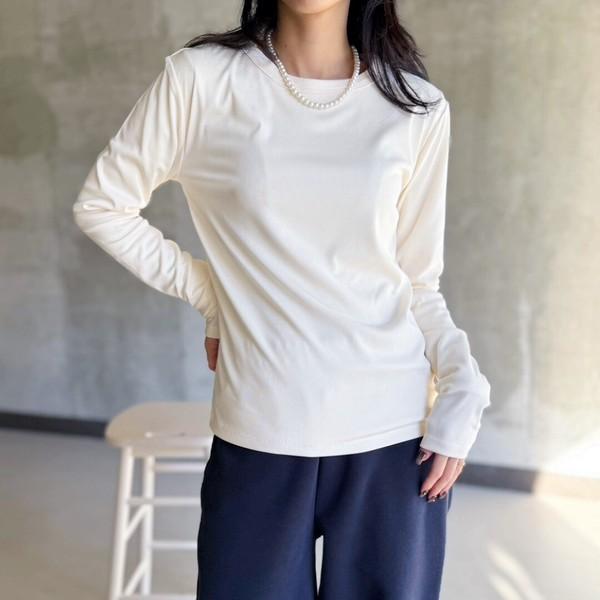柔らかくしなやかな肌触りで、一枚着としてもインナーとしても快適です。肌あたりも柔らかく、デイリーに気持ちよく着られる一枚。