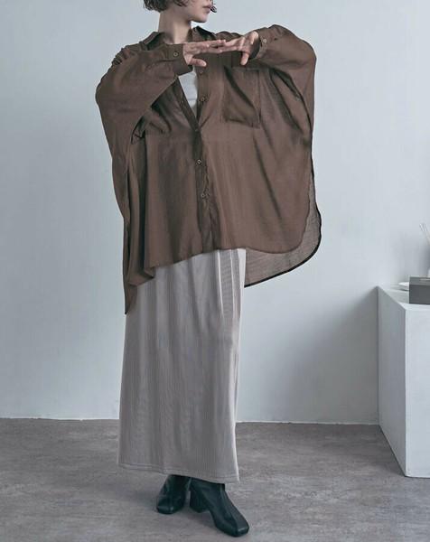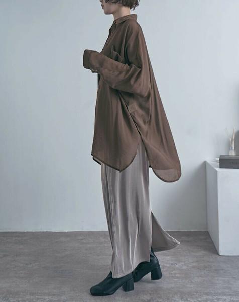 気になるボディラインを優しくカバーしつつ、深いサイドスリットと前後差のあるラウンドヘムが、360度どこから見ても「こなれ感」のあるシルエットを叶えます。