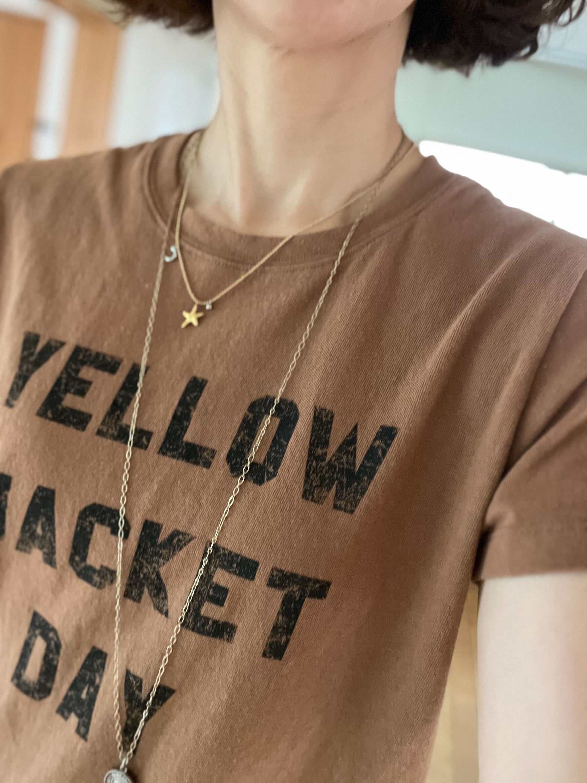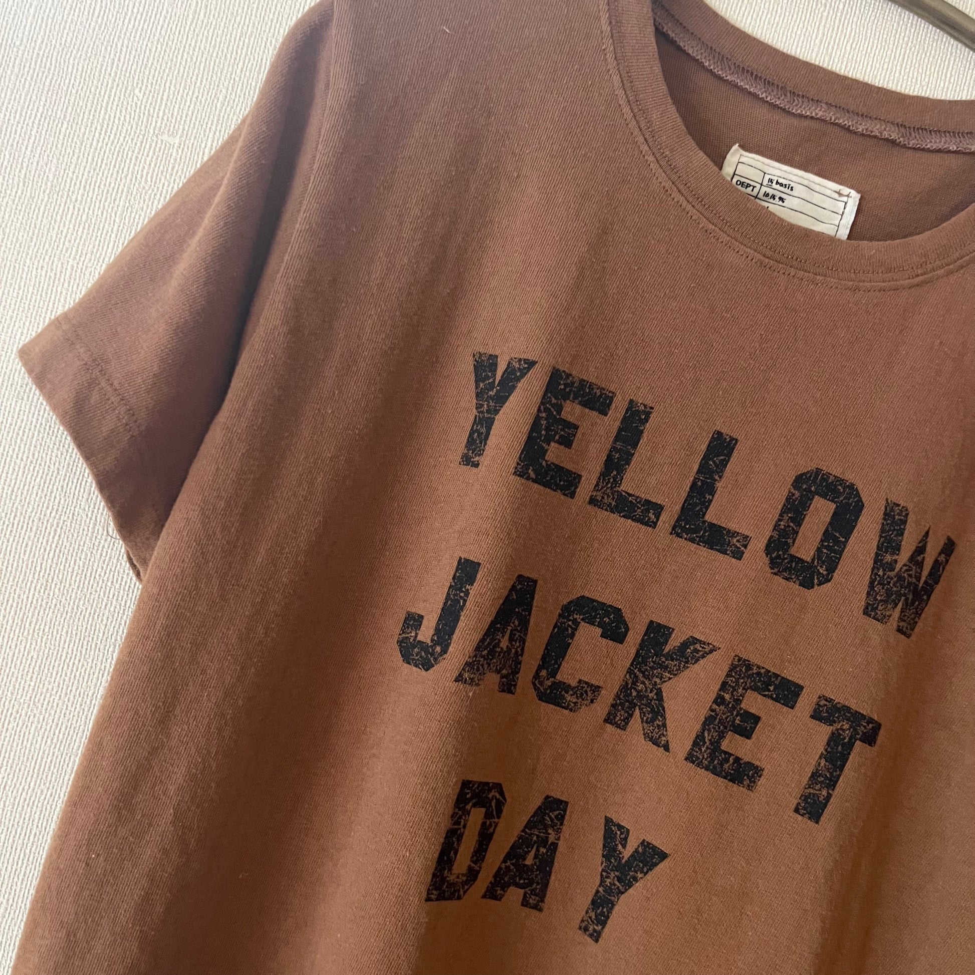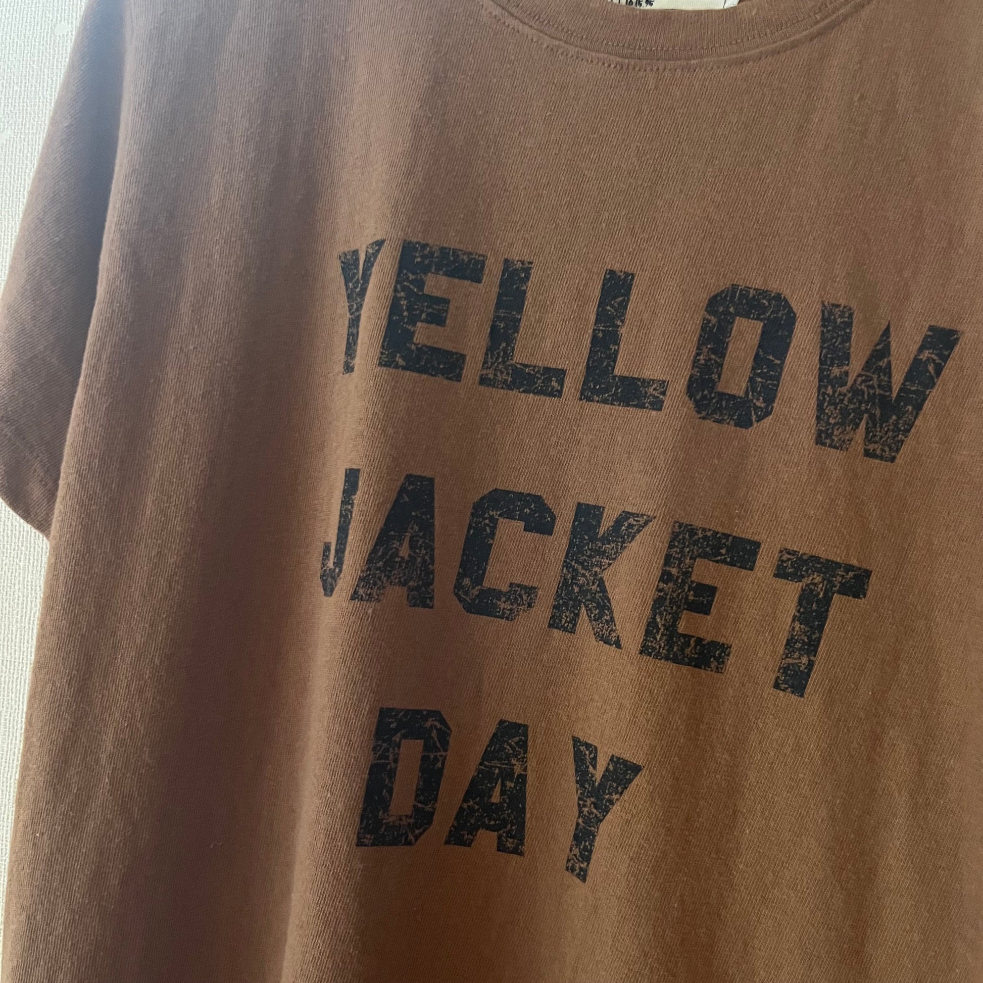 BROWNにBLACK文字のヴィンテージライクロゴTシャツ
