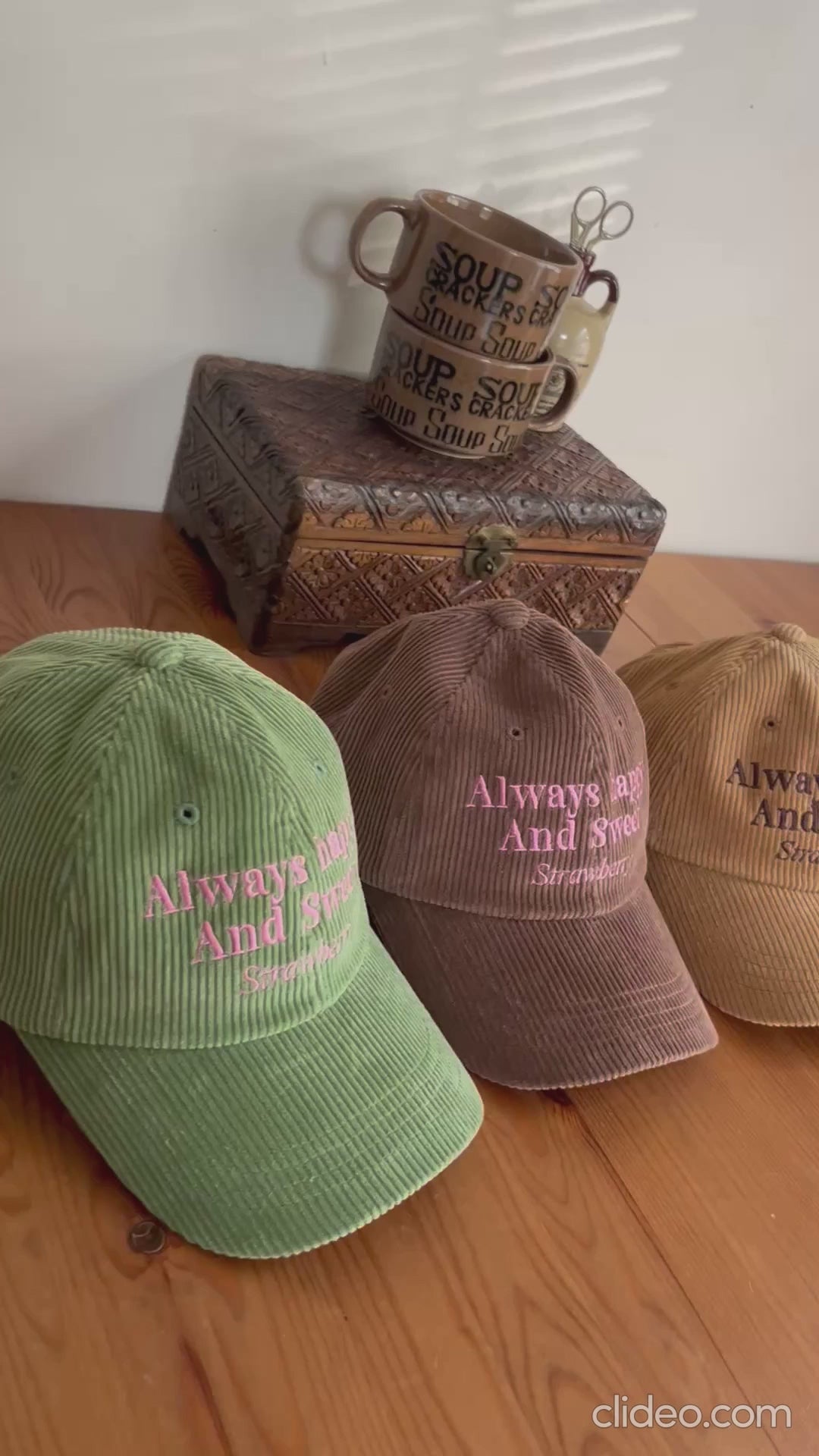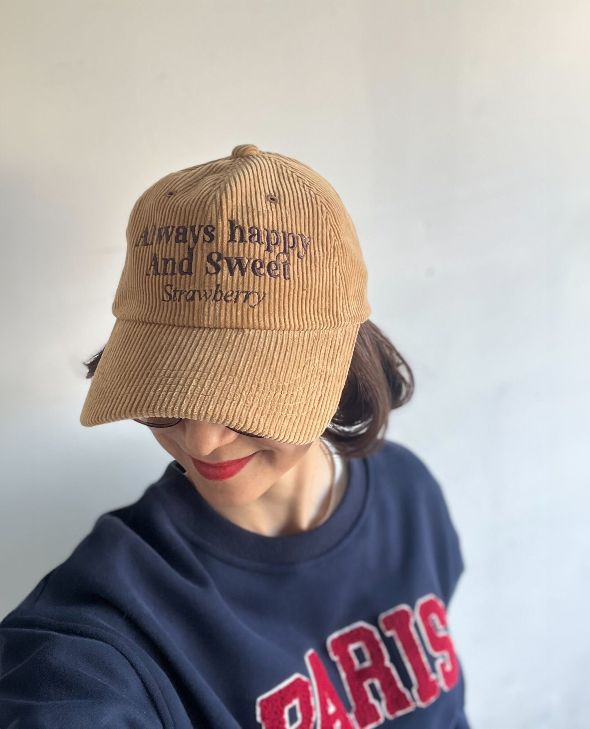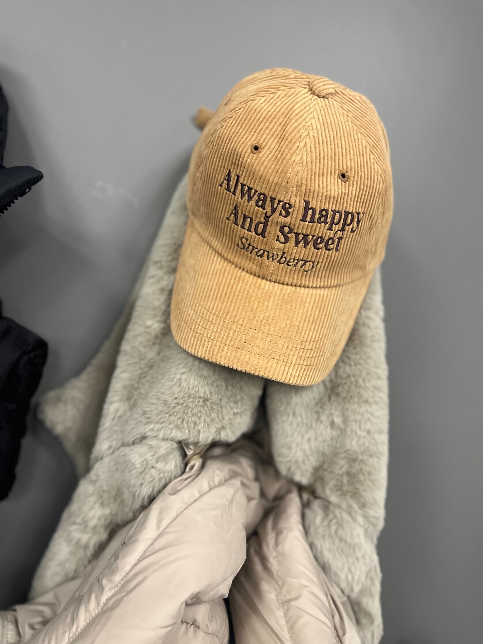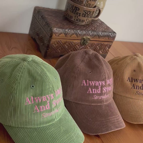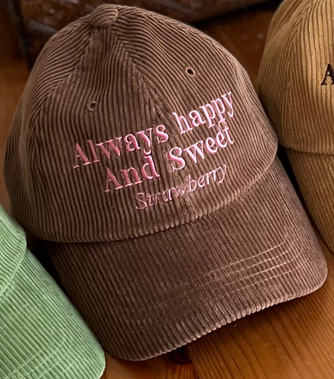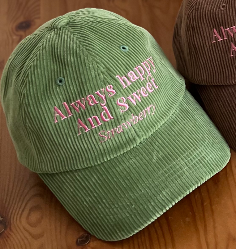 POPなニュアンスカラーが楽しいコーデュロイロゴキャップ