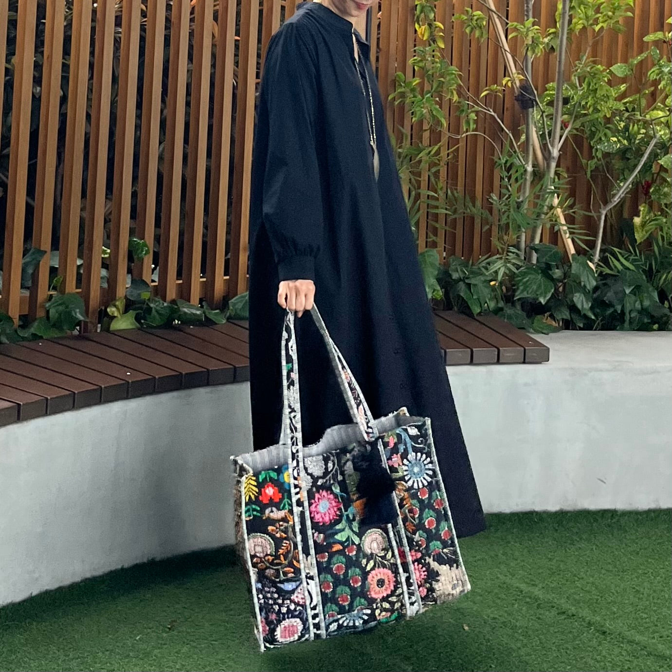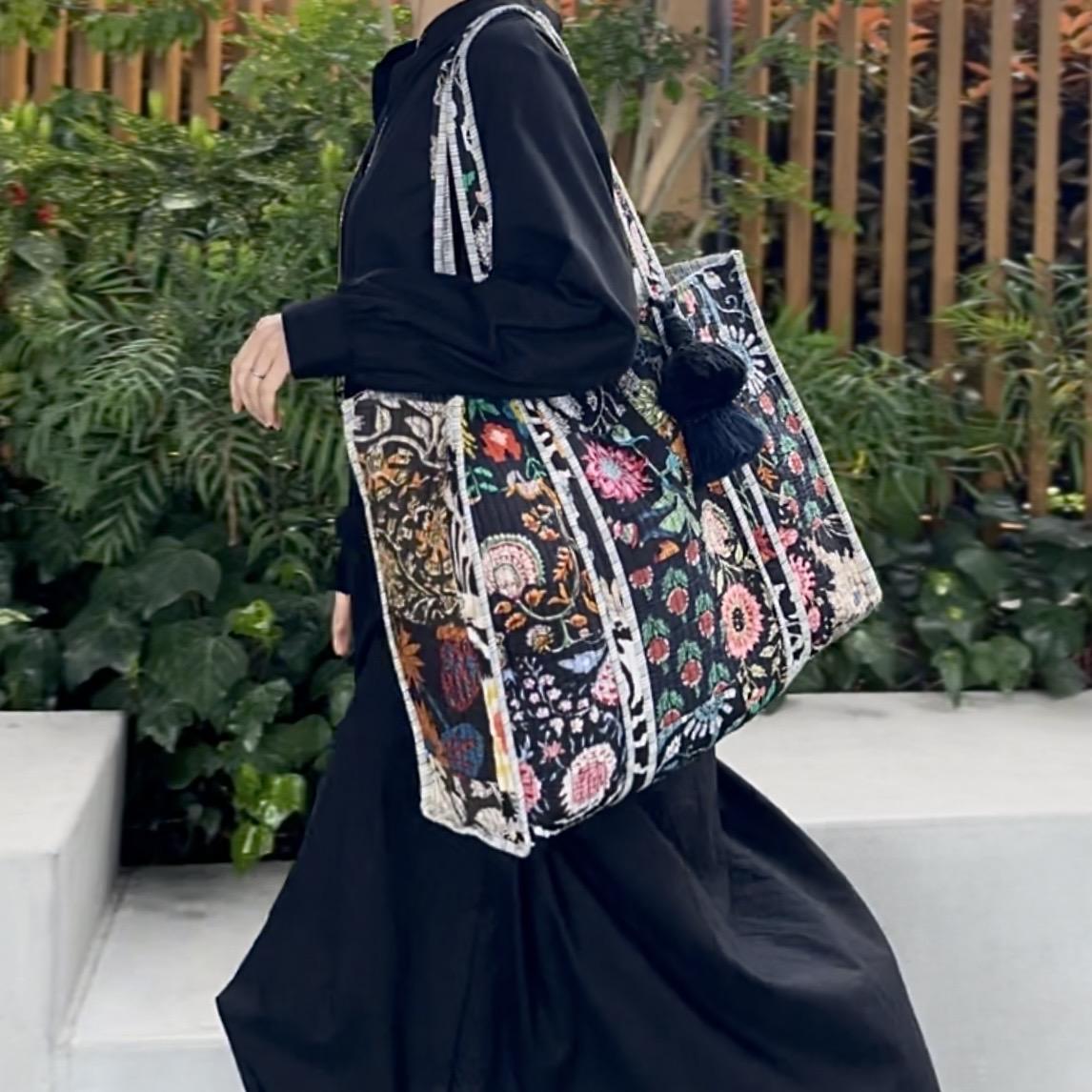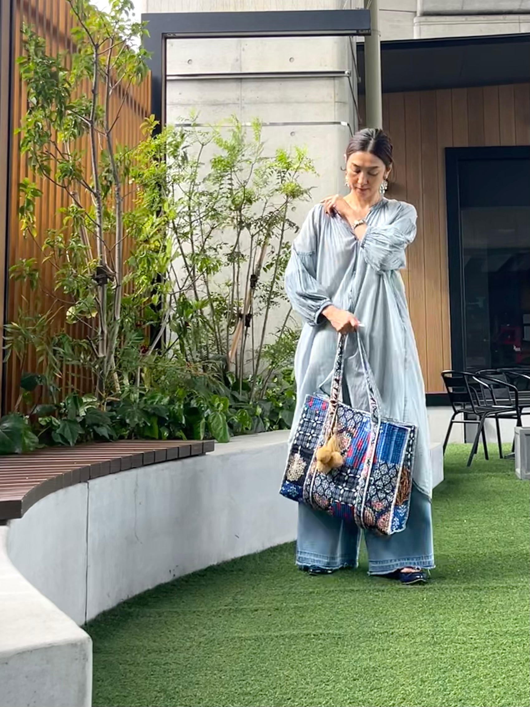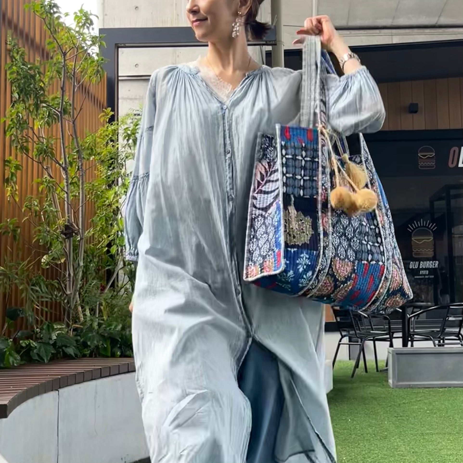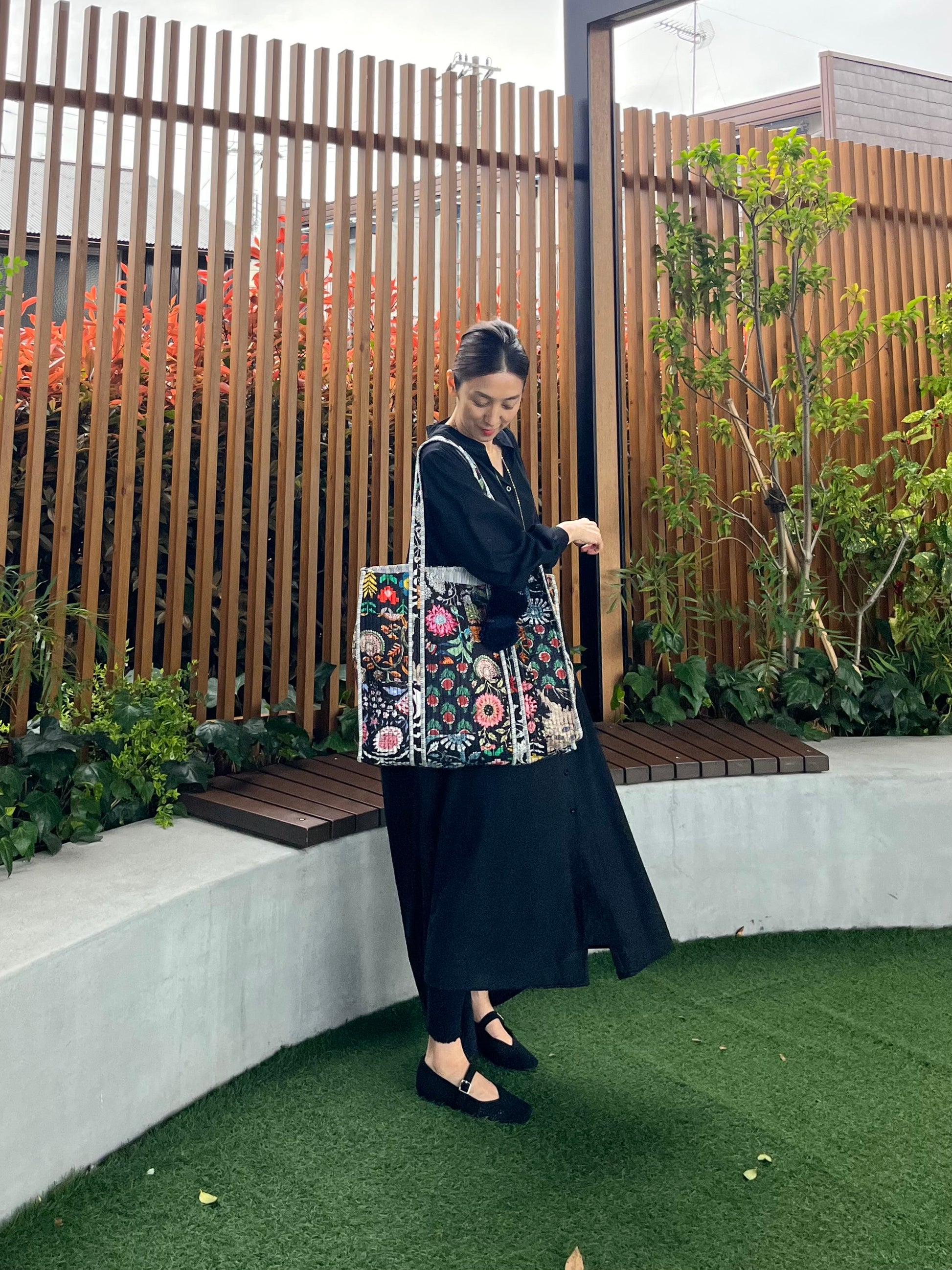 夏のシンプルなワンピースやデニムスタイルな、ブロックプリントバッグを一つ加えるだけでオリエンタルな雰囲気にまとまります。